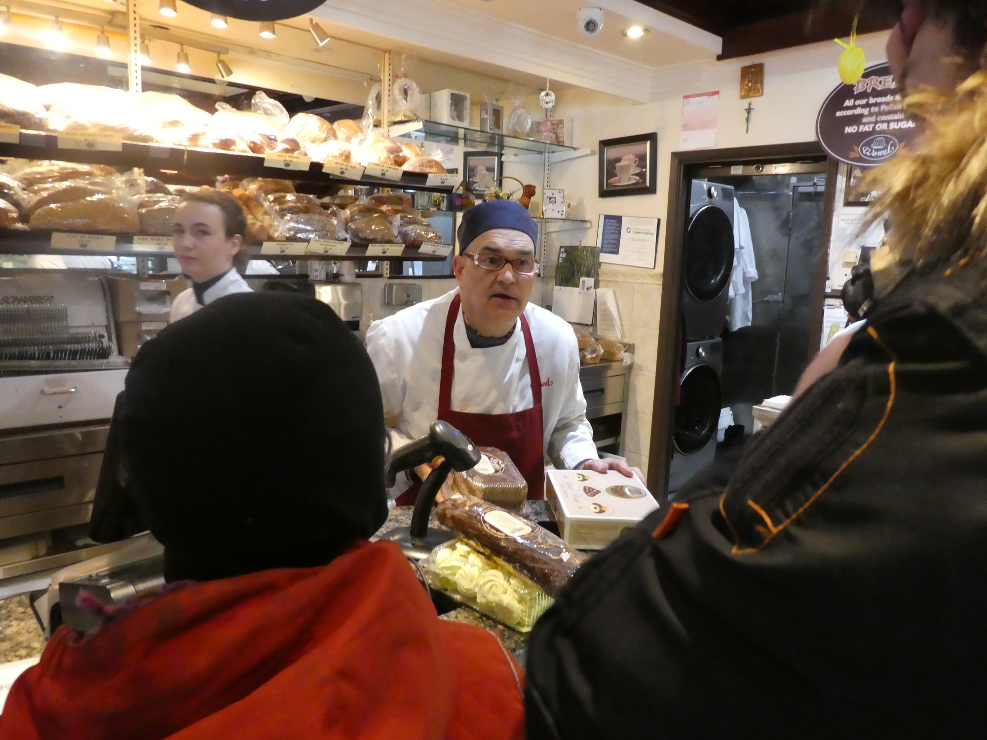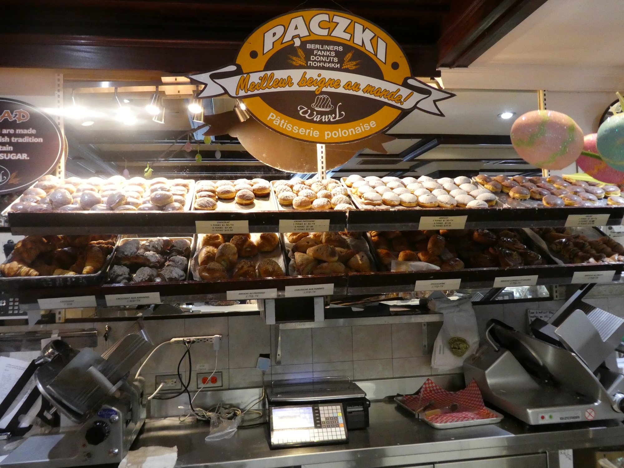 Another specialty is the Polish donuts, or Paczki. We needed a box of those, and Swiss Meringues, and a poppy seed (pavot, mohn, muhn, eh) strudel. I checked with Josh and found that only the Stefanka was in honour of our visit. The other stuff was "normal". No wonder the staff knows Josh and the girls so well, and sent best wishes home to Sabrina and Joe, together with some extra Paczki and candies. This also illustrates the way in which a big city divides itself into neighbourhoods, and within each will have small stores and a small town approach.