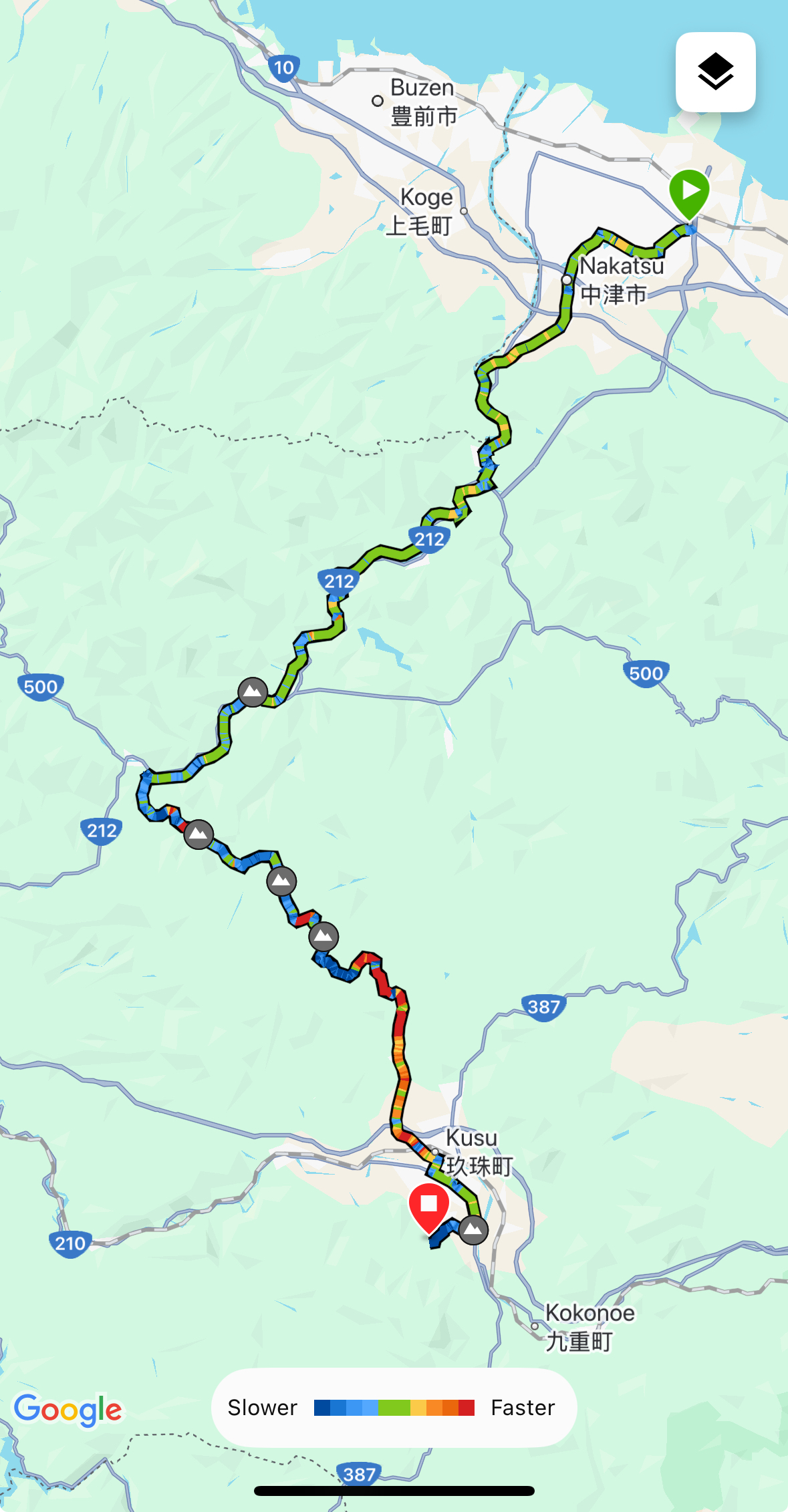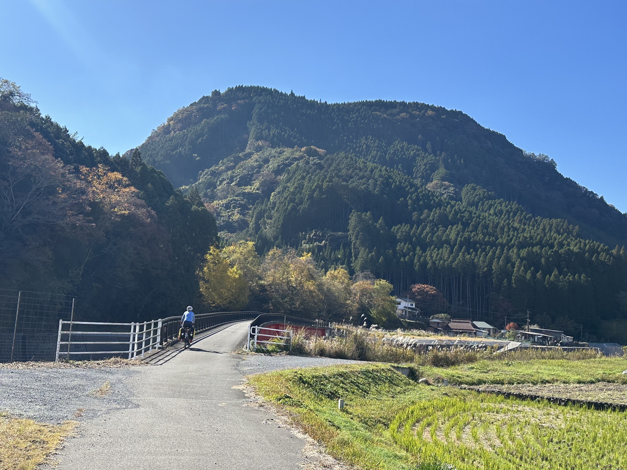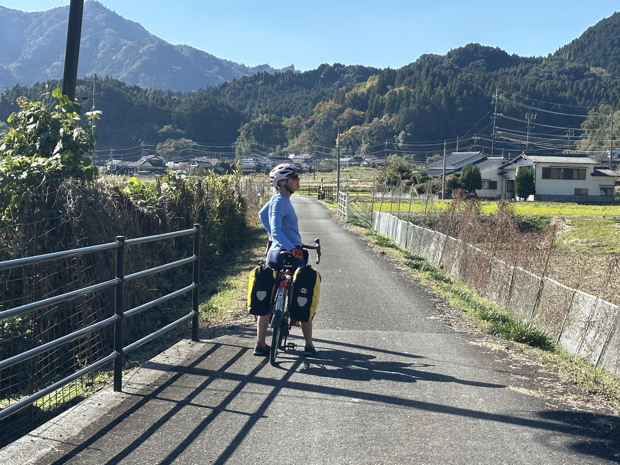 We were heading south to get to Aso-Kuju National Park, which was located in an enormous ancient caldera. Marilee’s relentless internet digging came up with a bike route out of Nakatsu that would take us a bunch of the way: the Maple-Yaba Cycling Road.