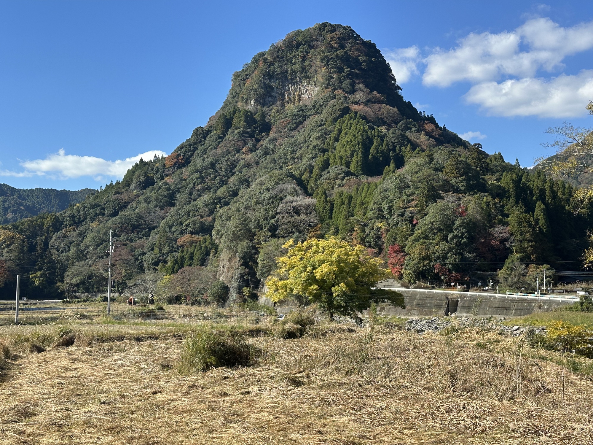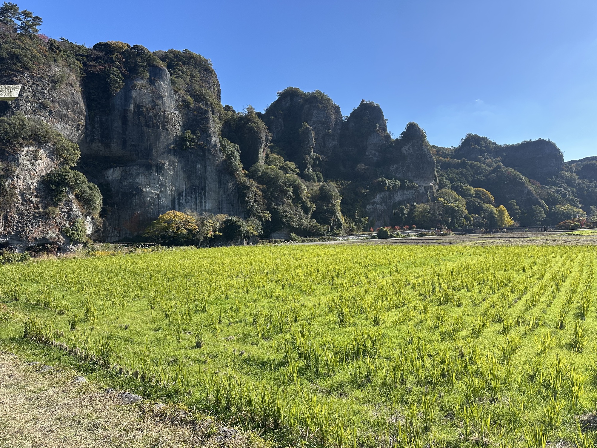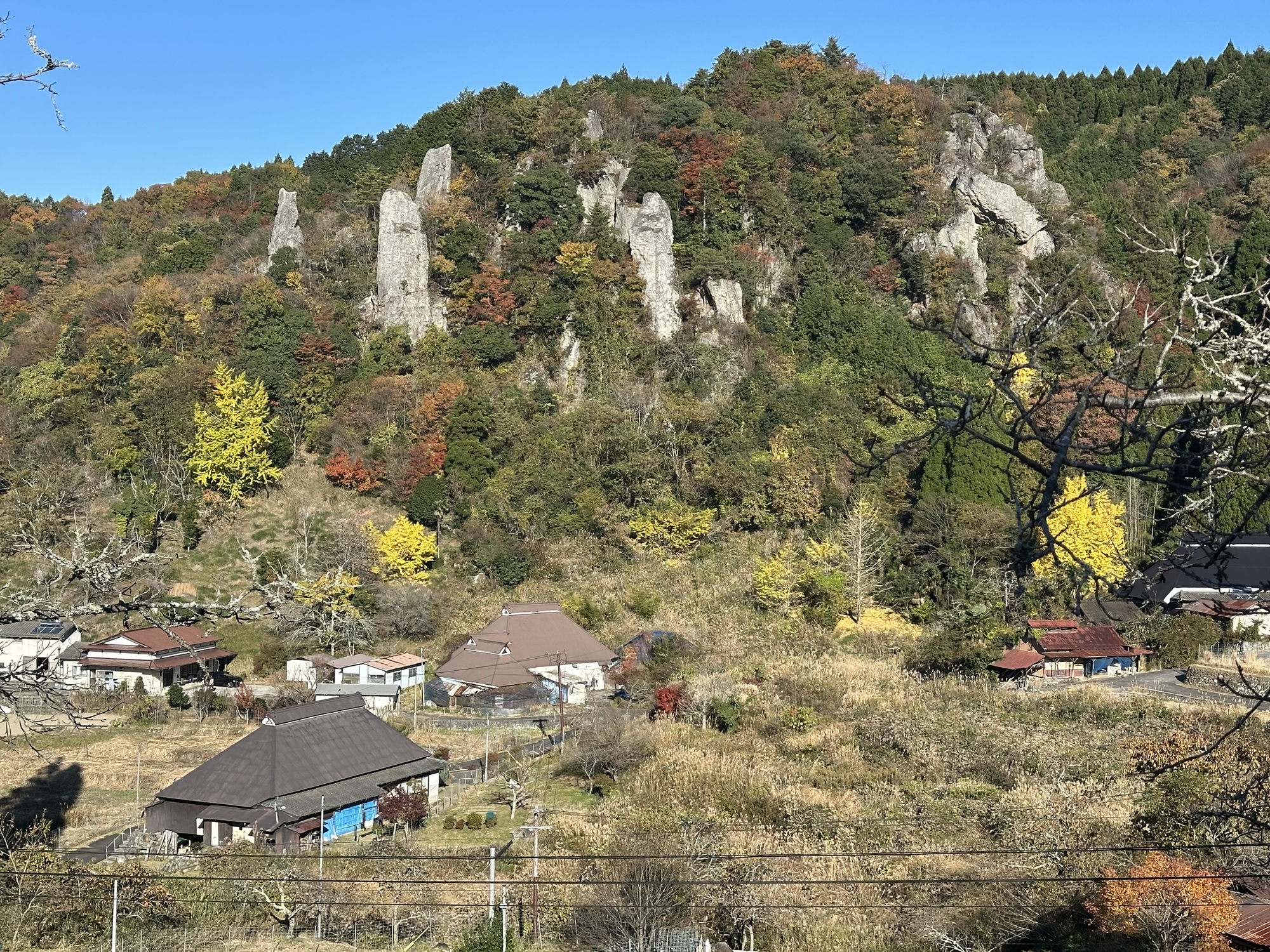 As all good things must, the bike path eventually did end. This left us back on the road with the bulk of the day’s climbing yet to do. It was a bit of a push — 500 m over 20 km then down into Kusu. The road wound its way up into more breccia formations, again awash in fall colours, so it was sweaty but rewarding.