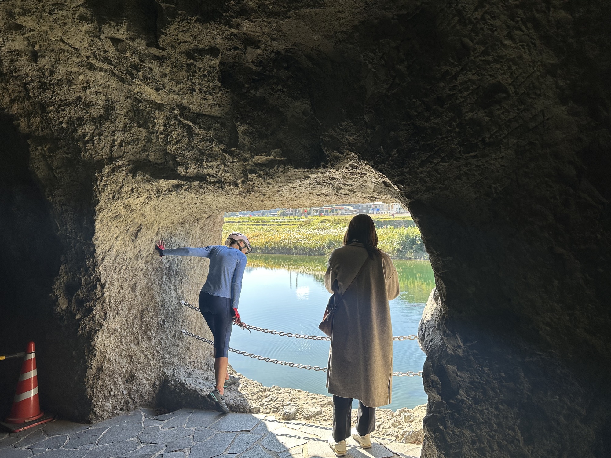 The path initially took us to a tunnel carved out of a hillside by a monk over 30 years. The original hillside path over the river was dangerous, and he made it his life’s work to dig through the hillside by hand. Japanese road engineers have been following his lead ever since.