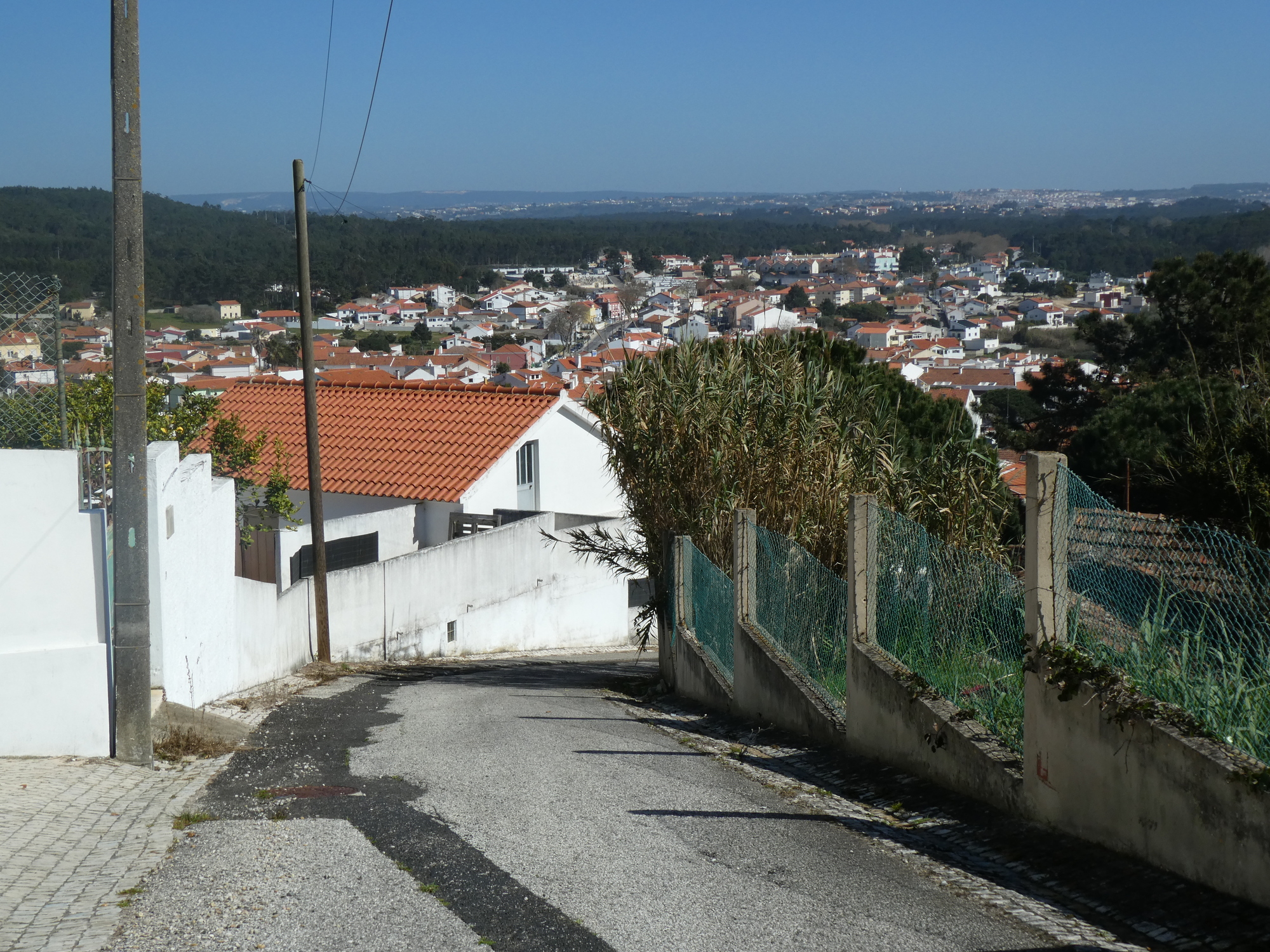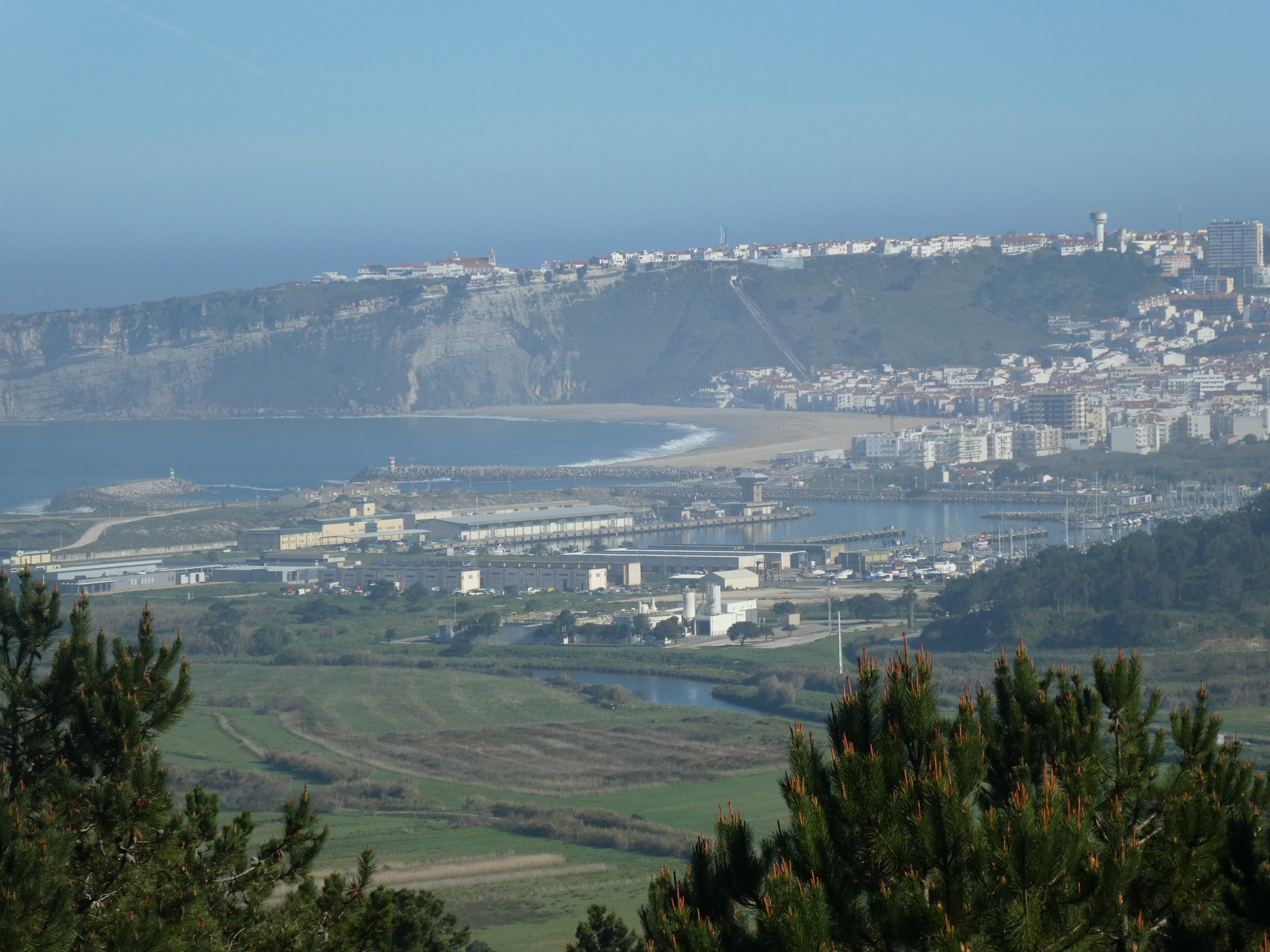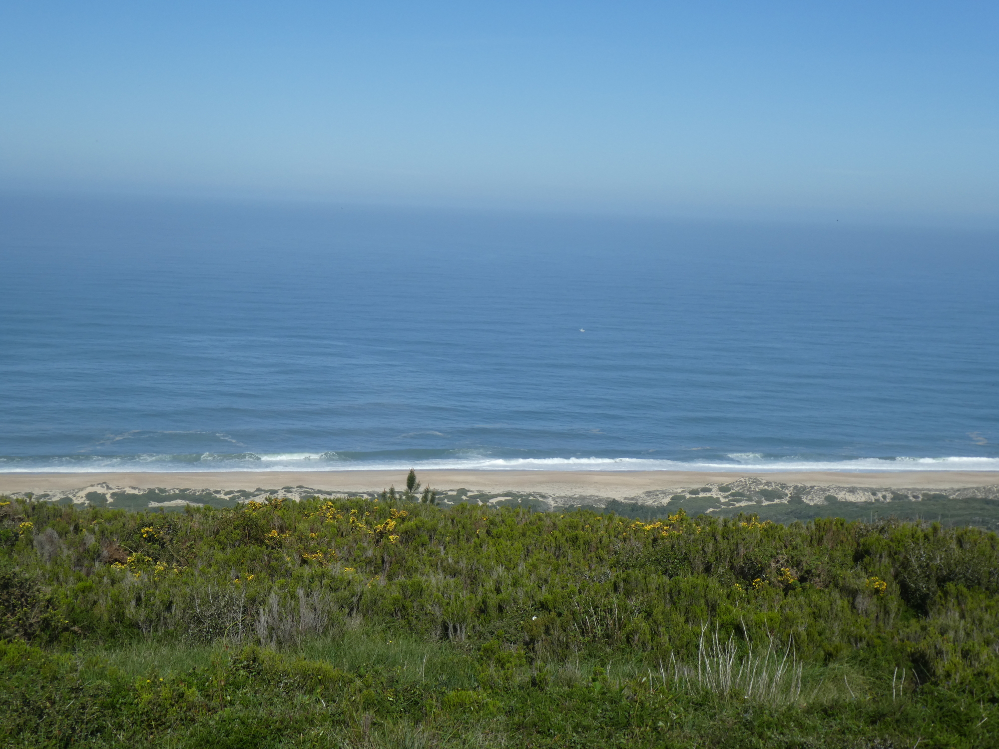 One good thing about hills is that they have to end, else they would be plateaus, or we would never have valleys, or something. So reasonably quickly we were looking down at yet another Nazaré style cove and wide beach, lined with restaurants and shops. I take this to have been Sao Martinho do Porto.