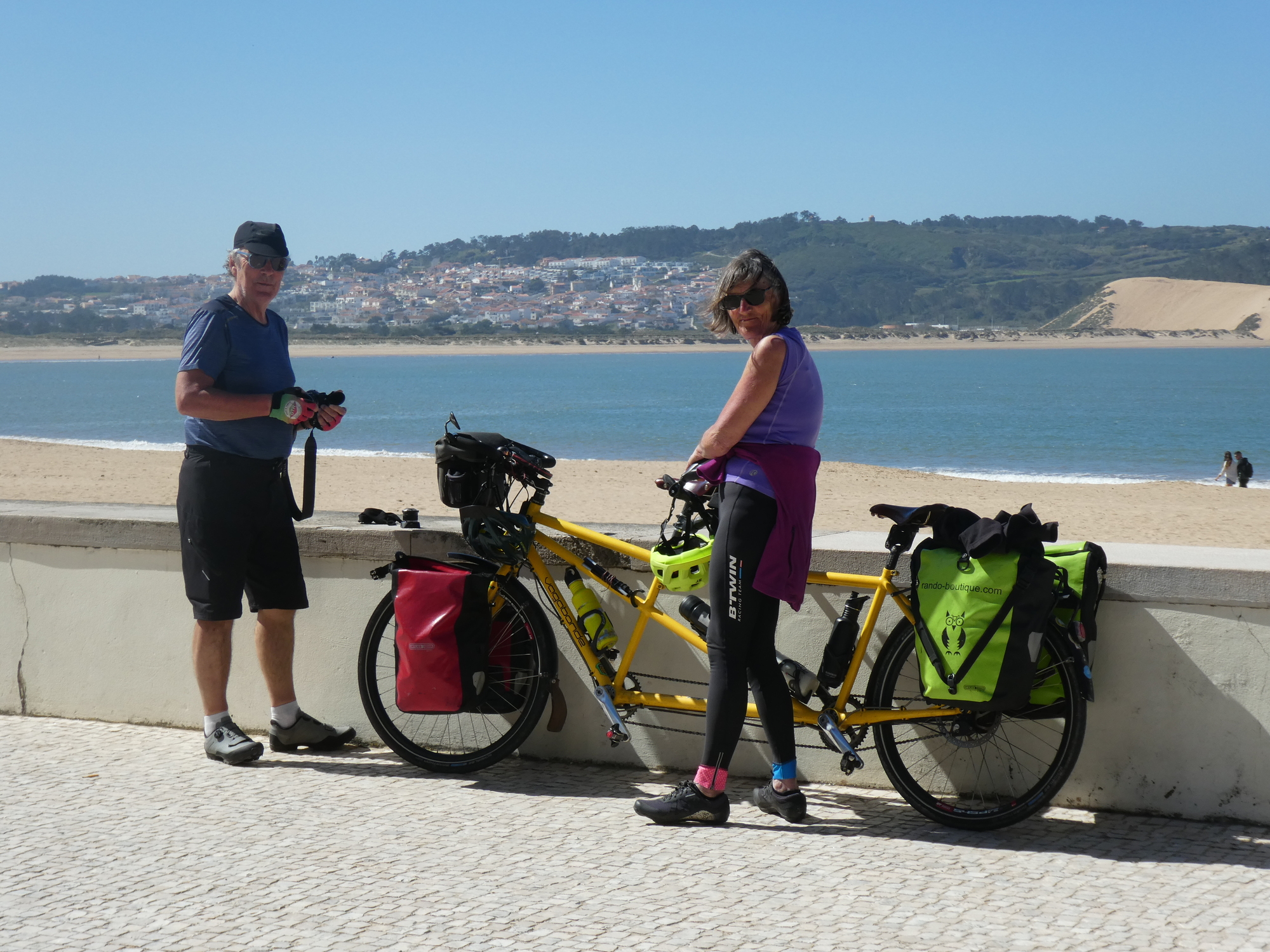 That was where, so to speak, the music stopped and today's ride began to reveal its true nature. The French cyclists. Clement and Louise had warning us that the carefree flat ride from Porto was going to end at Nazaré, so it was no surprise when the bike path ended and the on-road portion began and tilted upward, at the end of the beach.