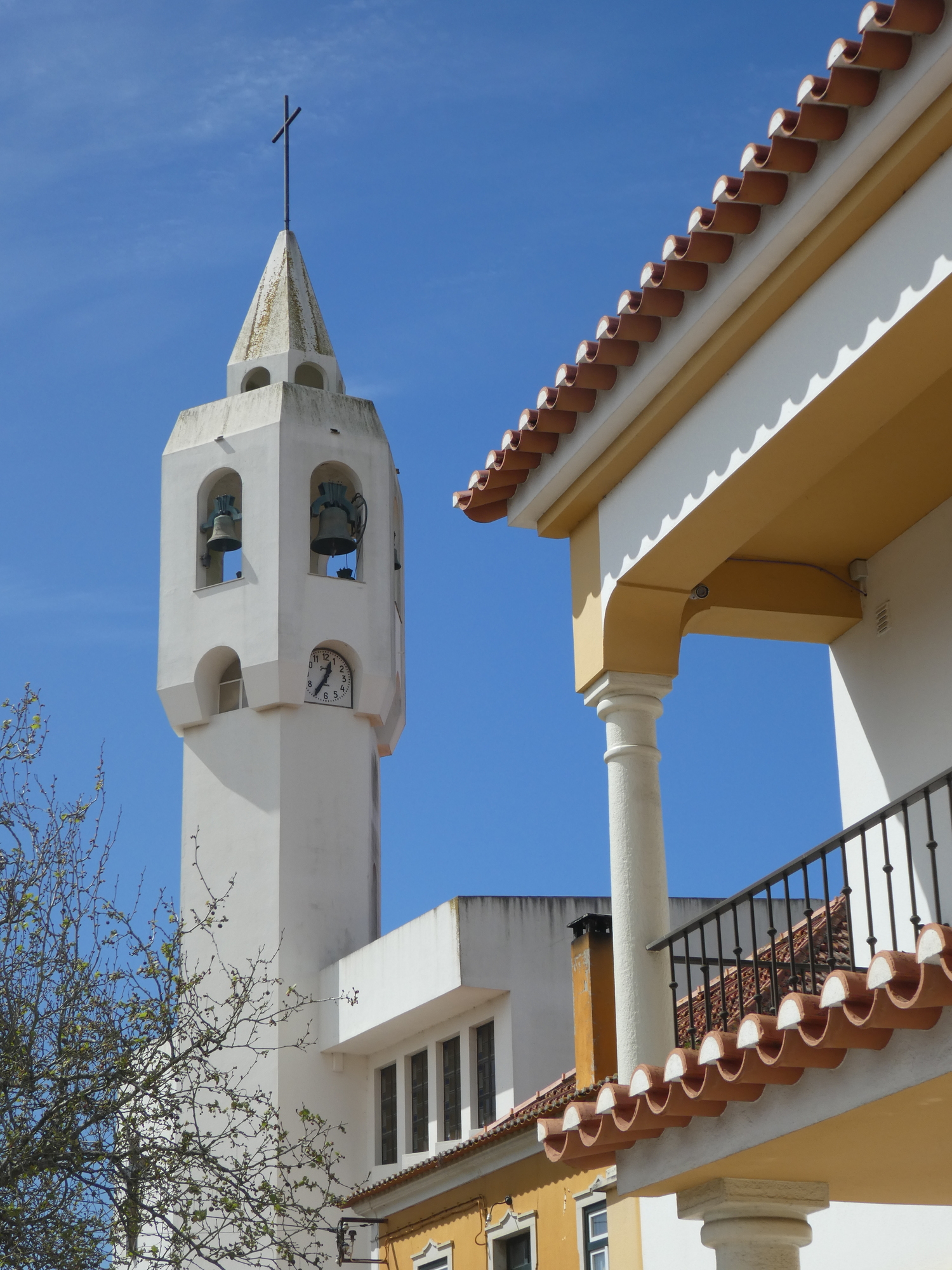 We have really not seen many churches in this part of the country, and certainly no huge or elegant cathedrals (except for Porto). This church tower therefore caught our attention. It looks vaguely Moorish as well. But the church was built recently, and inside iotally modern (boring) design. Interestingly we soon climbed well above the tower height, just by following the road.