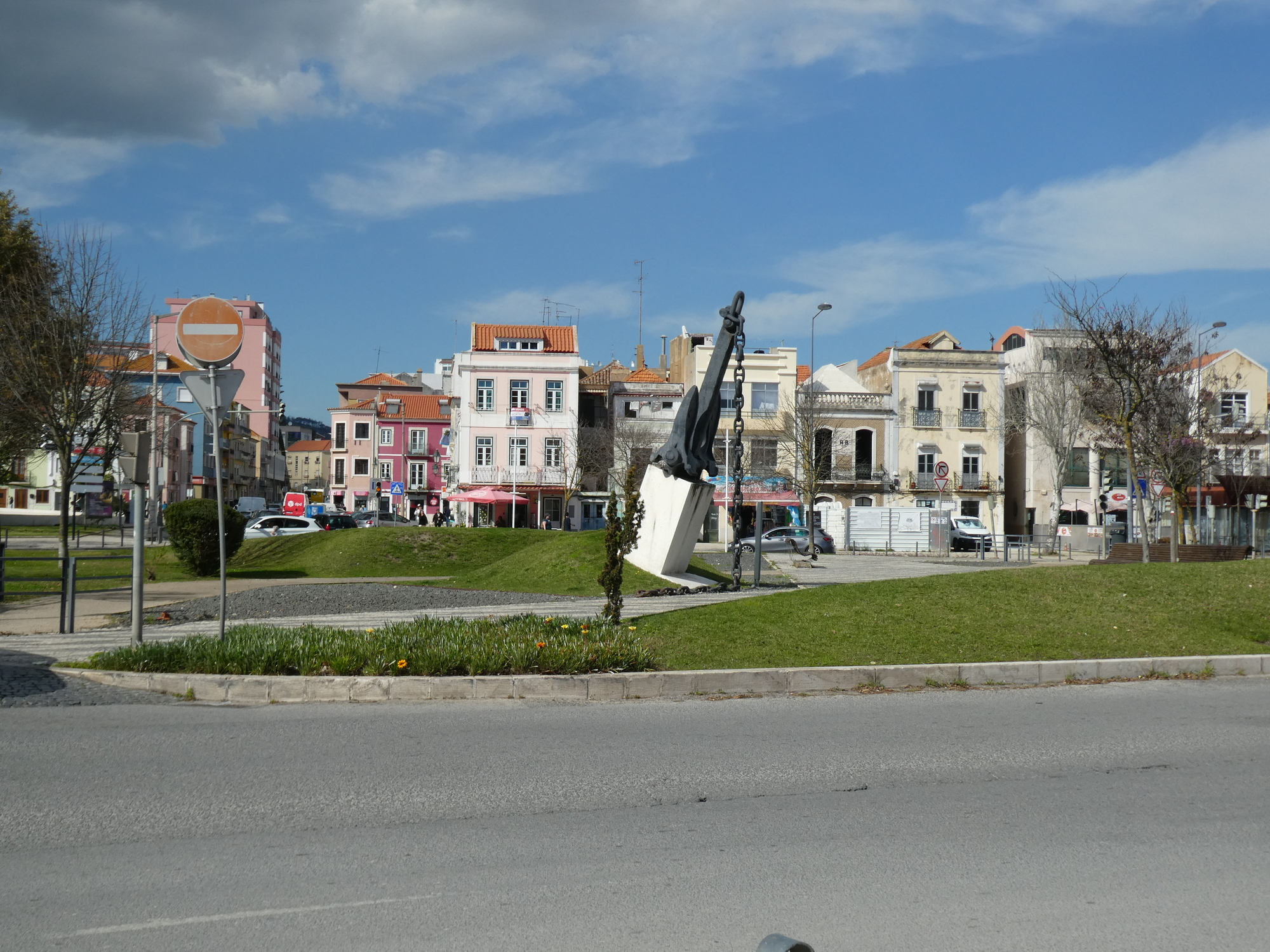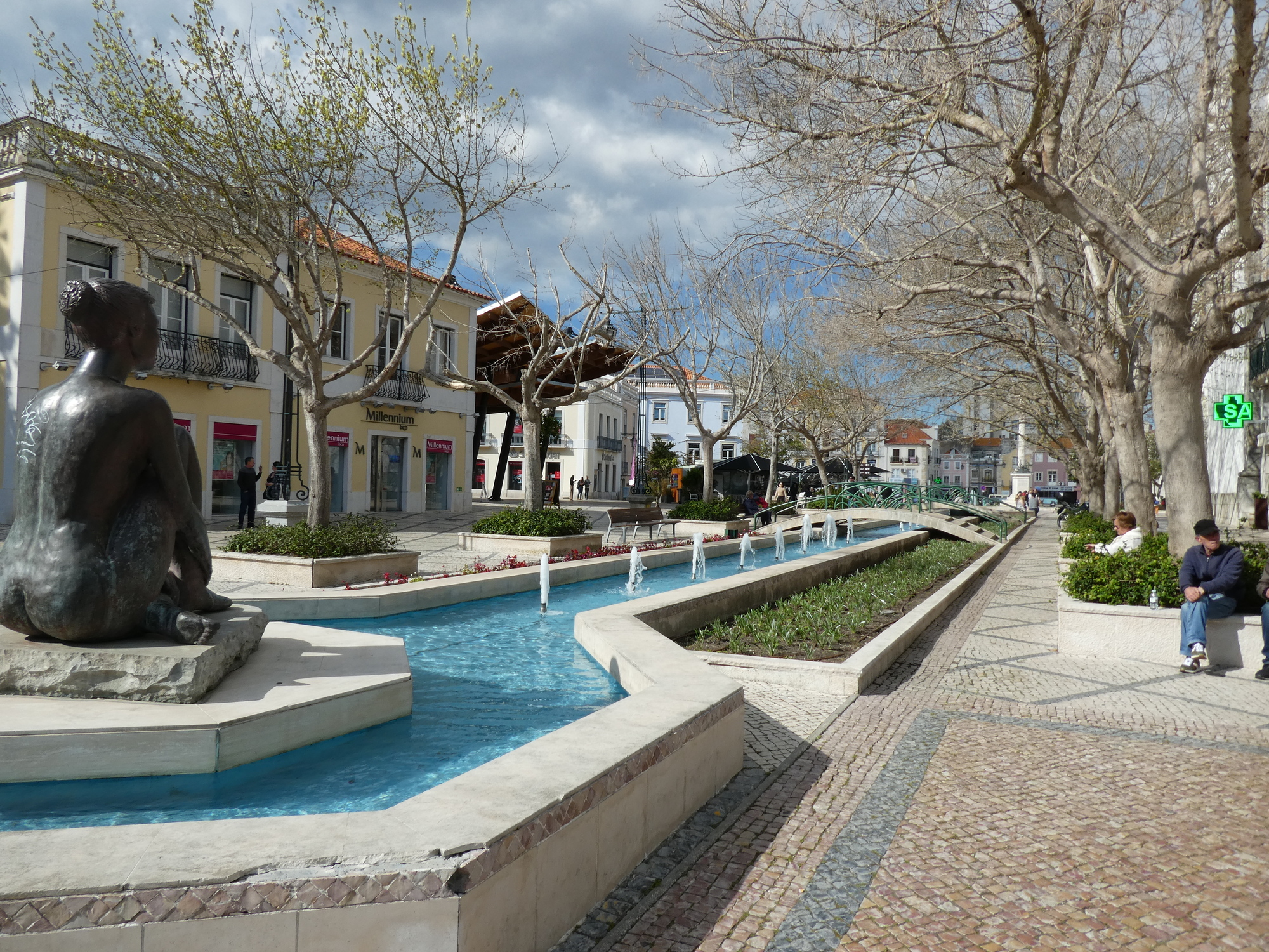 This was how we rolled in to Setubal. Our experience from Lisbon had been loosely like that of the Classens, but not at all identical. The main thing was that we had done it in just 50 km, and had arrived quite early. The town made a favorable impression on us, with its park between lanes of the main street, and open squares and spaces joining the main street at right angles. We were also greeted by a local cyclist, who turned out to be a former American. He said he had wanted to emigrate, with his family, but that Canada had demanded as an entrepreneur he bring too much money. Portugal had had a lower barrier, so here he was, with family.