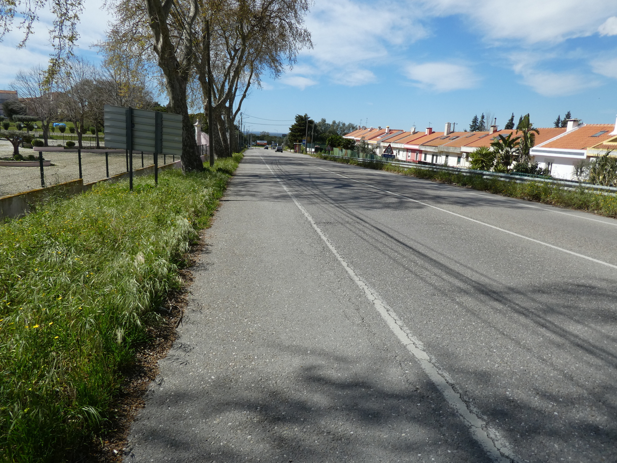 That A5 ramp, as Dodie had known, had a last minute option to get on the EN10 instead, and this proved to eventually be our ticket to Setubal. At first there was the customary lack of shoulder, disappearing shoulder, traffic entering from the side, roundabouts with cars crossing in front of you to exit, and similar joy, but the road settled down to having a decent and non disappearing shoulder, and was quite acceptable in the end.