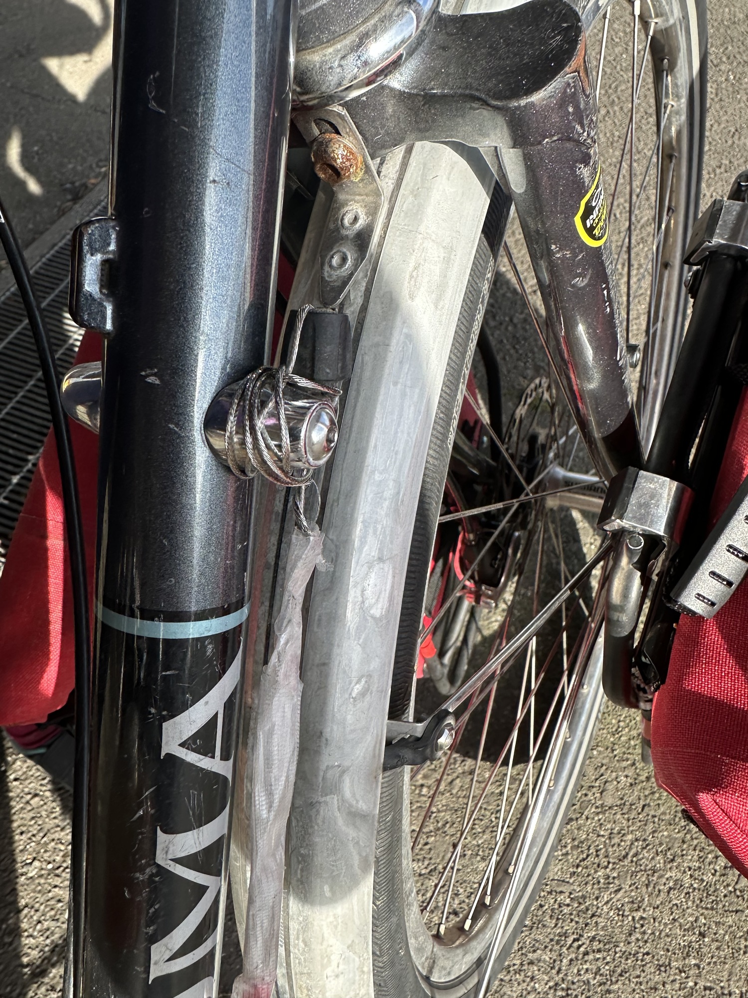 It took me a few seconds to process what had happened — my right gear cable had snapped off at the shifter. Tom and I stopped and stared at the bike and tried to think about what we could do. We weren’t carrying spare gear cables, we were miles in either direction from anything resembling civilization — it seemed like the only option was to carry on.