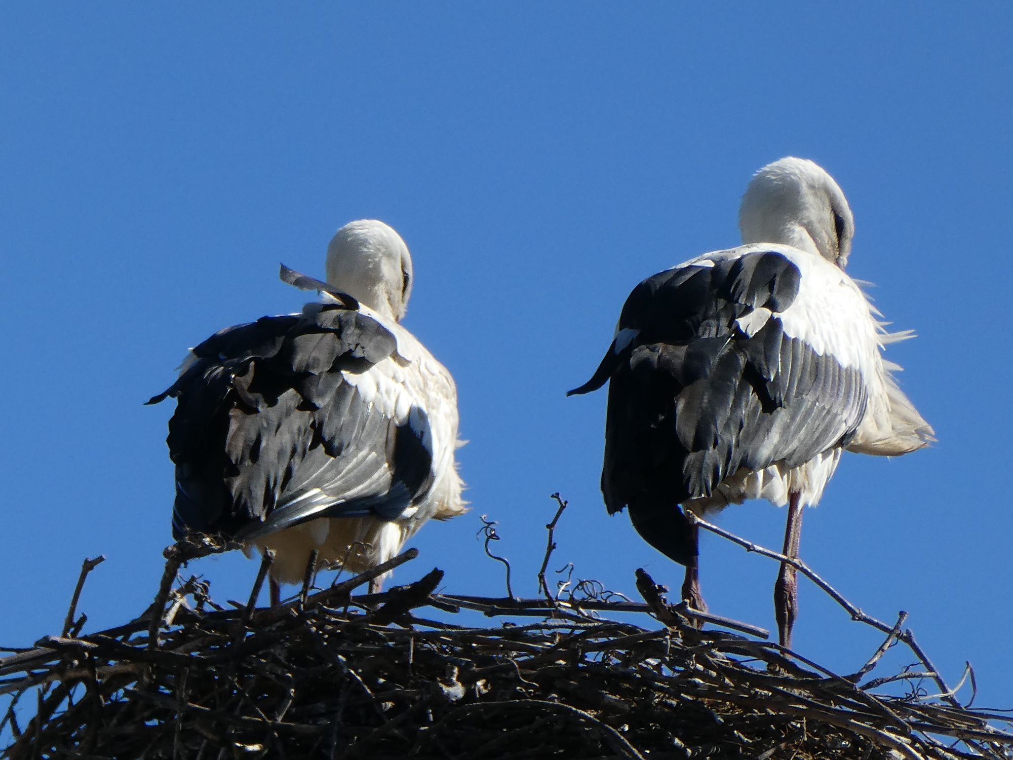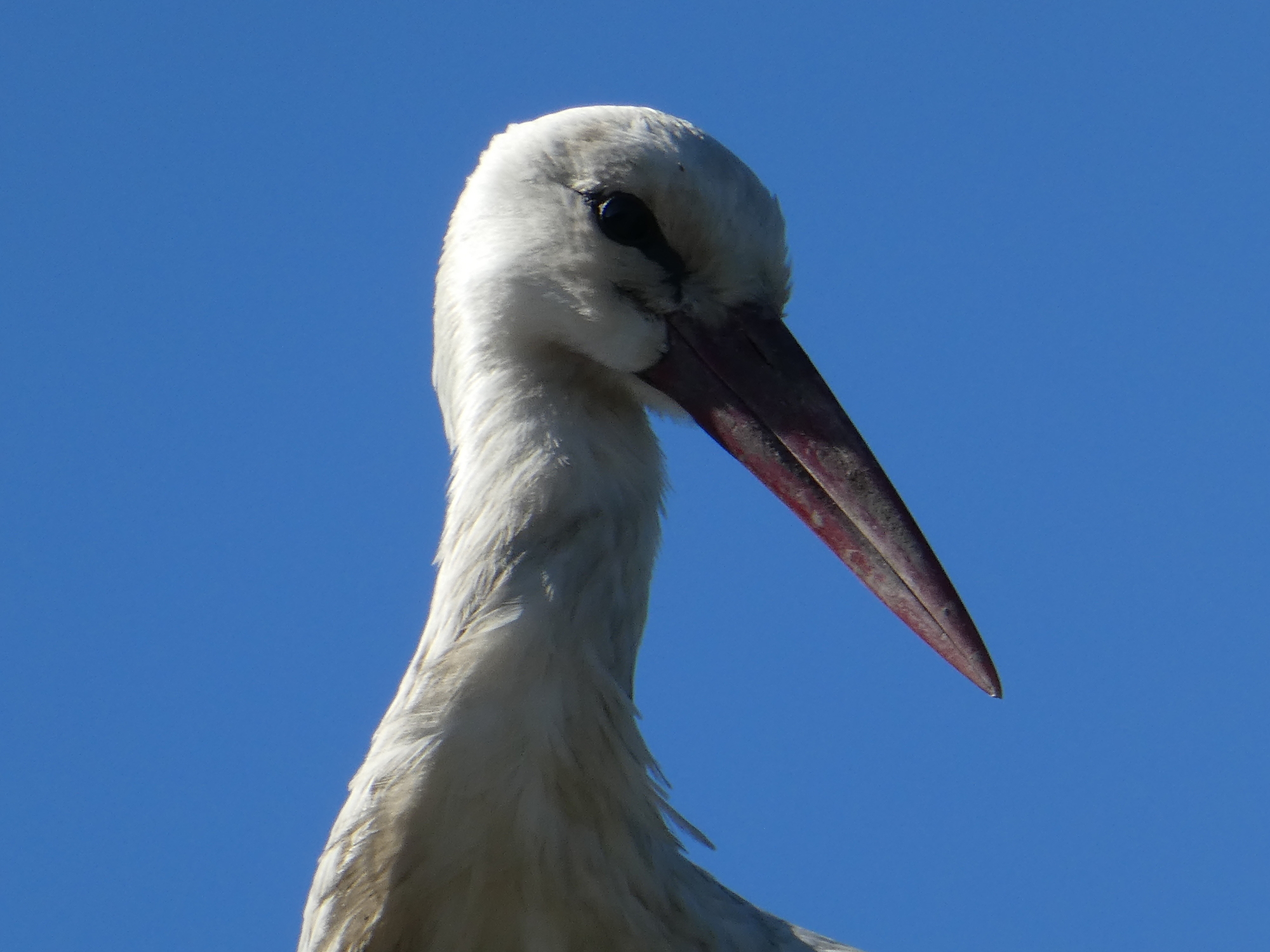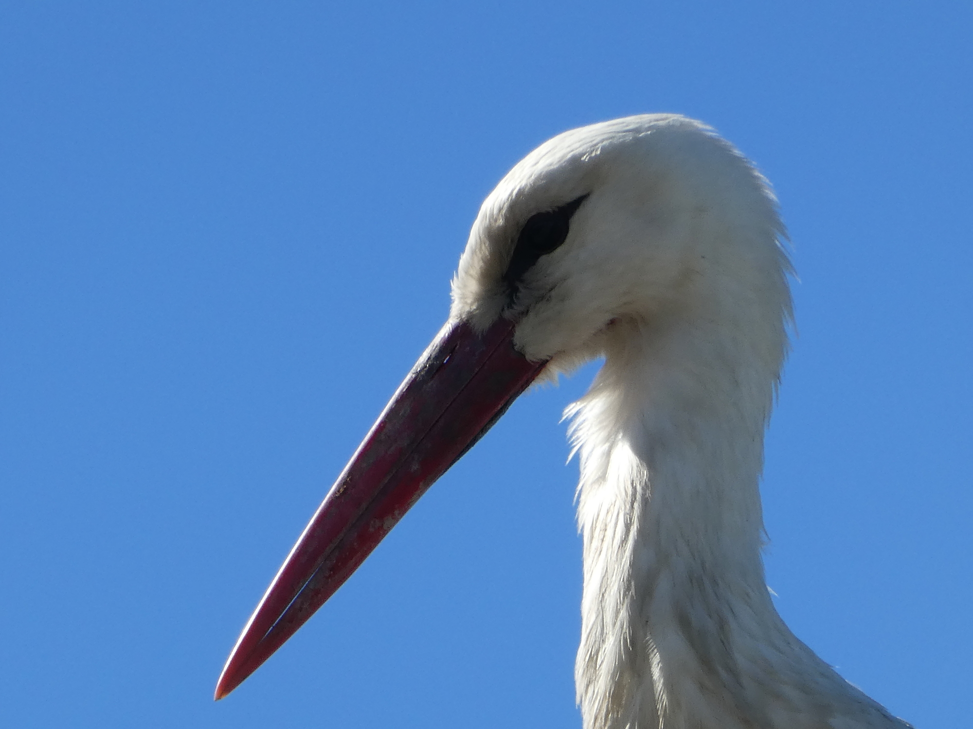 Another feature noted by previous bloggers was the numerous storks, with nests all over the place, and stalking the fields as well. Normally I will not now photograph a single stork, because like orange trees, they have become commonplace. But I relented for a "double stork", and a stork giving me the evil eye.