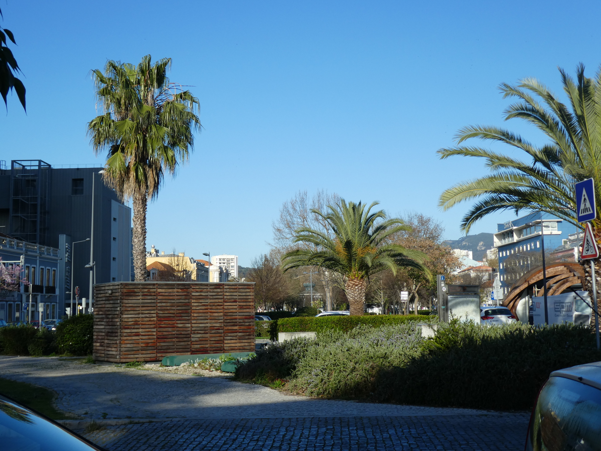 We found Setubal to be a very pleasant place. It featured that long park between the lanes of the main street, and very calm and quiet traffic overall as well. The buildings looked older, and fancier, than what we have come to expect in a Portuguese beach or harbour town , and facilities like the ferry terminal were extremely easy to find.