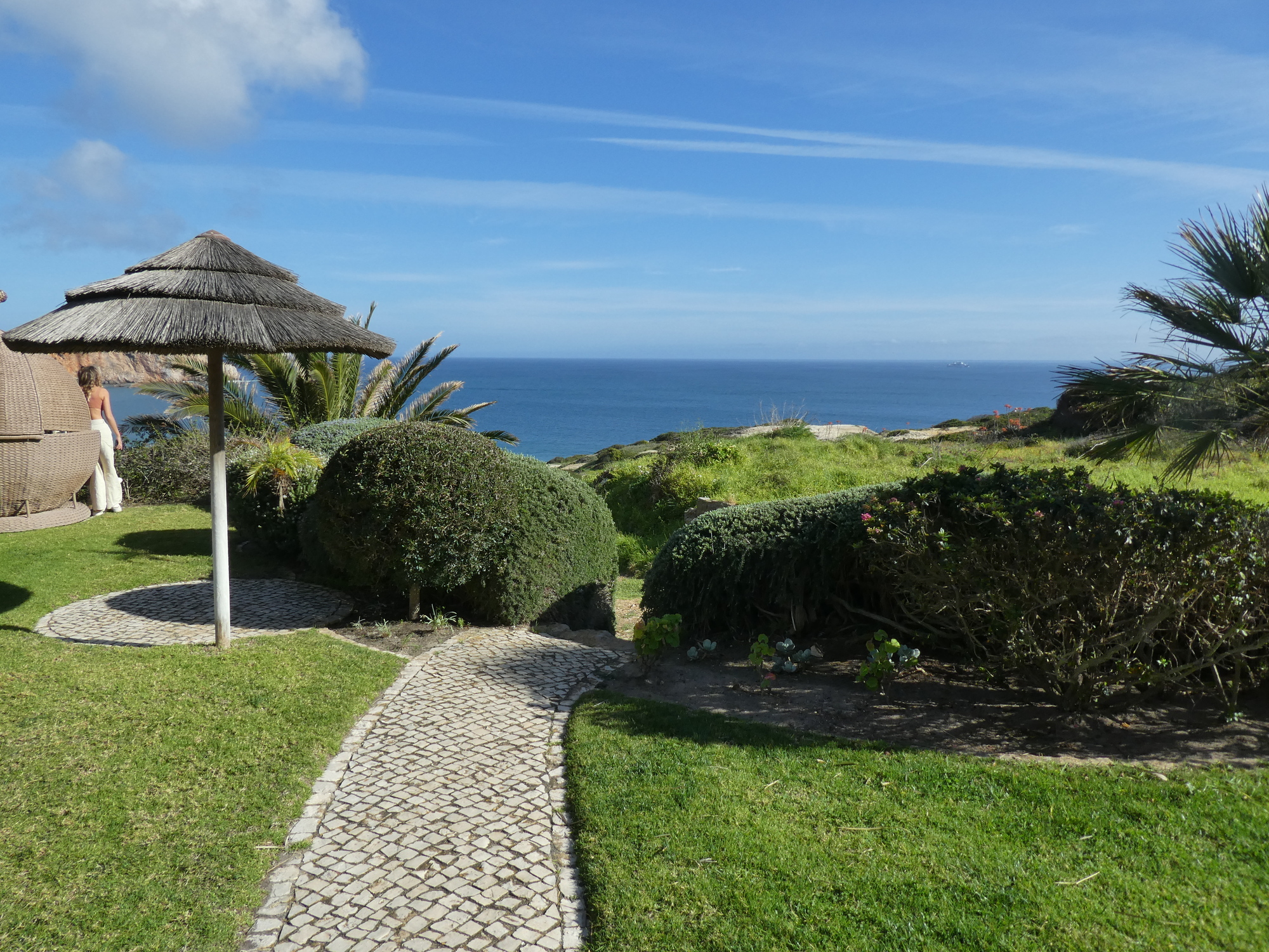 Our hotel in Sagres is called the Mareta View, which styles itself a boutique B&B. The Booking took care to warn that the double room is small, and this was certainly the case. But still it works. However, as in most cases there is no usable desk (in this case, no desk) , and also in this case no chair, making it hard to even use the bed as a desk. But we did find a sort of stool, so this blog is in business!