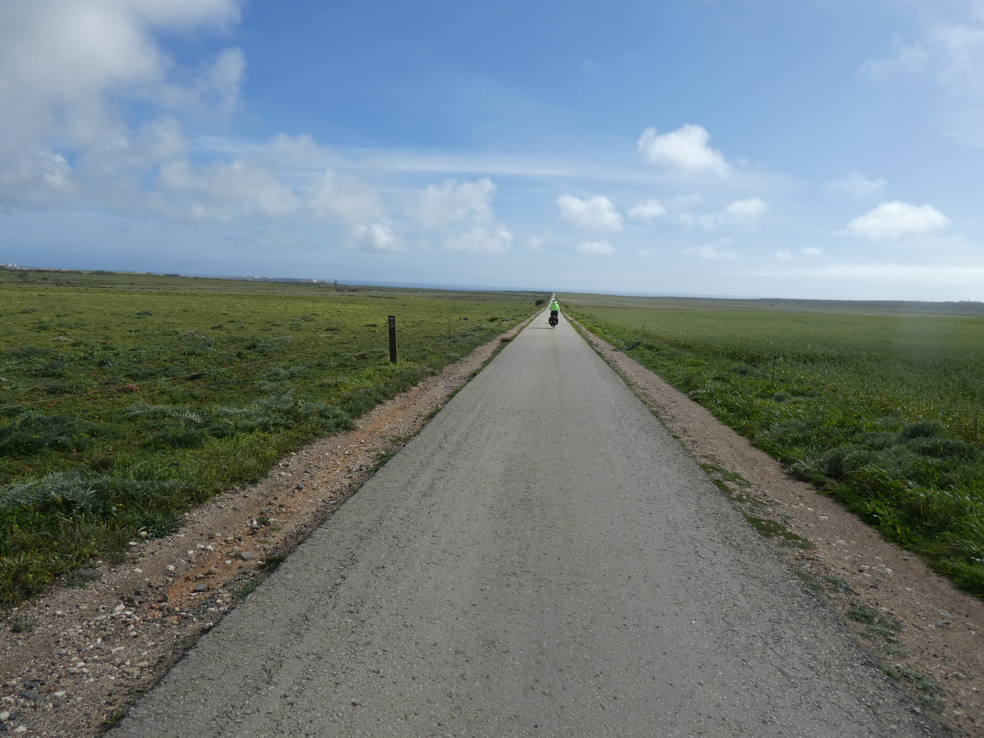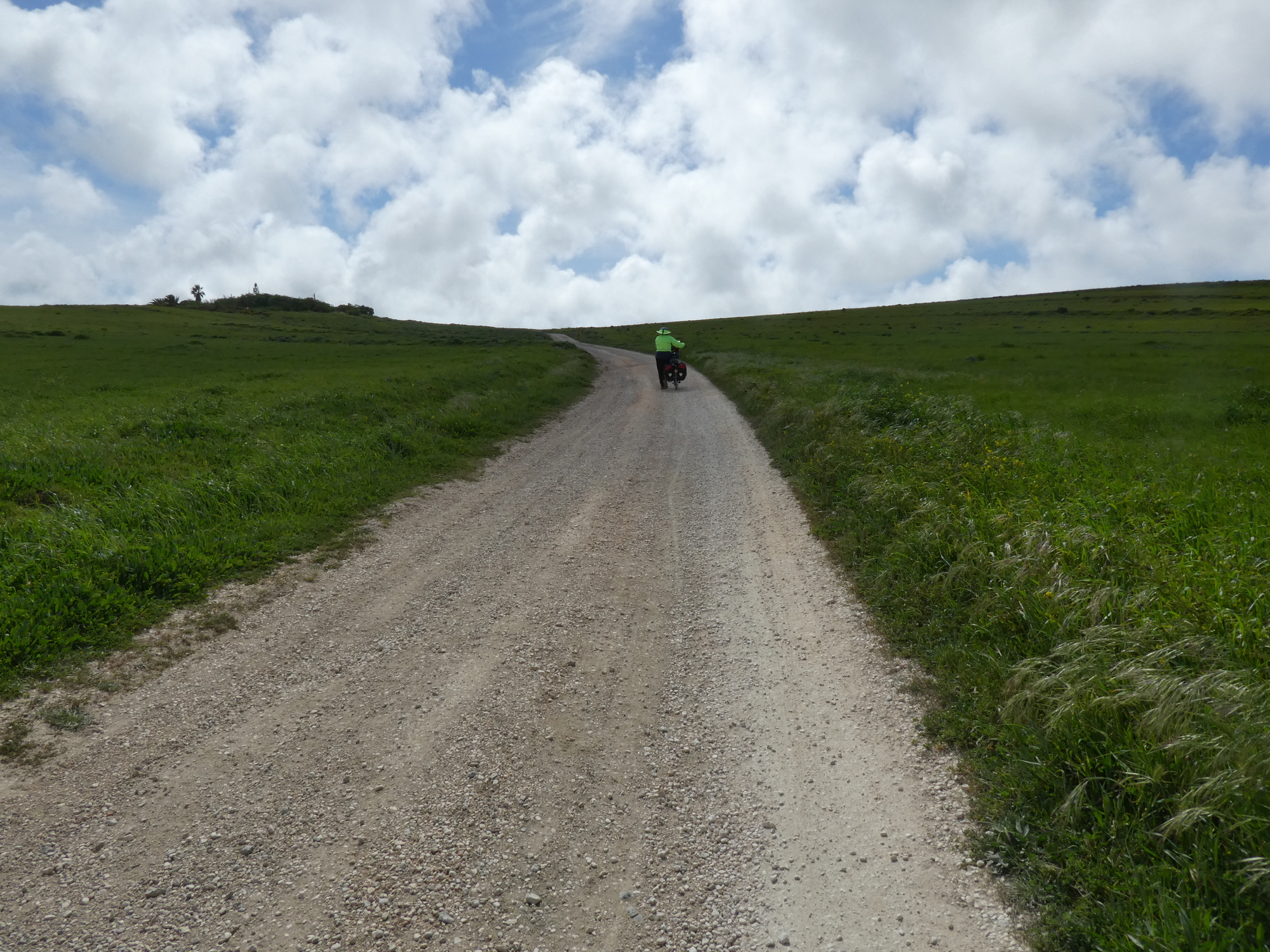 Now we got suckered out along EV 1 toward Sagres on a dirt road, with no redeeming value at all. We often had to push on the rough surface. In hindsight N268 would have whisked us into Sagres with no hassle!