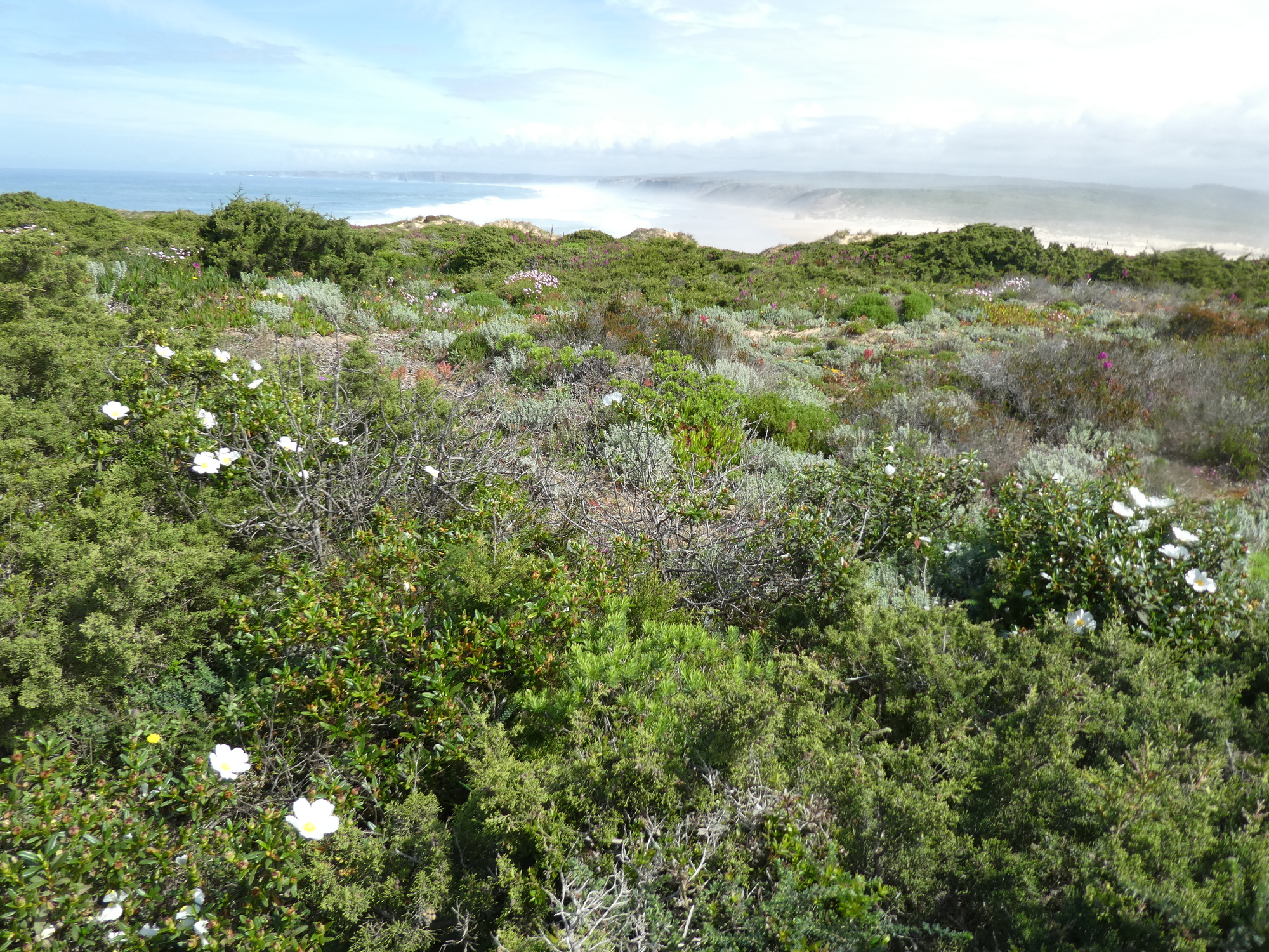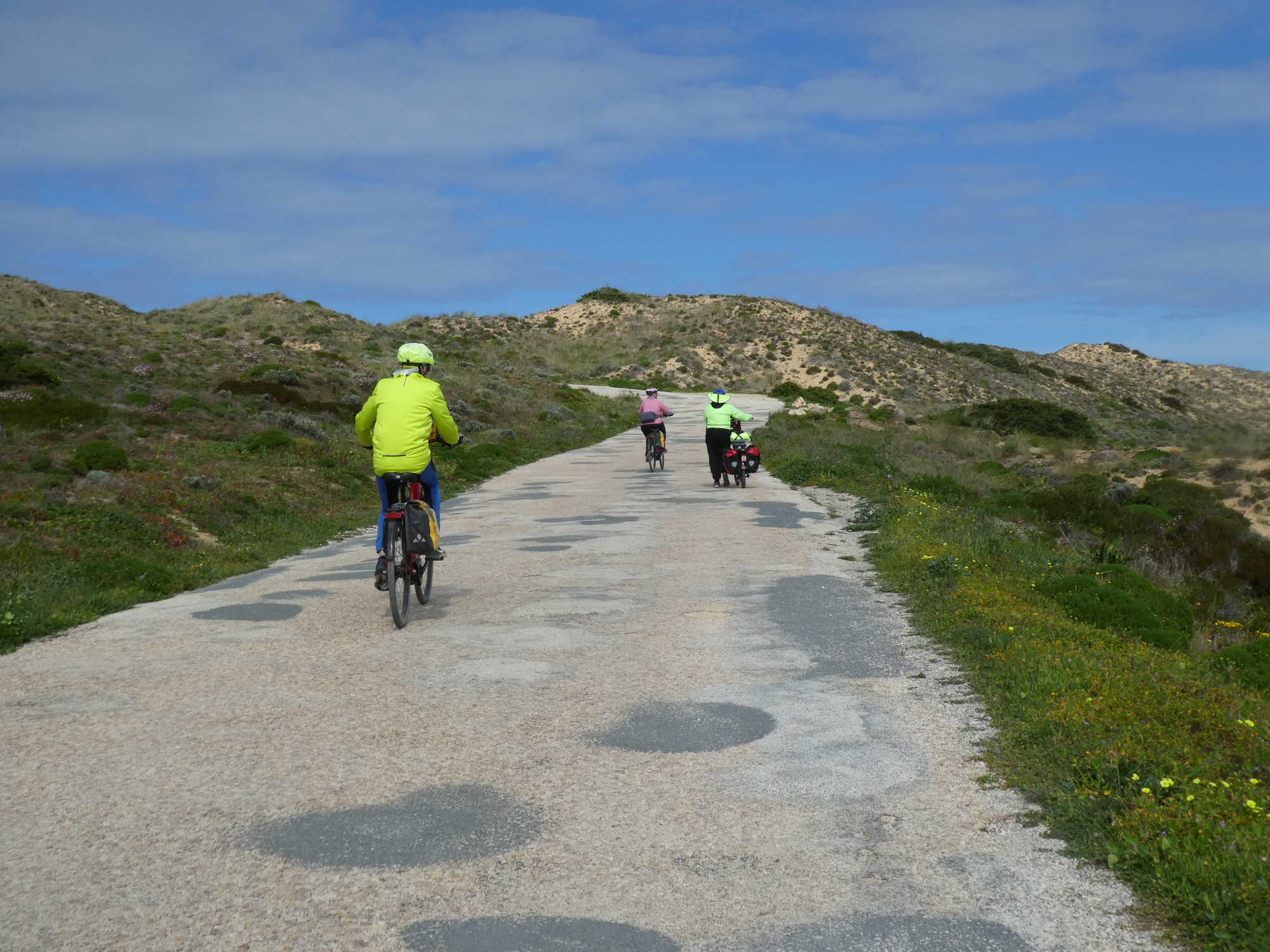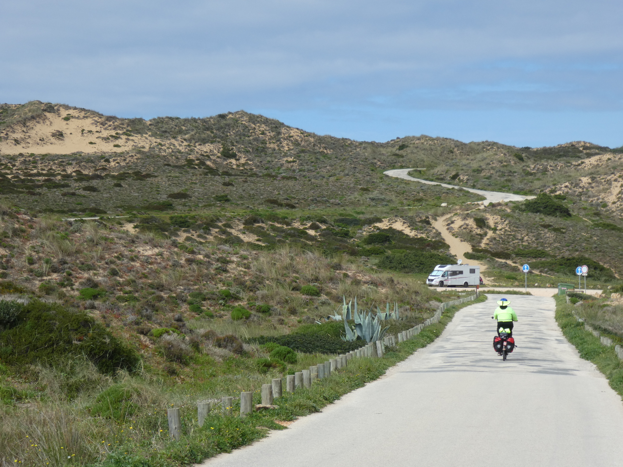 After Bordeira the character of the land changed. To be fair, we also had turned west and were headed for the coast. Now instead of wooded mountains we had dunes, and a road that climbed them.