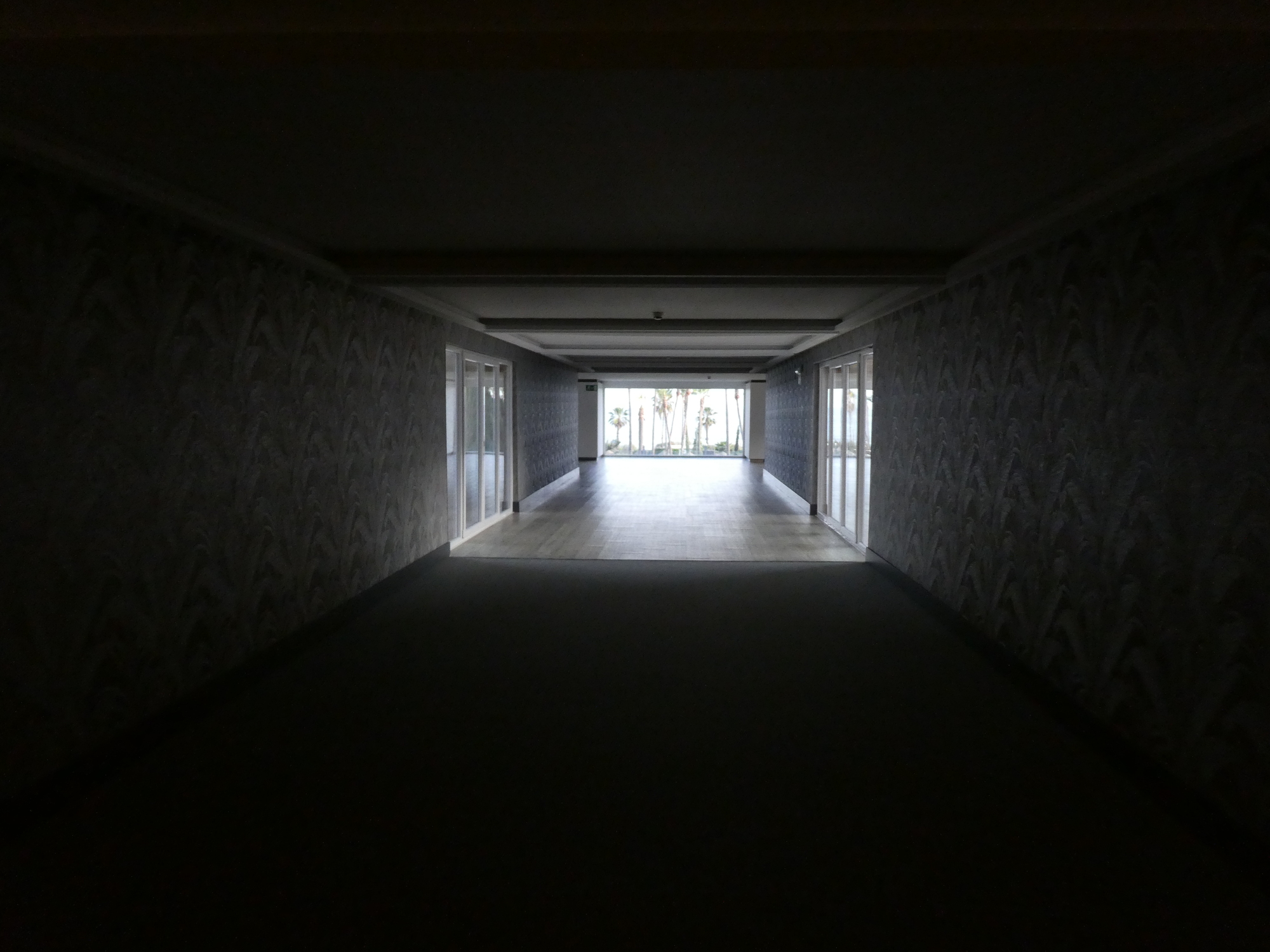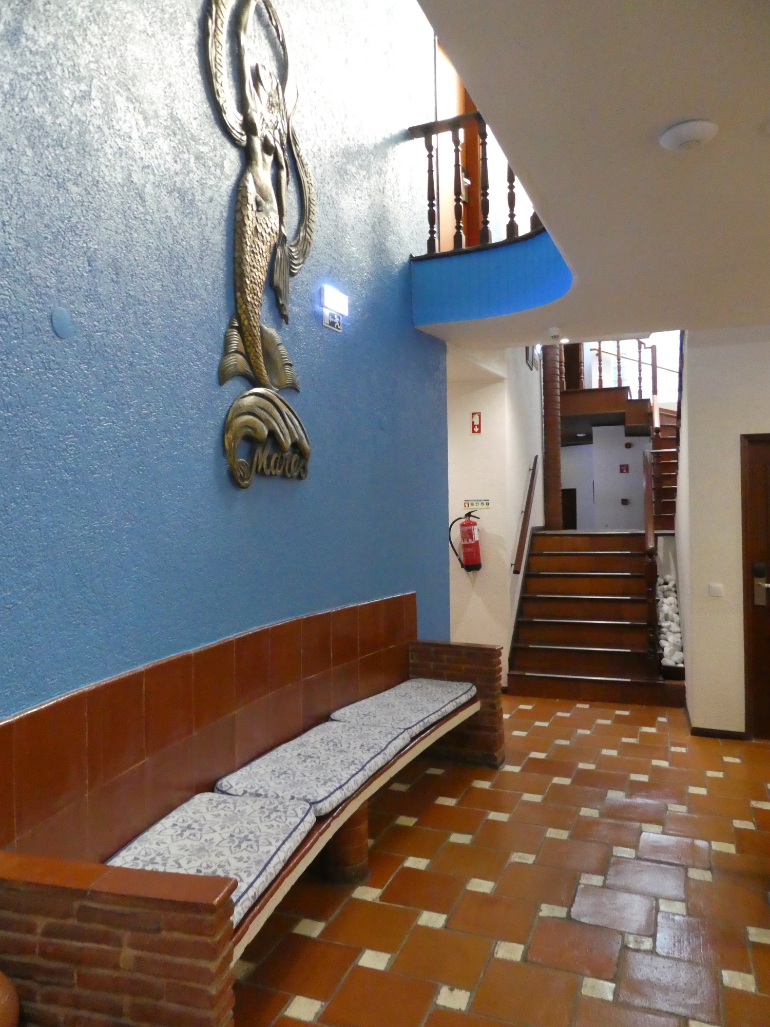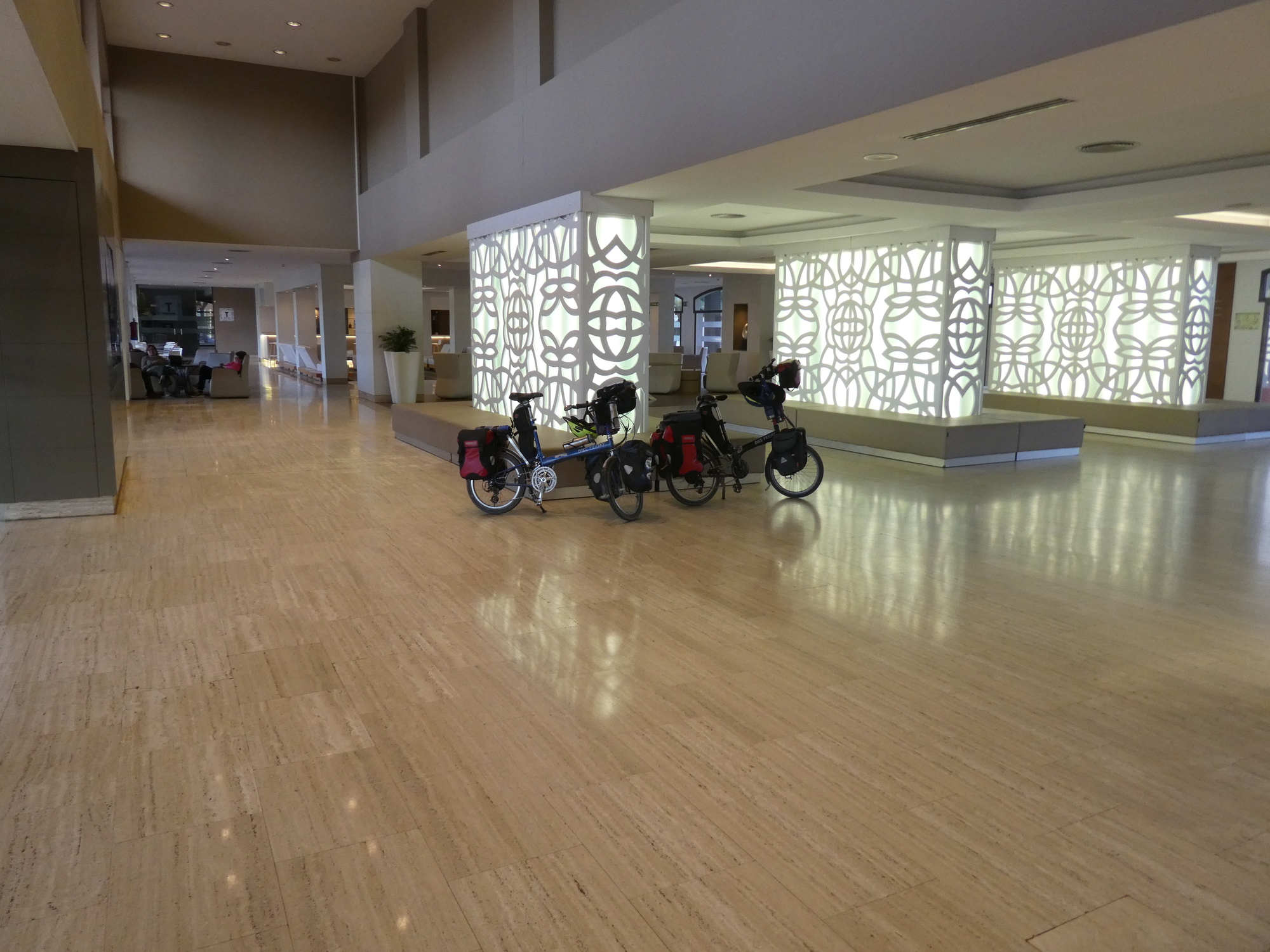 In booking our hotel in Islantilla, Dodie was dealing with little more than a dot on her map. And the "Ilunion Hotel and Spa" was a dot of a Booking listing. But wow, Islantilla is full of giant buildings and hotels, and our hotel is a monster on its own. There is so much empty interior space! I went off to find our room, hiked for a while, and did not even find the elevators. Later, having attained the second floor, long and empty corridors stood between us and our room.