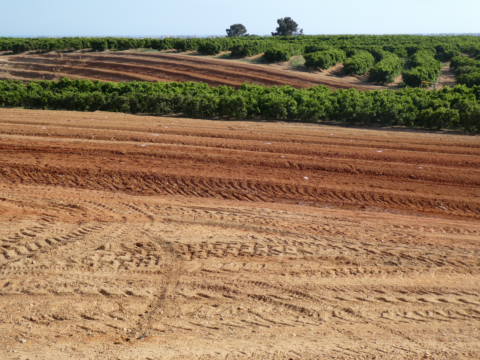 Now we set out in earnest for our hotel, and found ourselves passing through more extensive orange groves than we had yet encountered. In addition, the earth here was a unique reddish colour, making for an interesting region overall.
