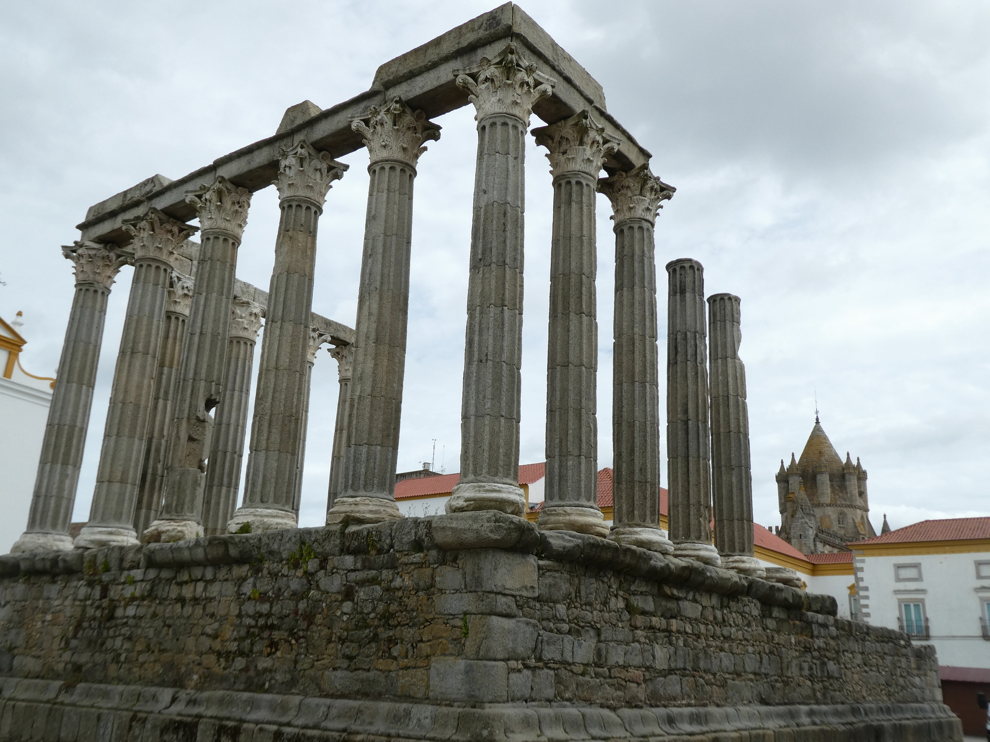 We followed some further narrow and attractive streets to the Roman Temple. This is in Corinthian style and was built in the first century A.D. It was originally part of the Roman forum and was dedicated to Emperor Augustus. Around the 17th century a myth built up that this was a temple to Diana, Goddess of the Hunt, but the closest it got to that over the years was having been used at one point as a slaughterhouse. Now the temple is much restored and is a famous symbol of Evora.