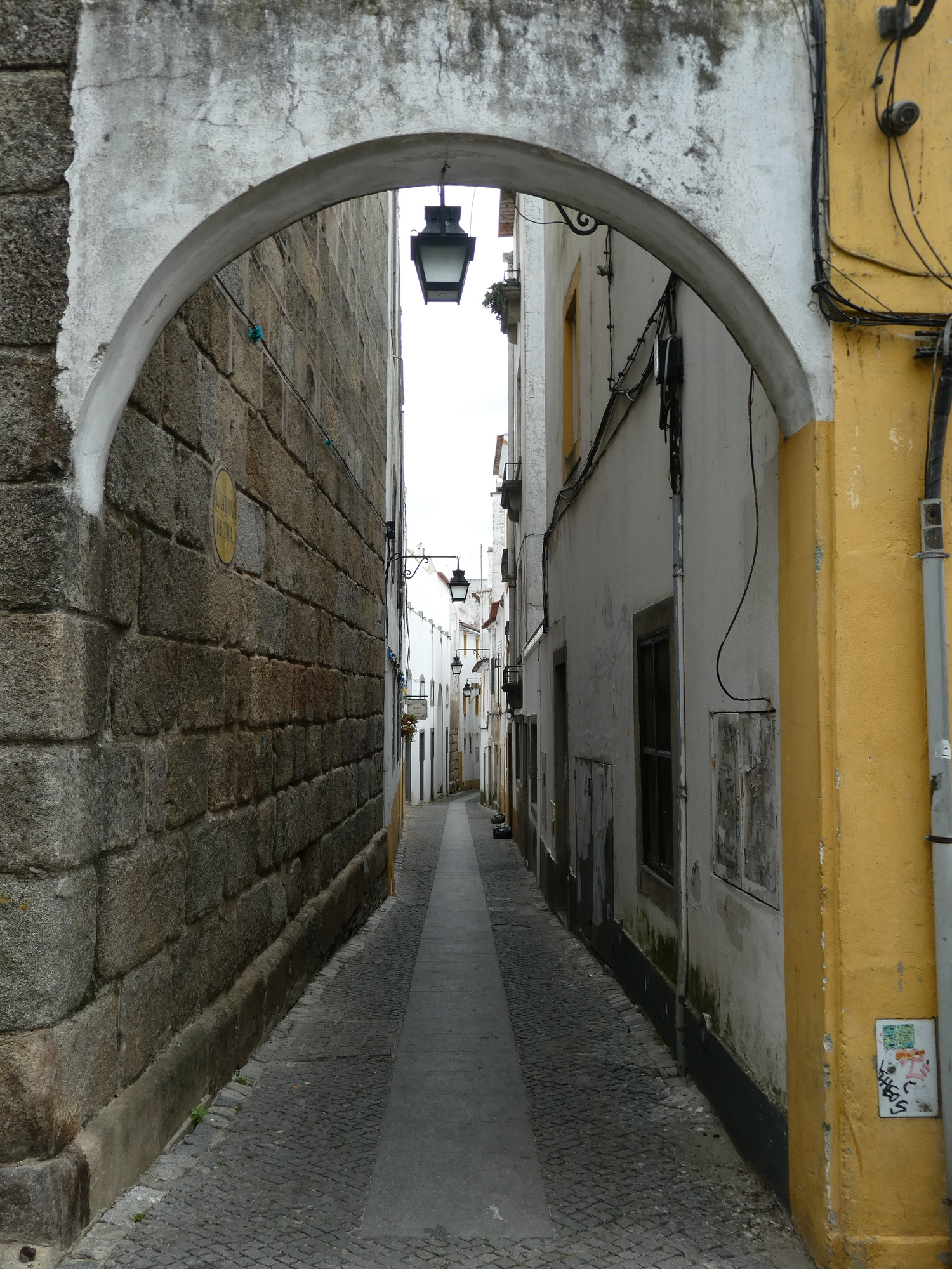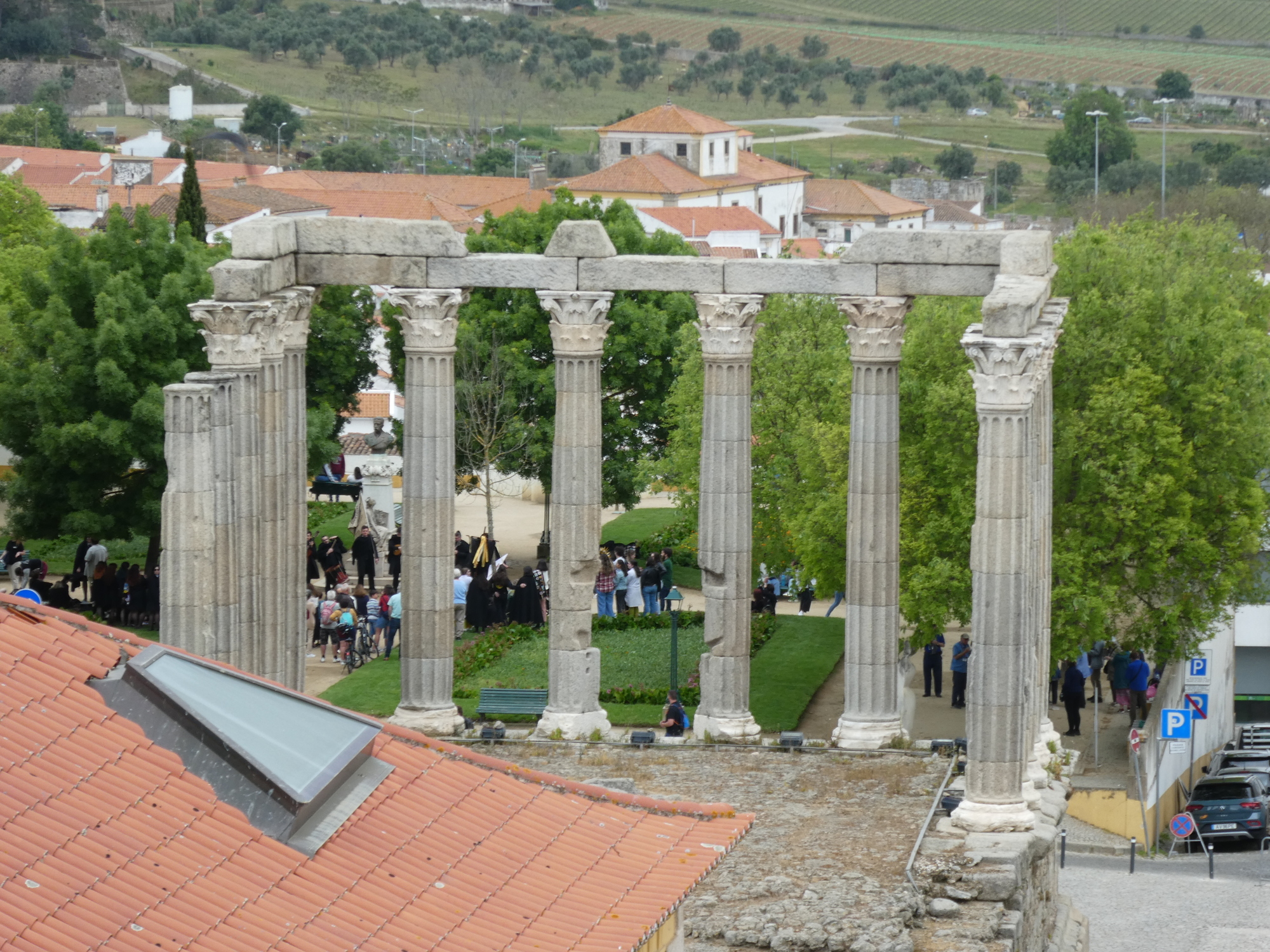 Just behind the temple is a great view to a section of the town below. This is where we also encountered a tourist wearing a Mountain Equipment Coop day pack. This allowed me to address him with "You must be Canadian". Sure enough, the man and his wife were from Montreal. We had a good time speaking English and French, and generally lamenting the demise of the Mountain Equipment Coop. There is clearly a deep well of resentment at the "sell out" of this former Canadian institution, and Canadians can easily recall their shock and upset even when standing by a Roman temple in the middle of bloody Portugal!