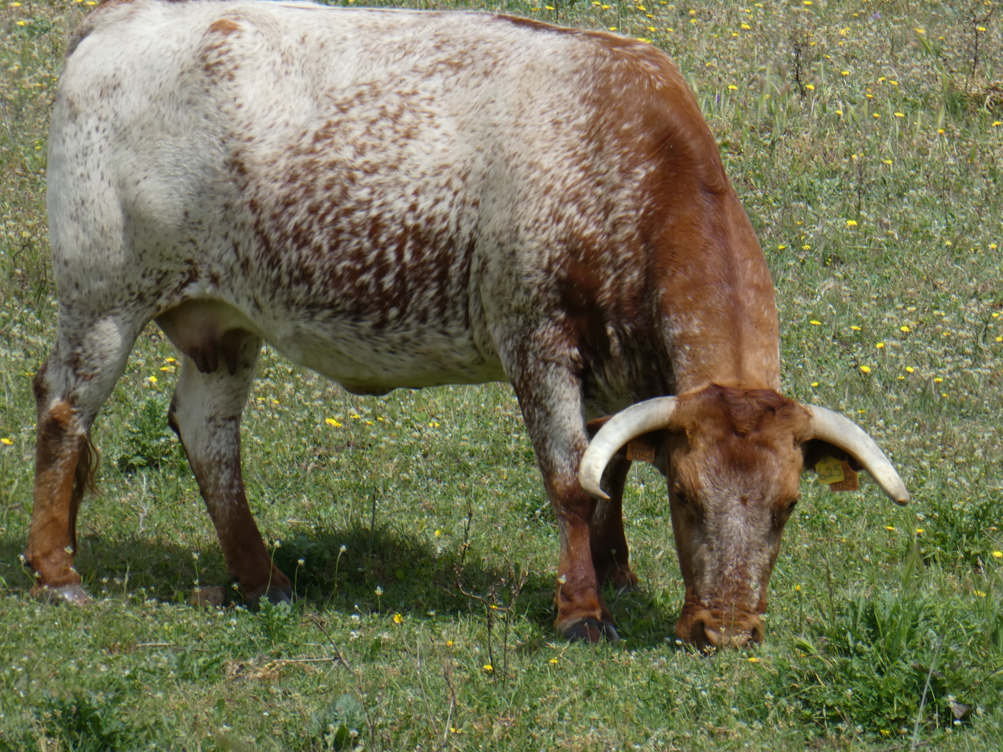 Unlike the last two days, the road and the landscape did not wow us as we started out. It was ok, and we did see a rare holding still for a second Magpie, a large amount of cork forest, a "rare" red clover, a large flock of sheep, and a horse seemingly embarrassed to have all his buddies being sheep!