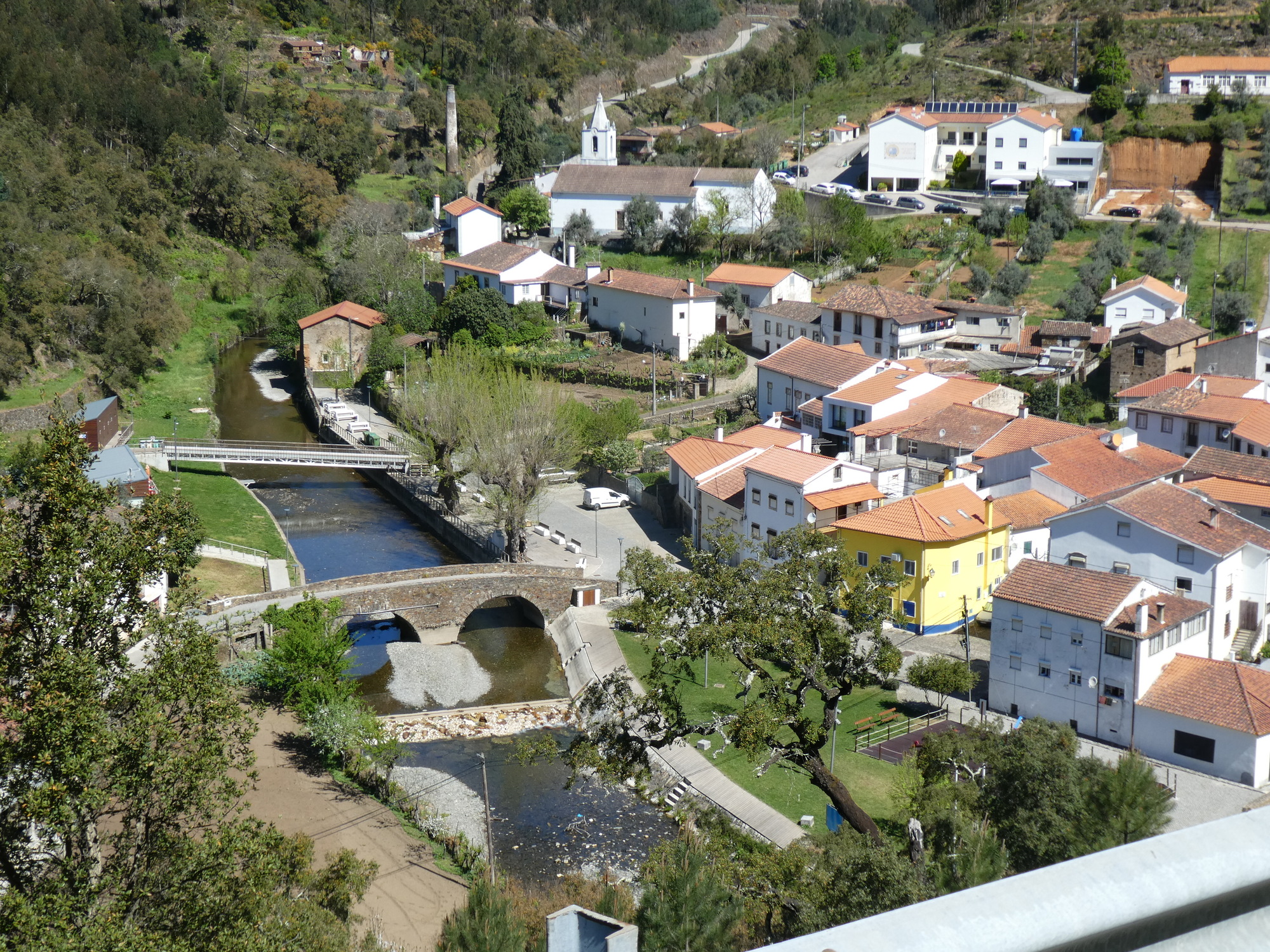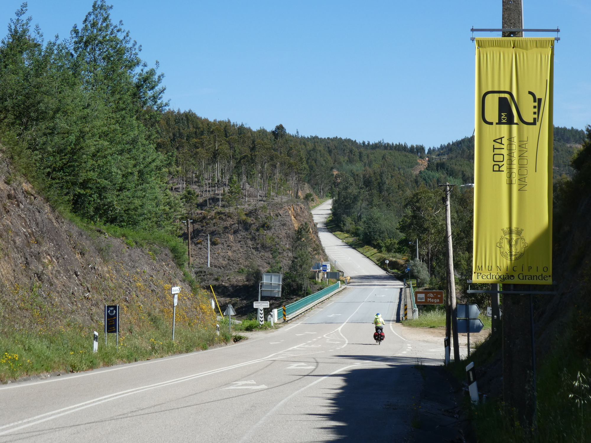 The action started right away, as we were in Pedrogao Pequeno and our first target was Pedrogao Grande, where we had spotted a Supermercado. The difference between the two is the small matter of the Zezere, one of the major rivers of Portugal. It has a gorge right here, and that is dammed by the Barragen do Cabril, creating a massive reservoir.