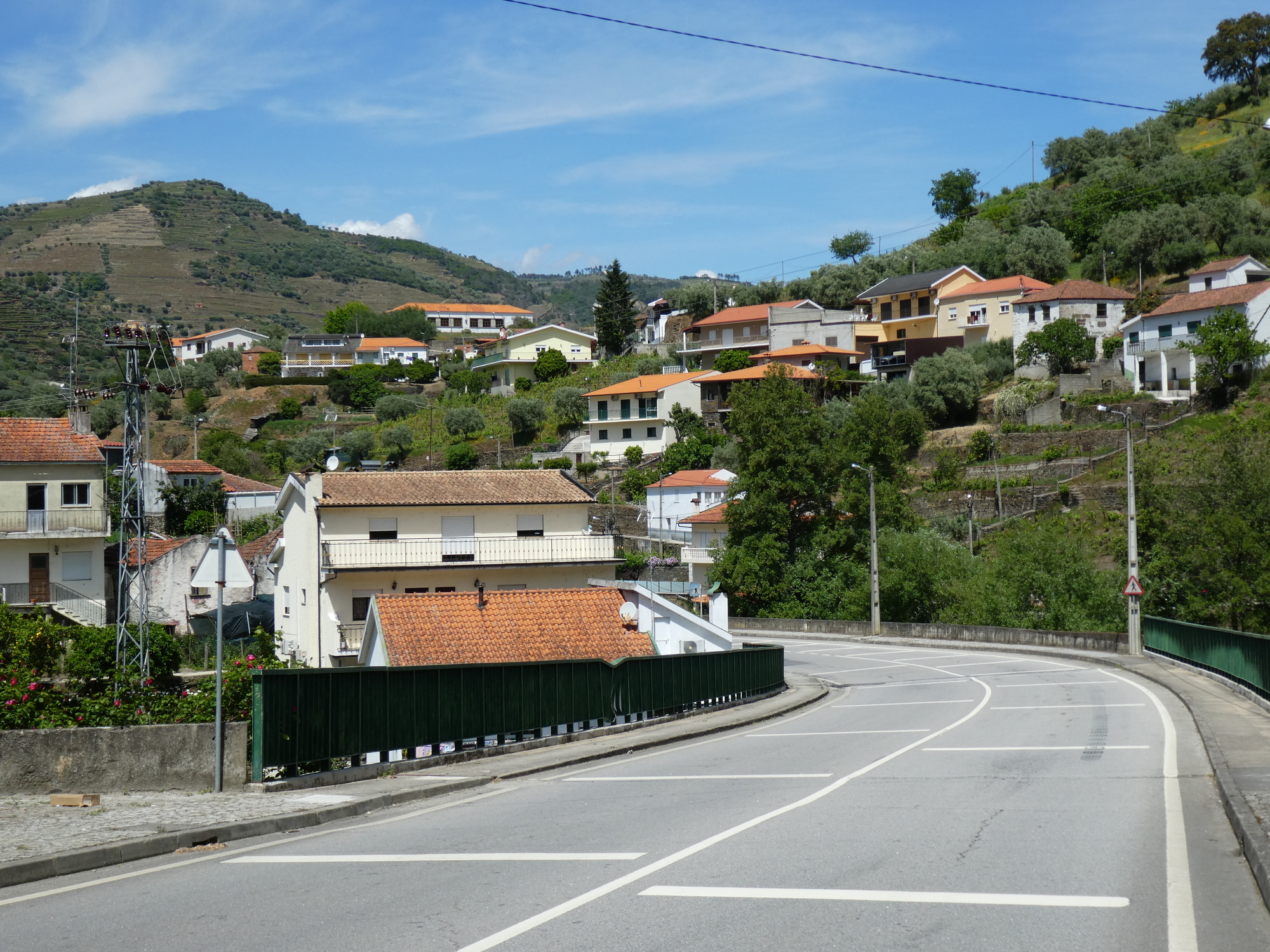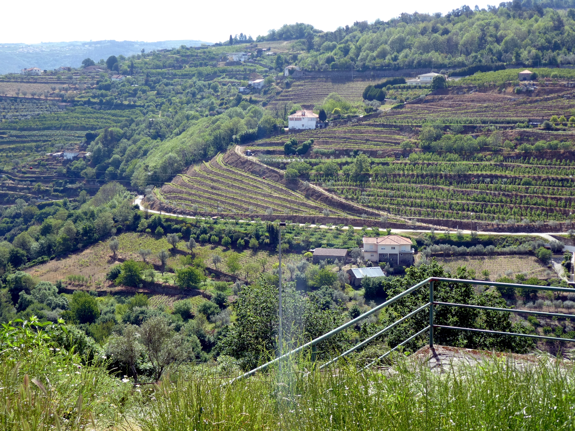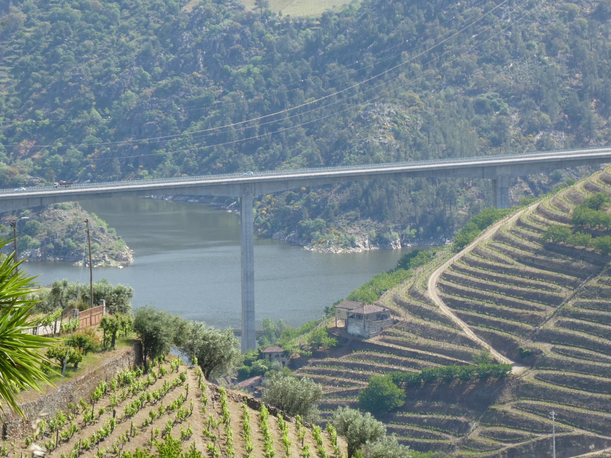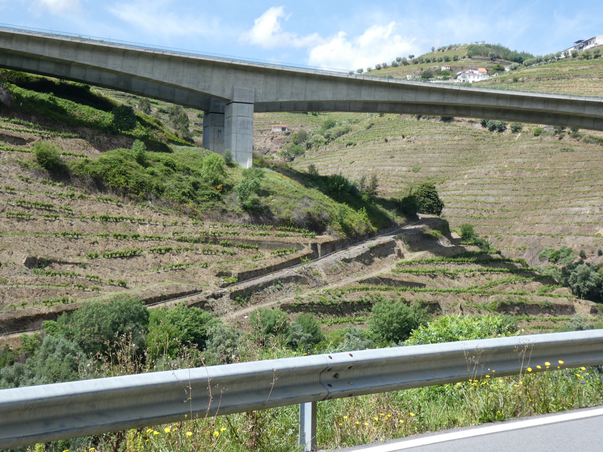 With a last look at "our" castle, we set off on the real ride for the day. We knew from the track that it would be downhill all the way to Regua. We got that, and also the rather expected dangerous curves upon curves. But within a few km of leaving Lamego we were really blow away by the spectacle of the valleys and gorges, all terraced and filled with vines and olives. It was one of those absolutely WOW situations, something you can not see anywhere else that we know, not even in the Mosel valley in Germany.