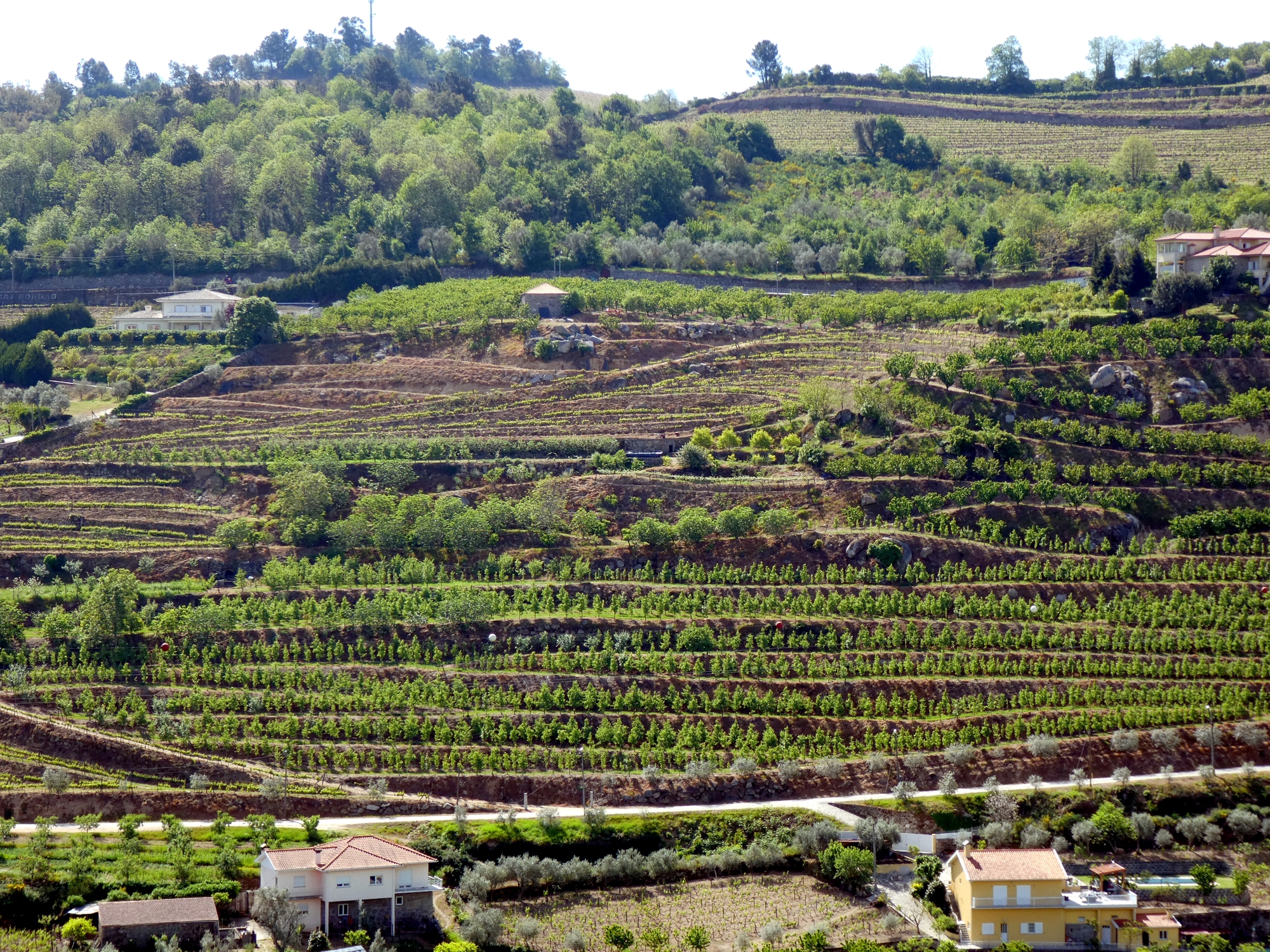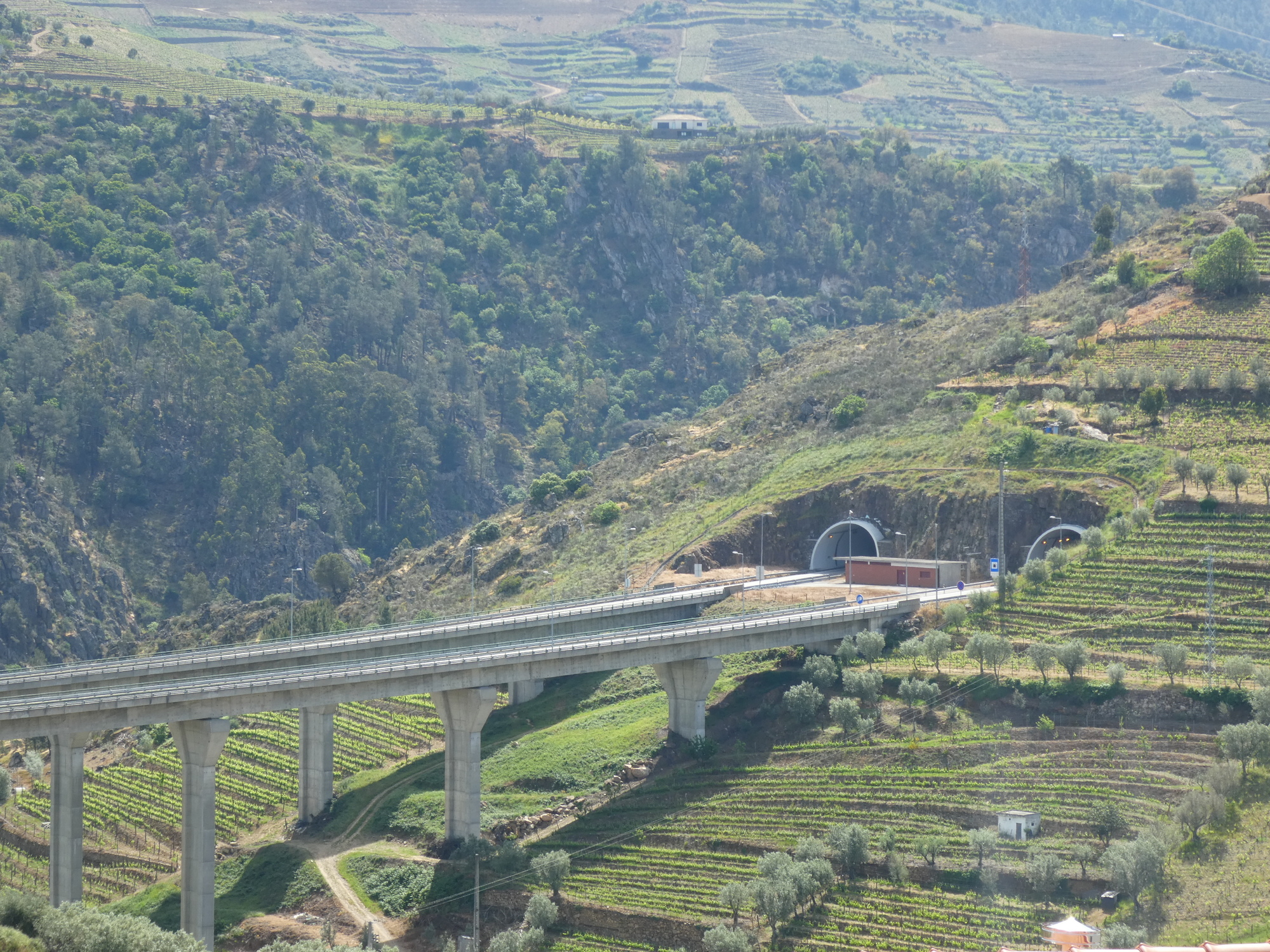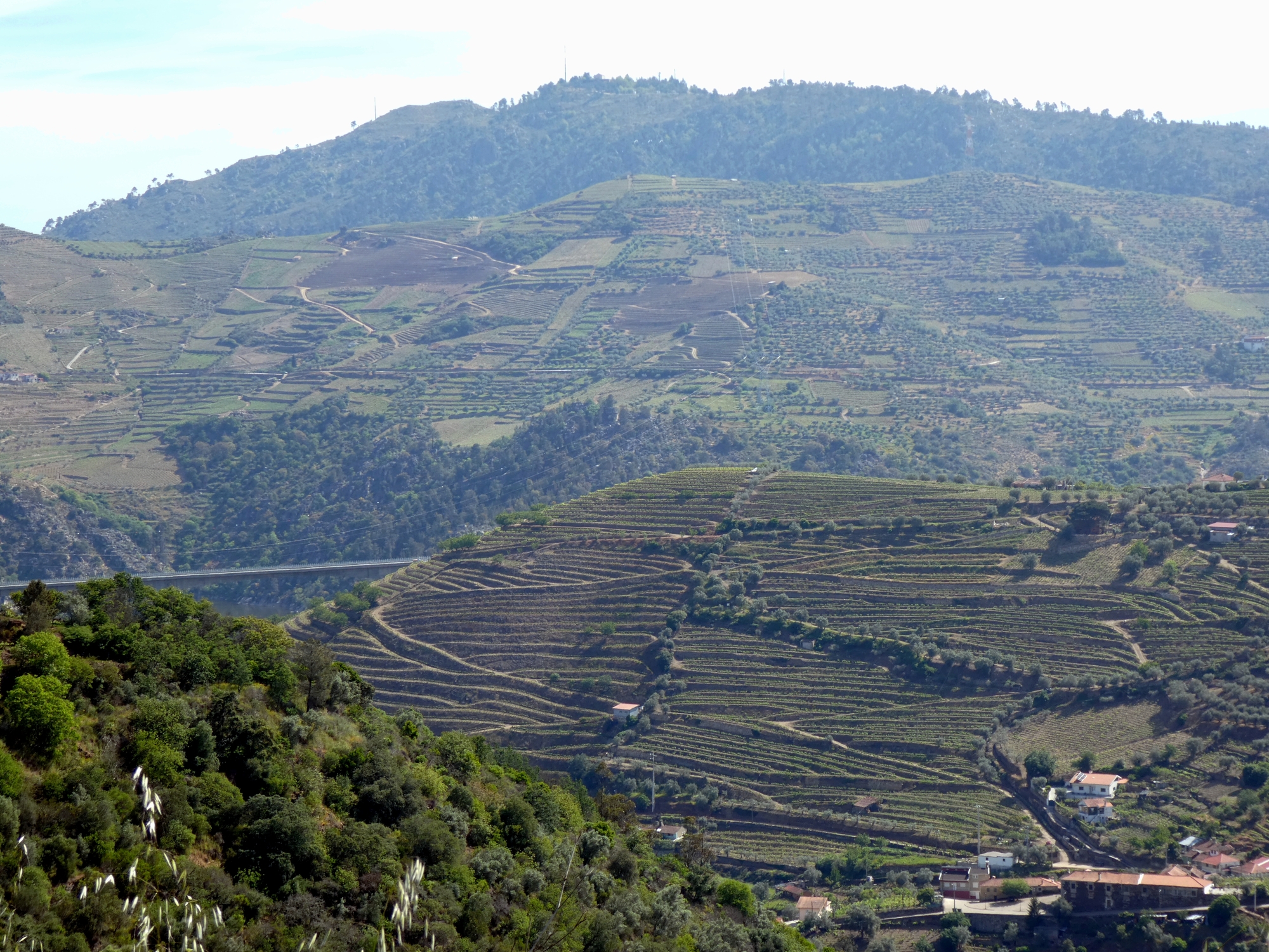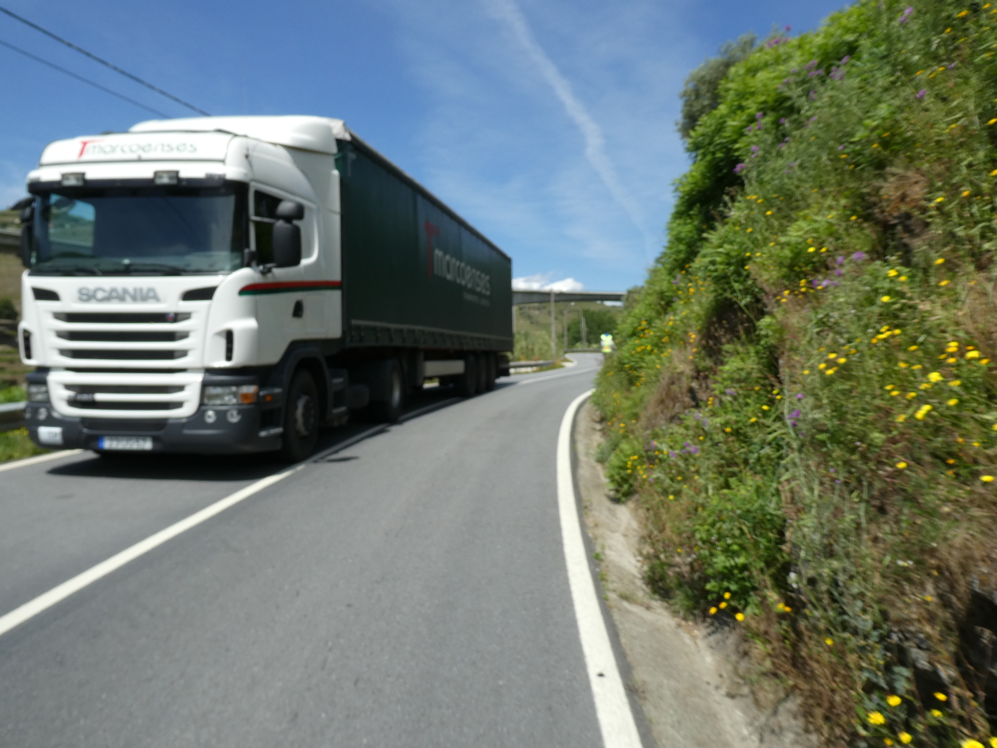 With a last look at "our" castle, we set off on the real ride for the day. We knew from the track that it would be downhill all the way to Regua. We got that, and also the rather expected dangerous curves upon curves. But within a few km of leaving Lamego we were really blow away by the spectacle of the valleys and gorges, all terraced and filled with vines and olives. It was one of those absolutely WOW situations, something you can not see anywhere else that we know, not even in the Mosel valley in Germany.