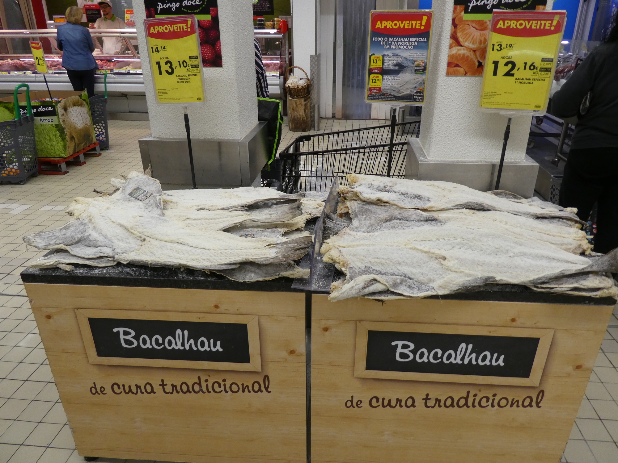 The second chore was to bolster our food supplies, by stopping at the grocery. We chose the chain Pingo Doce rather than a mini or super mercado this time. Among the large chains, Pingo Doce has a slightly more fun image. The name means "Sweet Drop" or maybe "Gumdrop". Since "doce" means sweet, when we bought a sweet pudding made by Pingo Doce, it was called a Doce Pingo Doce.