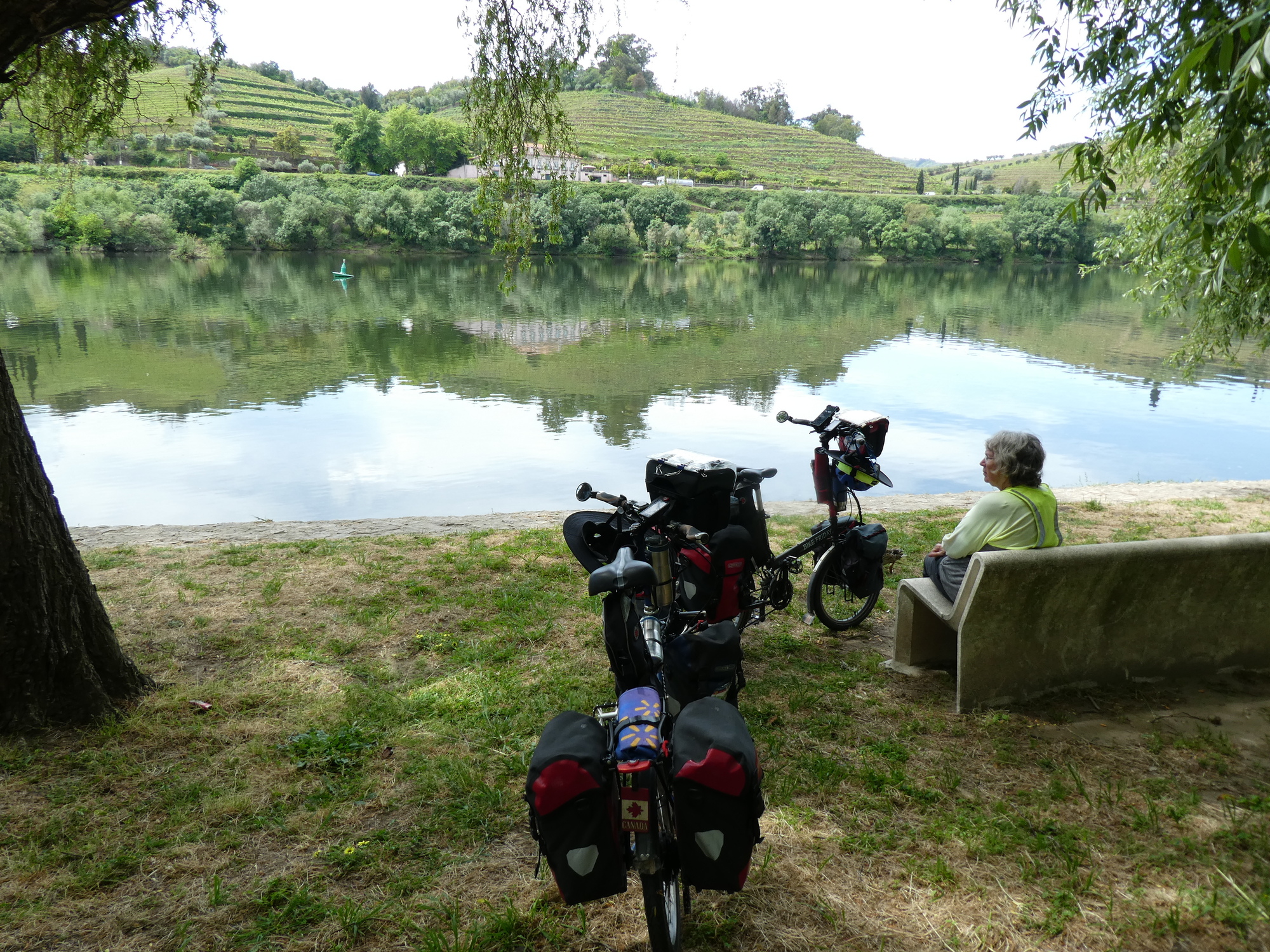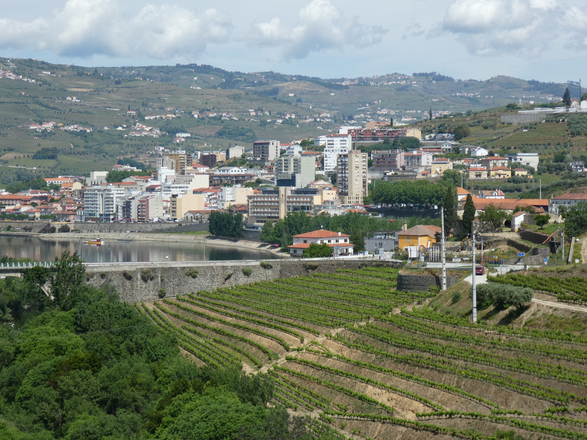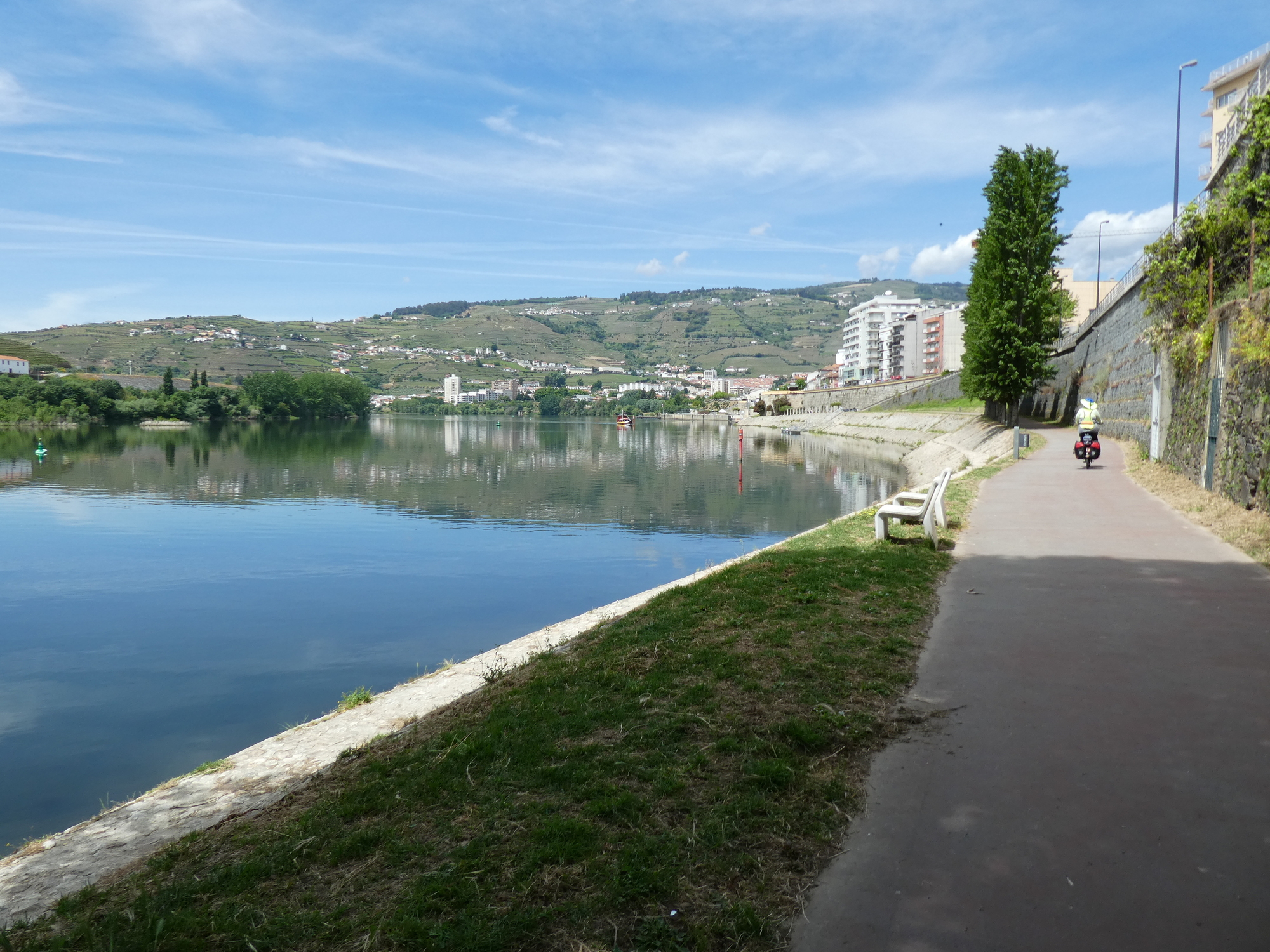 Ah yes, there it is - the town of Regua. Rick Steves is a little down on it, noting that the high-ish rise buildings are out of character with the wine region. We are ok with it, particularly as we will shortly find the riverside parks and cycle path.