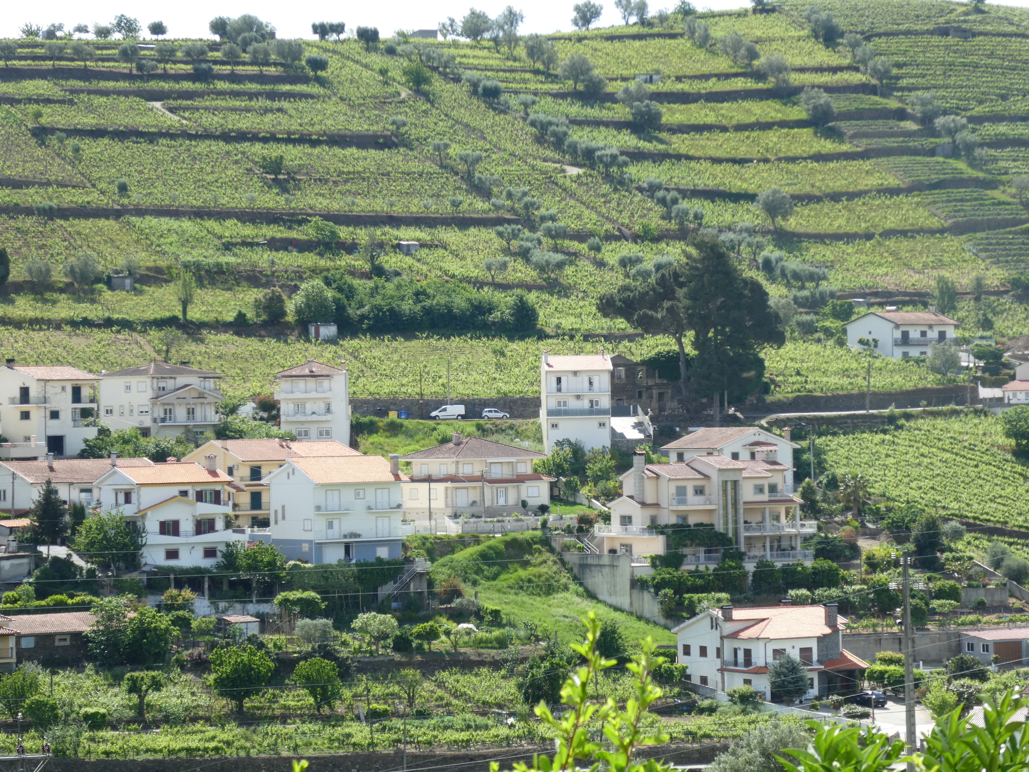 The Douro is now further away and we are higher. Regua is still visible on the right. This will be our last glimpse of the Douro until we rejoin it at Porto in some days.