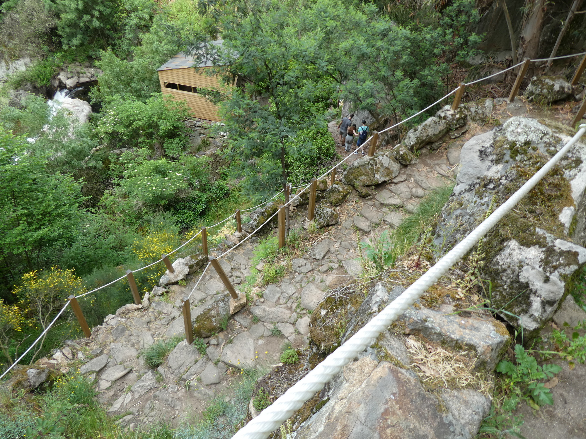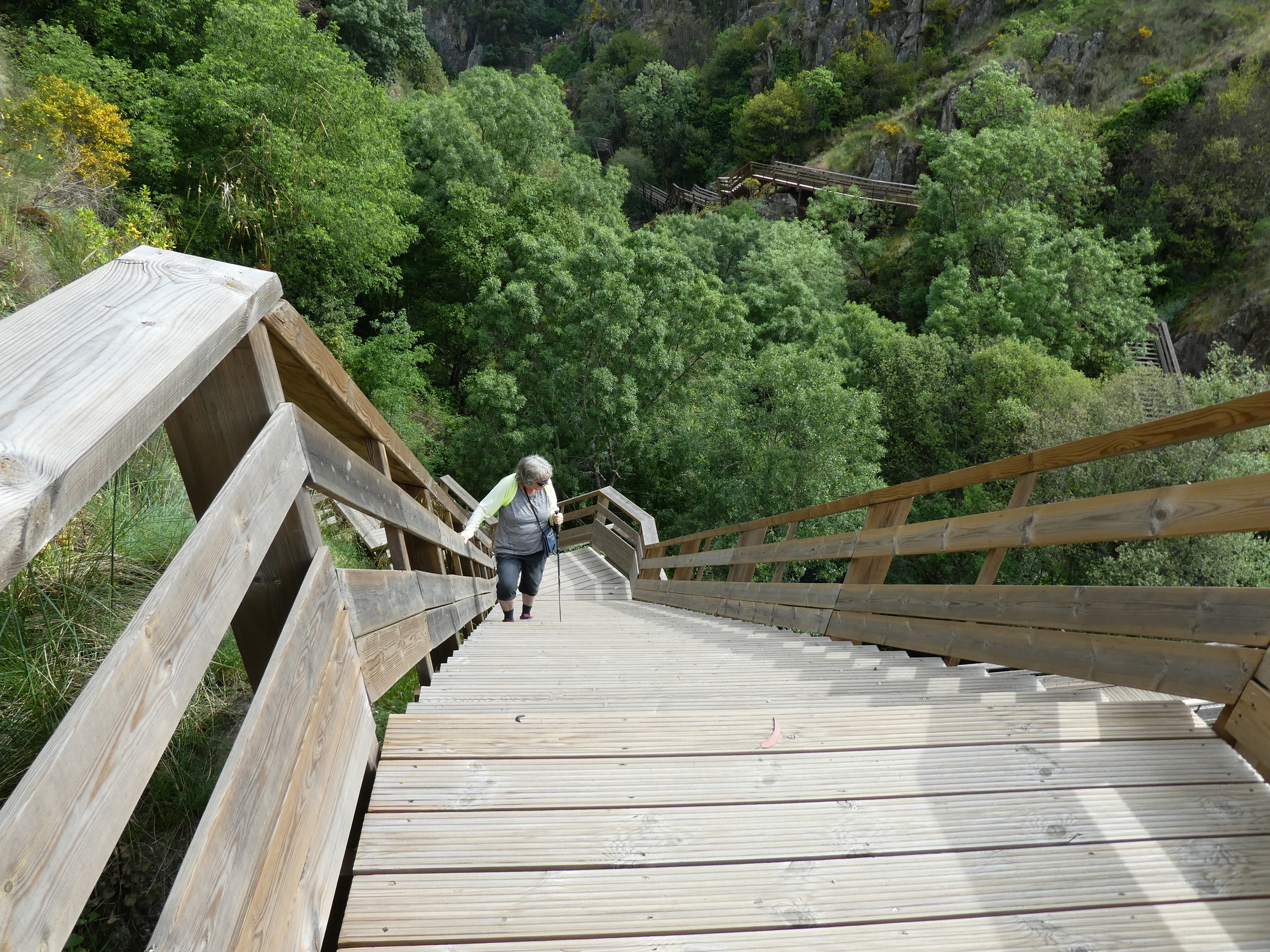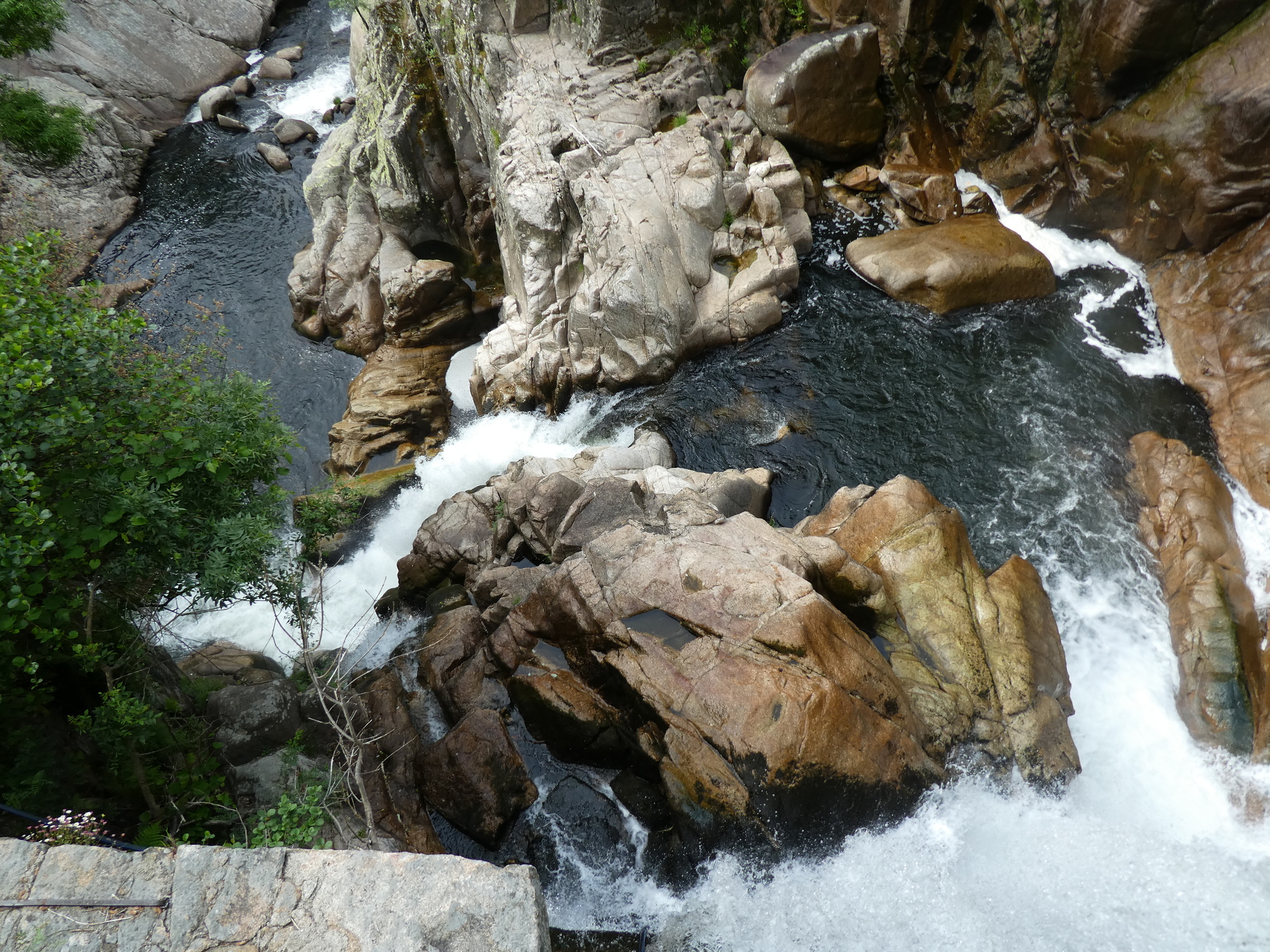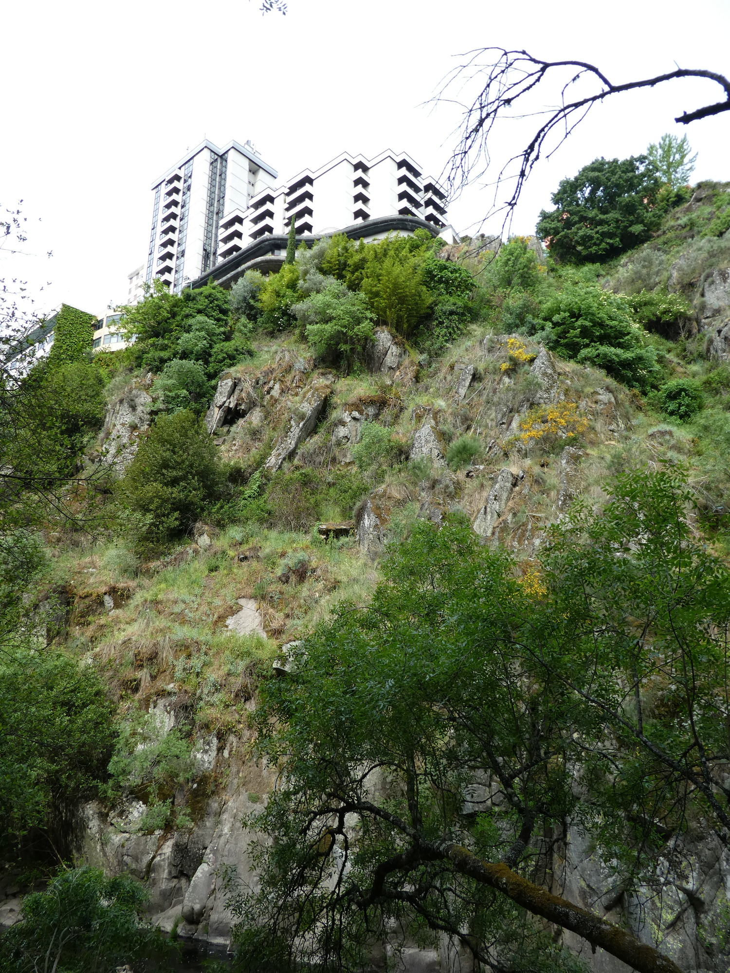 Heights make me nervous, and so it was with this gorge. We did run into some evidence that one has to take care. in the form of a car that had clearly rolled off the top. Indeed, there was a precarious parking lot up there, with the need to back your car down a tricky lane and to stop before tumbling to the river. Maybe one can get used to this if born here, but sheesh.