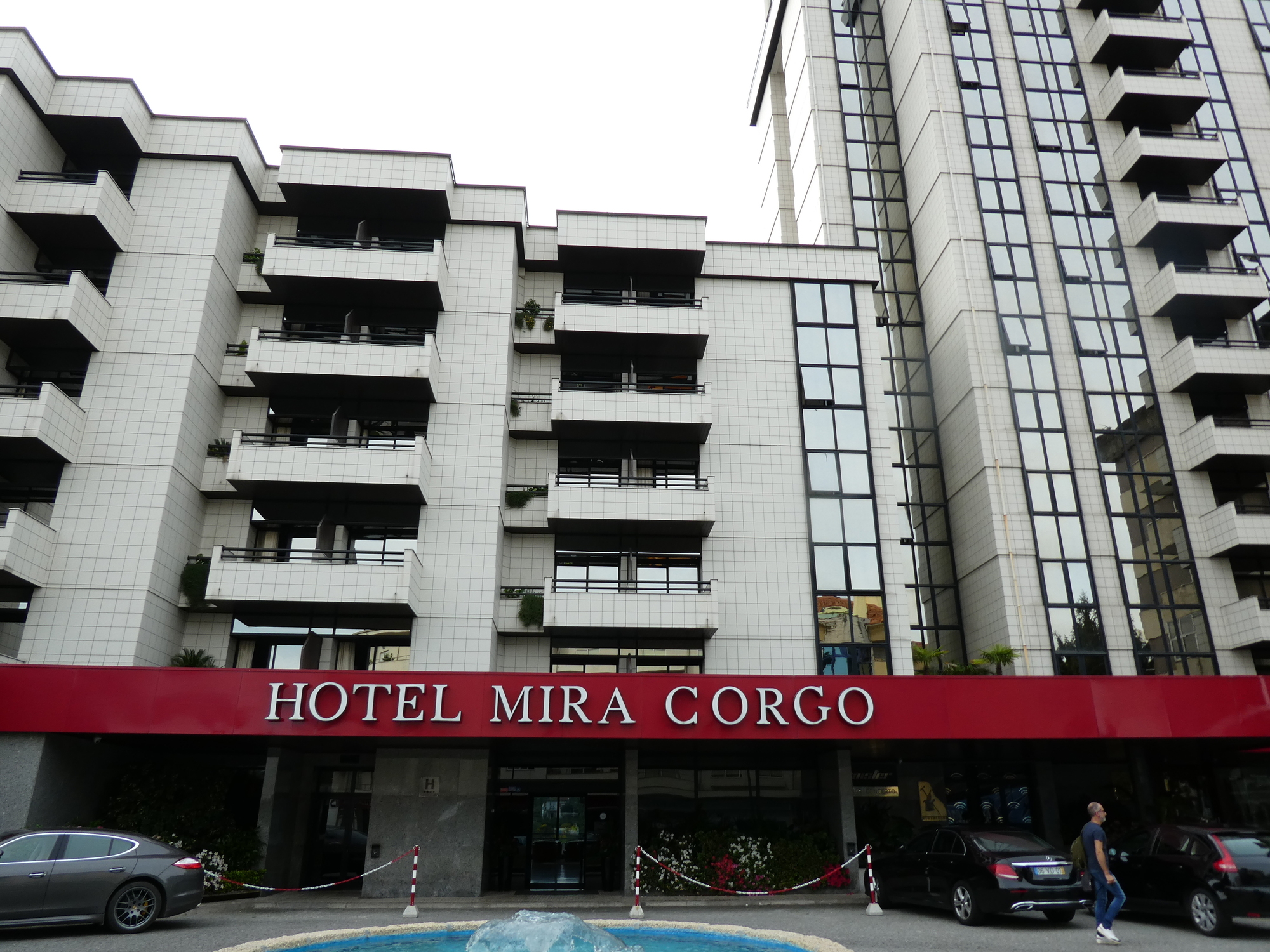 Our cycling adventure finds its continuation just now with exploration and challenge in a four star hotel. The Miracorgo affects not one but two doormen, and quite expansive lobby spaces. But it seems to stumble over its own magnificence, affording us some entertainment and adventure. It started when I went by elevator to our 5th floor suite (!) to begin dumping some of our gear. I made it there fine, but on the return journey the car stopped at 3rd, where a cleaning lady had pressed the button. She let me get on with it, but after the door closed the lights went totally out. It was really totally black. Not even a glow at the floor zero button. Total blackness can be restful, but it did hamper what would have been efforts to keep punching the zero button. But soon the lights came on, and I was heading for 7. I picked up a Portuguese speaking couple there, and we all punched zero. So, we stopped at 3. Hi cleaning lady! The door closed, and we went to 12. More zero punching. The elevator did have a floor indicator, which was helpful in communicating with the couple about where we were heading. When we stopped again at 3, I used the age old sign for slitting the throat, and we all bailed out for the stairs, which by the way had slow to respond motion sensor and anyway dim lights. I arrived back at zero, and Dodie said, of course, "Where were you?!". "Do you really want to know?"