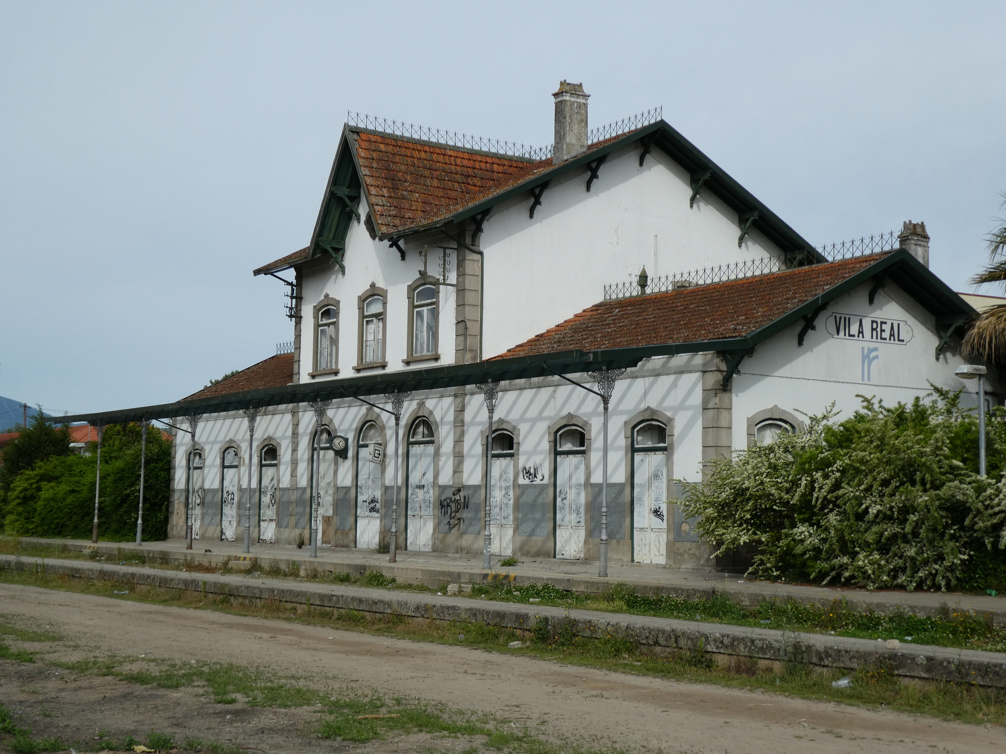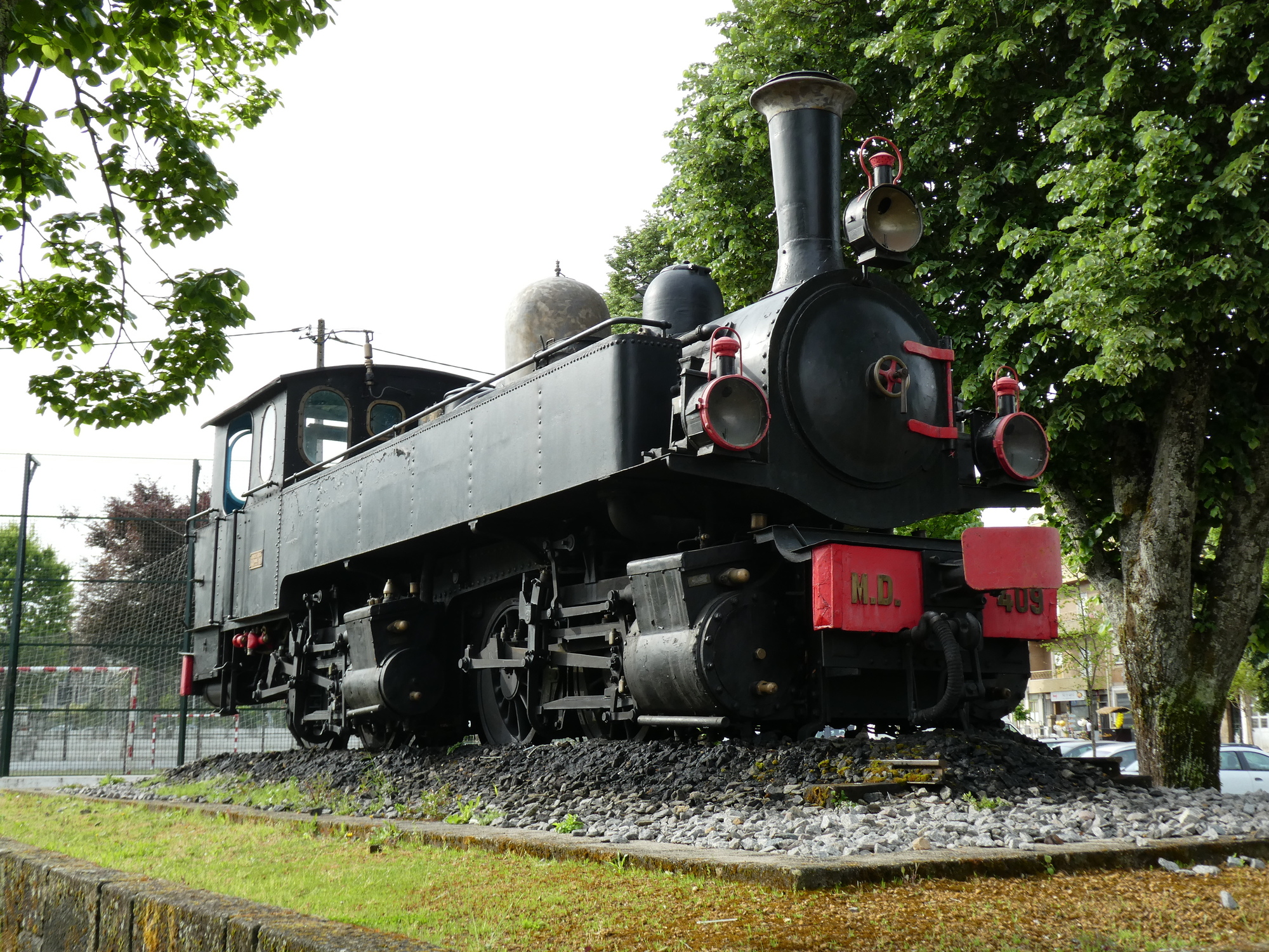We ran into our first clue about rail trails in the form of a preserved locomotive. It was made by the same company that had supplied that one at Santa Comba da Dao. Our next clue was the actual abandoned station. We were getting warm!