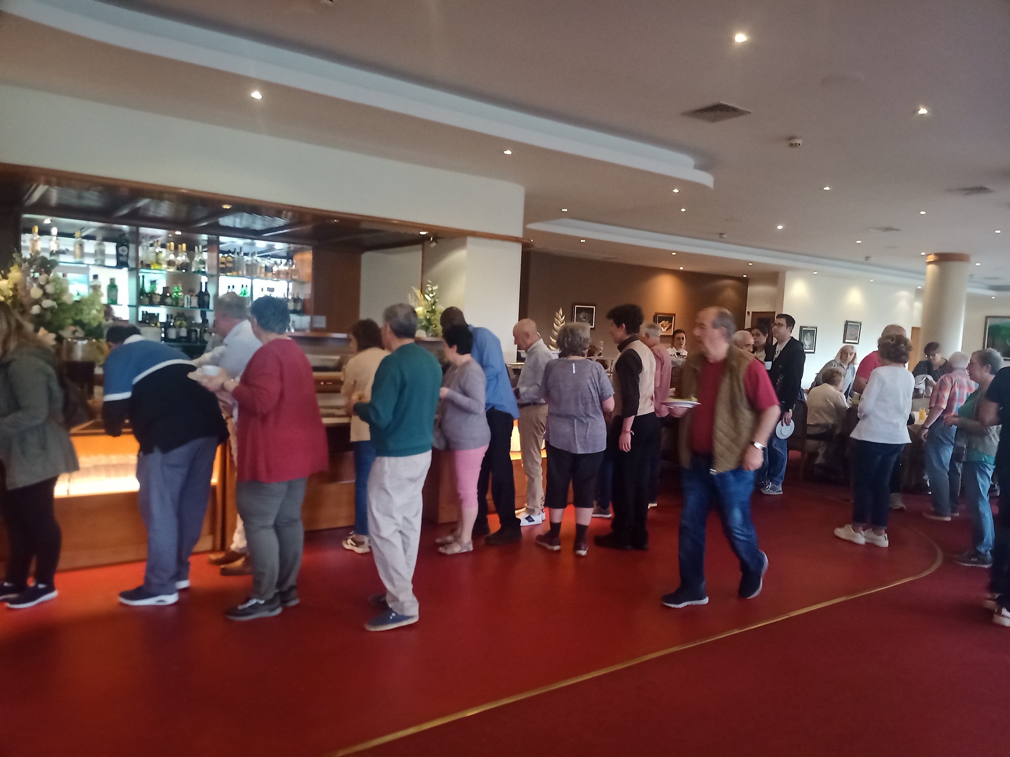 At breakfast, we made it to the dining room at -1, but not before a nice visit to 7. We found the dining room to be huge, and buzzing with people, no doubt related to two giant tour busses parked outside. The staff was actively restocking the buffet table, but often lost out to the ravenous horde, who could grab up a tray of pastel de nata in a flash. It was often difficult to see or get through to any of the food items, but the single coffee machine was a particular pressure point. I did get one, but abandoned any hope of a refill. I mentioned this as a further period of exploration and challenge in our tour. What I mean in this case is that Dodie might say "I think I saw some yogurt, do you want to try to snag some?" "Ok, I'll explore, and accept the challenge!"