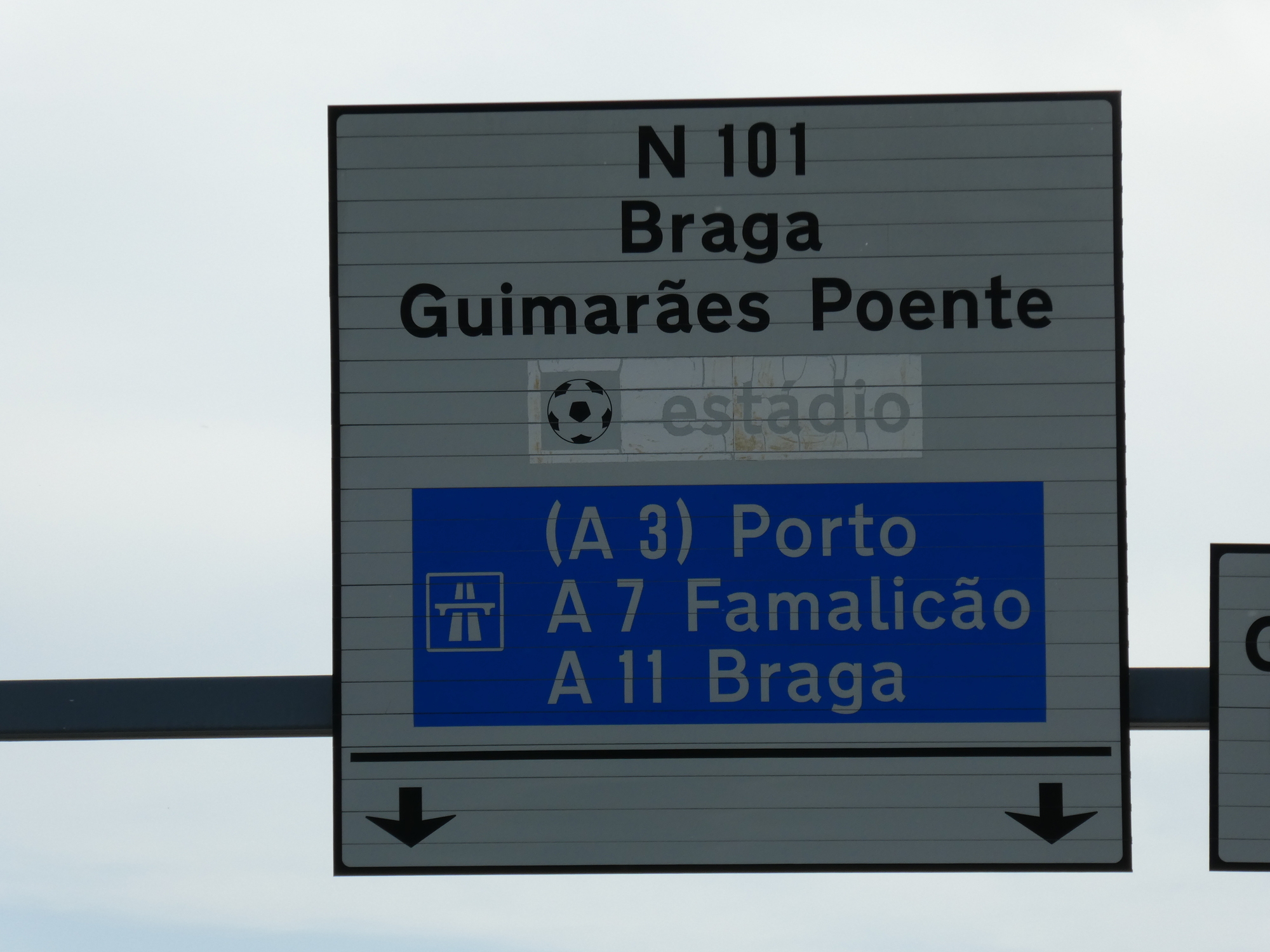 As we drew within 10 km of Guimaraes, we were looking at our track and trying to decide whether to abandon N101 or carry on with it. N101 kept having seductive signs pointing to Guimaraes in the roundabouts. These signs, it must be said, were the mundane black and white kind, none of the fluorescent green that might signify a coming super highway.