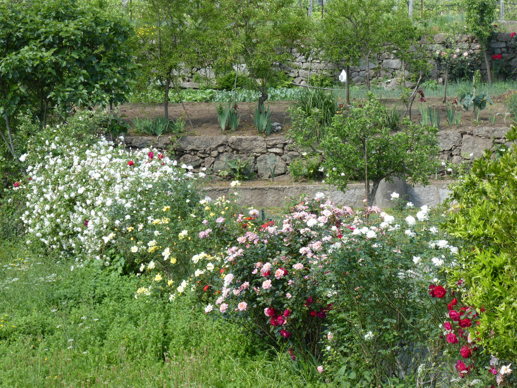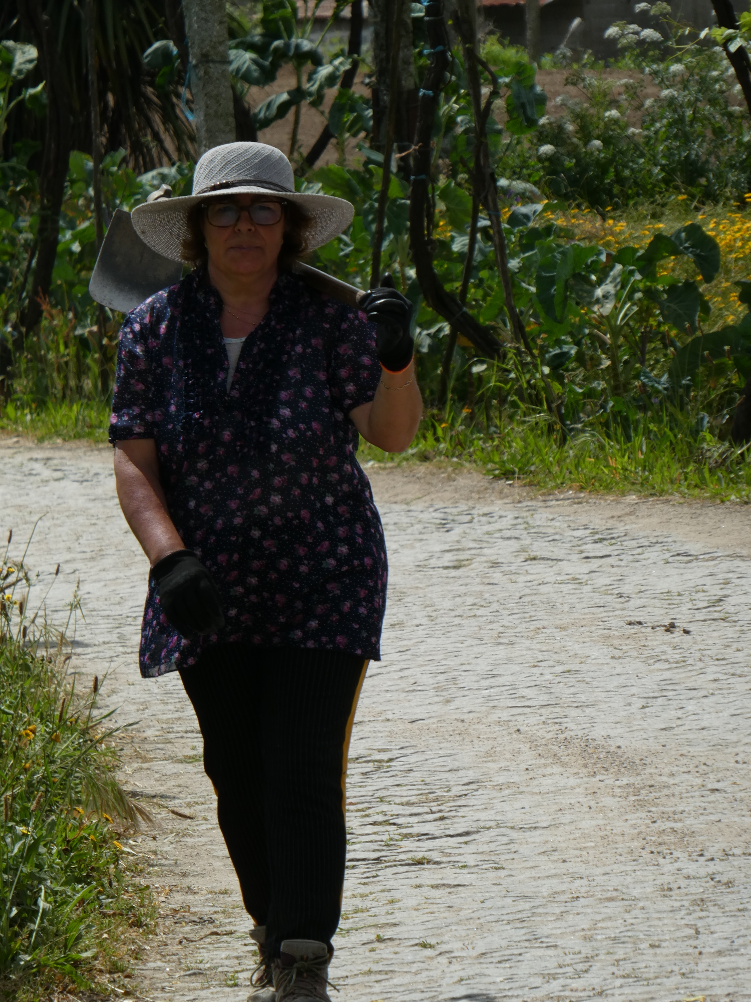 I was at this point, perhaps 10 km out of Guimaraes, that Google's promise of a less trafficked route began to be fulfilled. We entered what must have been a sort of suburban area, where we much appreciated the flowers, notably roses of many colours growing strongly all over the place. There we also lots of a form of brassica that we have seen over all of the north, but which puzzles us. The plants grow tall, and have no recognizable broccoli or cauliflower components. Do the people grow these just for the green leaves?