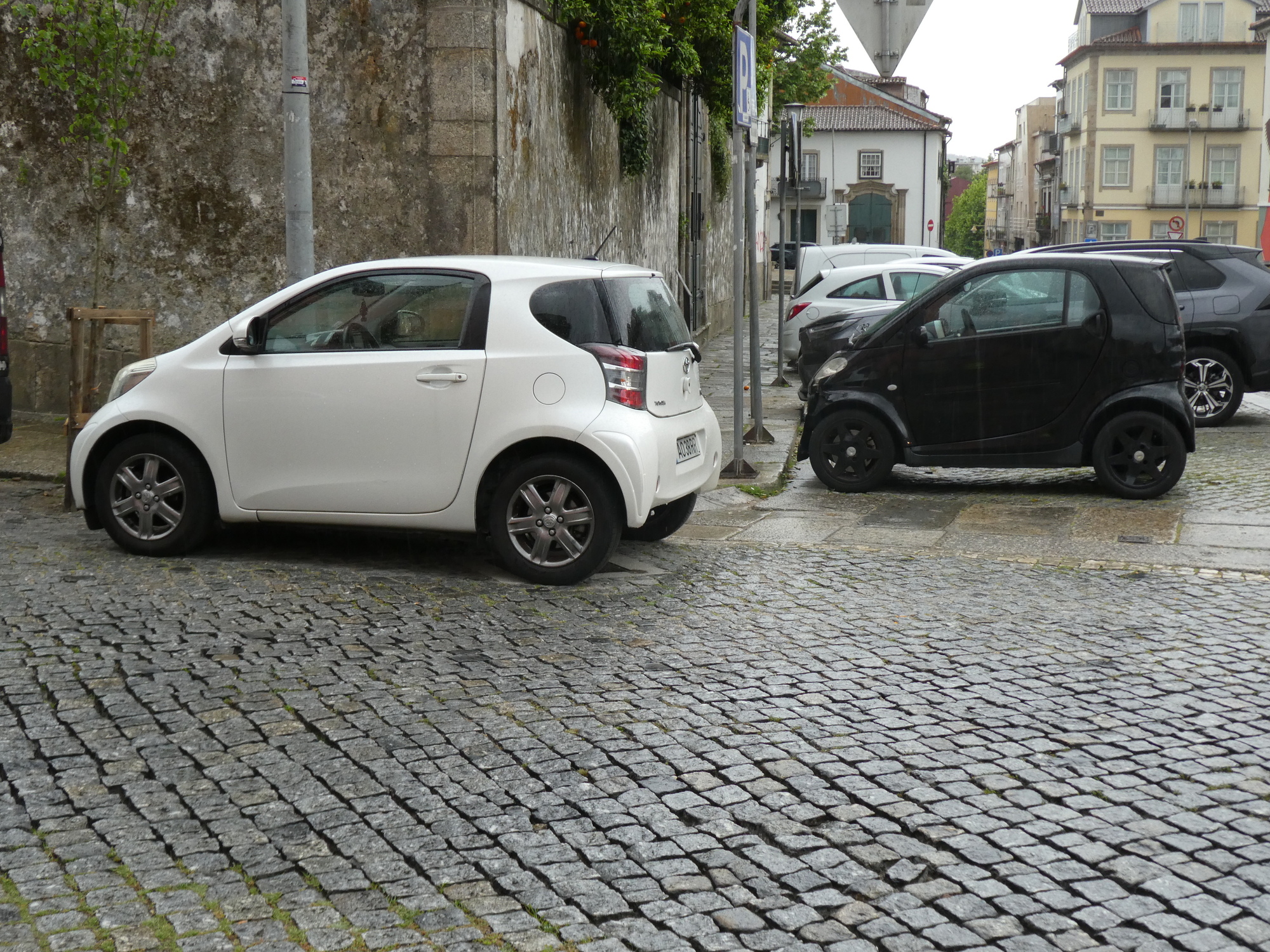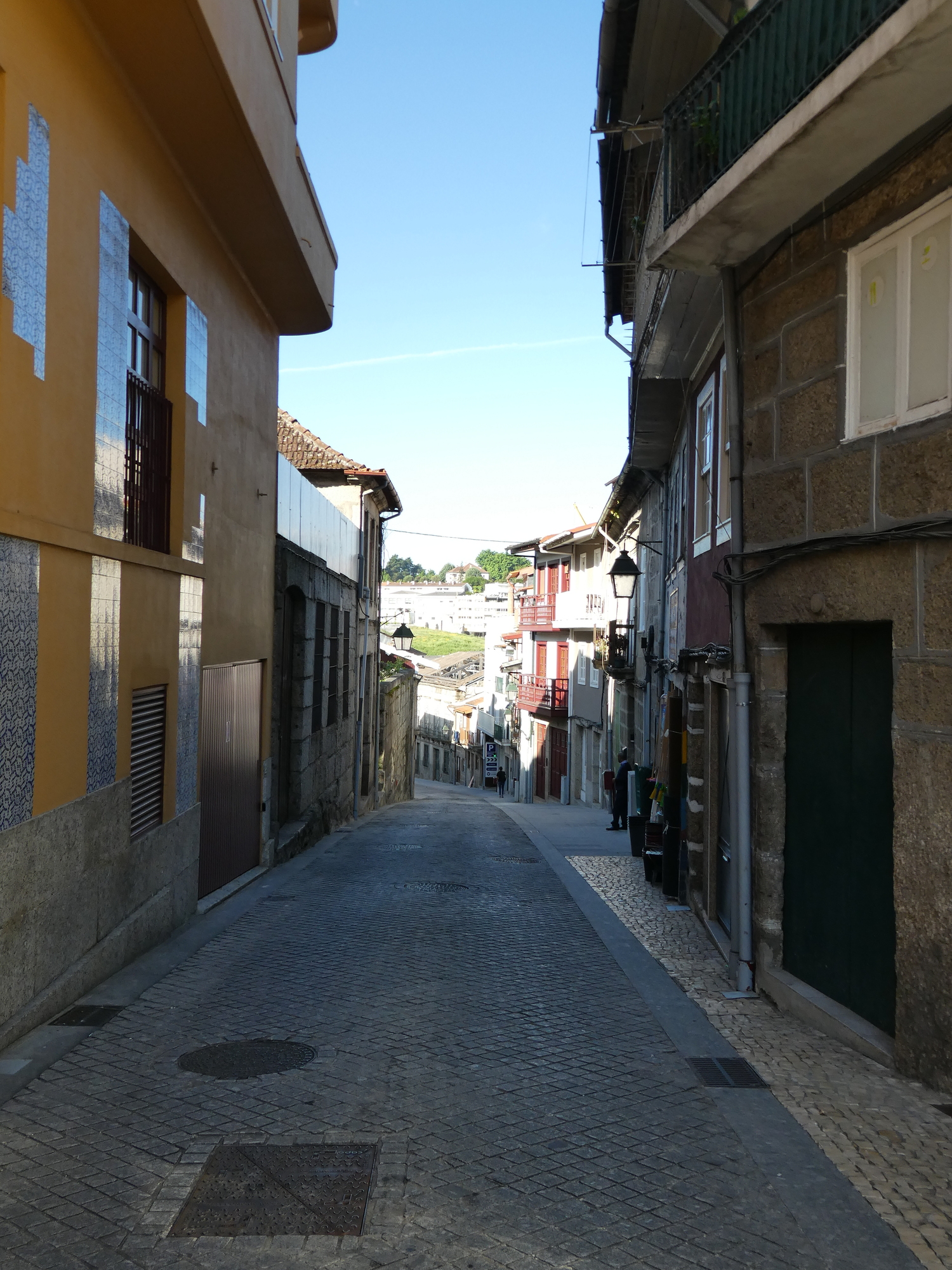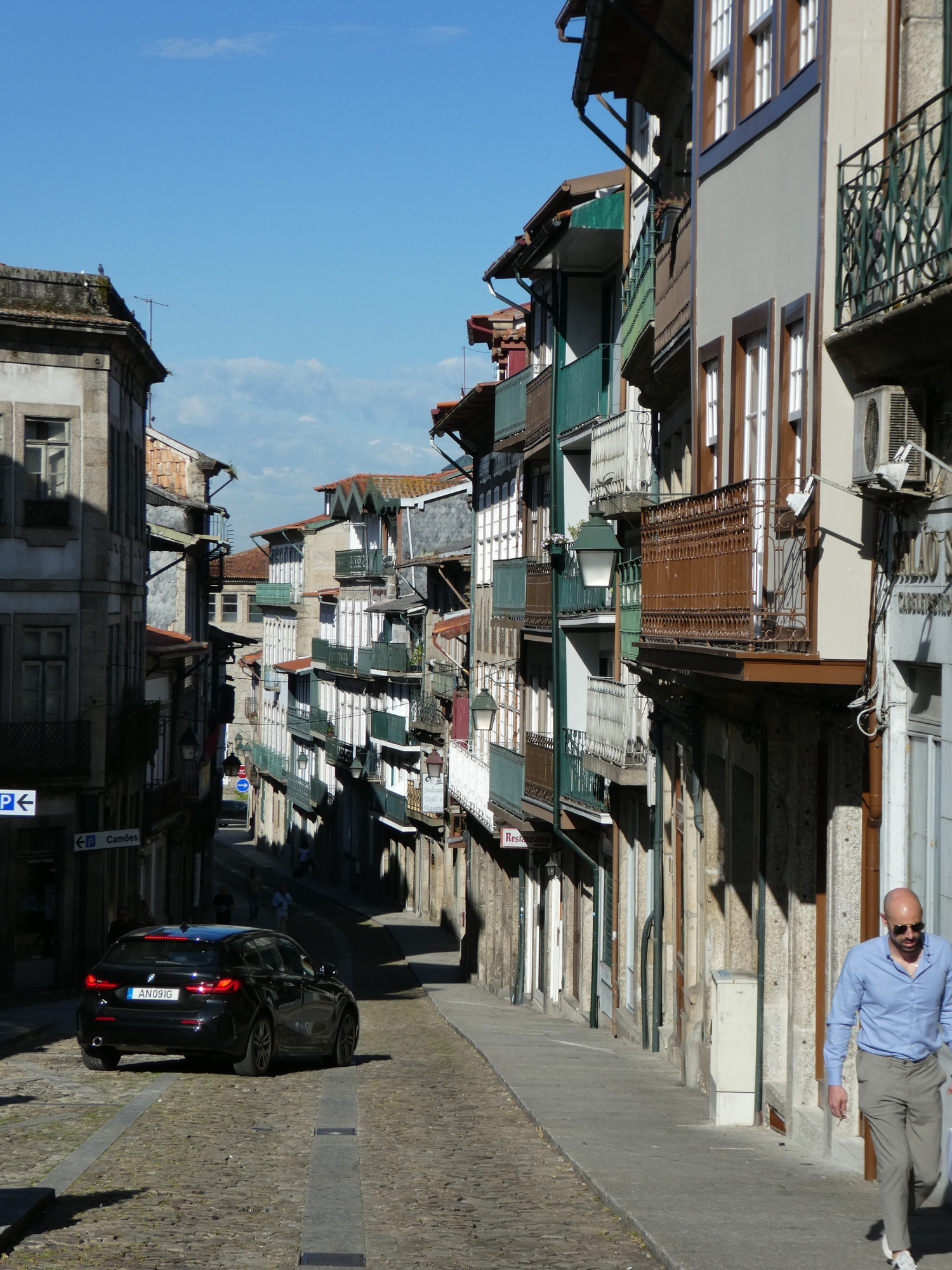 Guimaraes has a very nice historical centre, one we might have toured around a bit more, had we not felt so beat up getting in there. We woud like to think that we are not always grumpy, so that when something does bug us, it might be something of a real phenomenon, that others would also recognize. It was like that this morning too, as both of us noticed the constant flow of cars trundling along the cobbled streets of the old town. Cars moving like that are noisy, and they also shut down cycling on the street, or crossing, except at crosswalks.