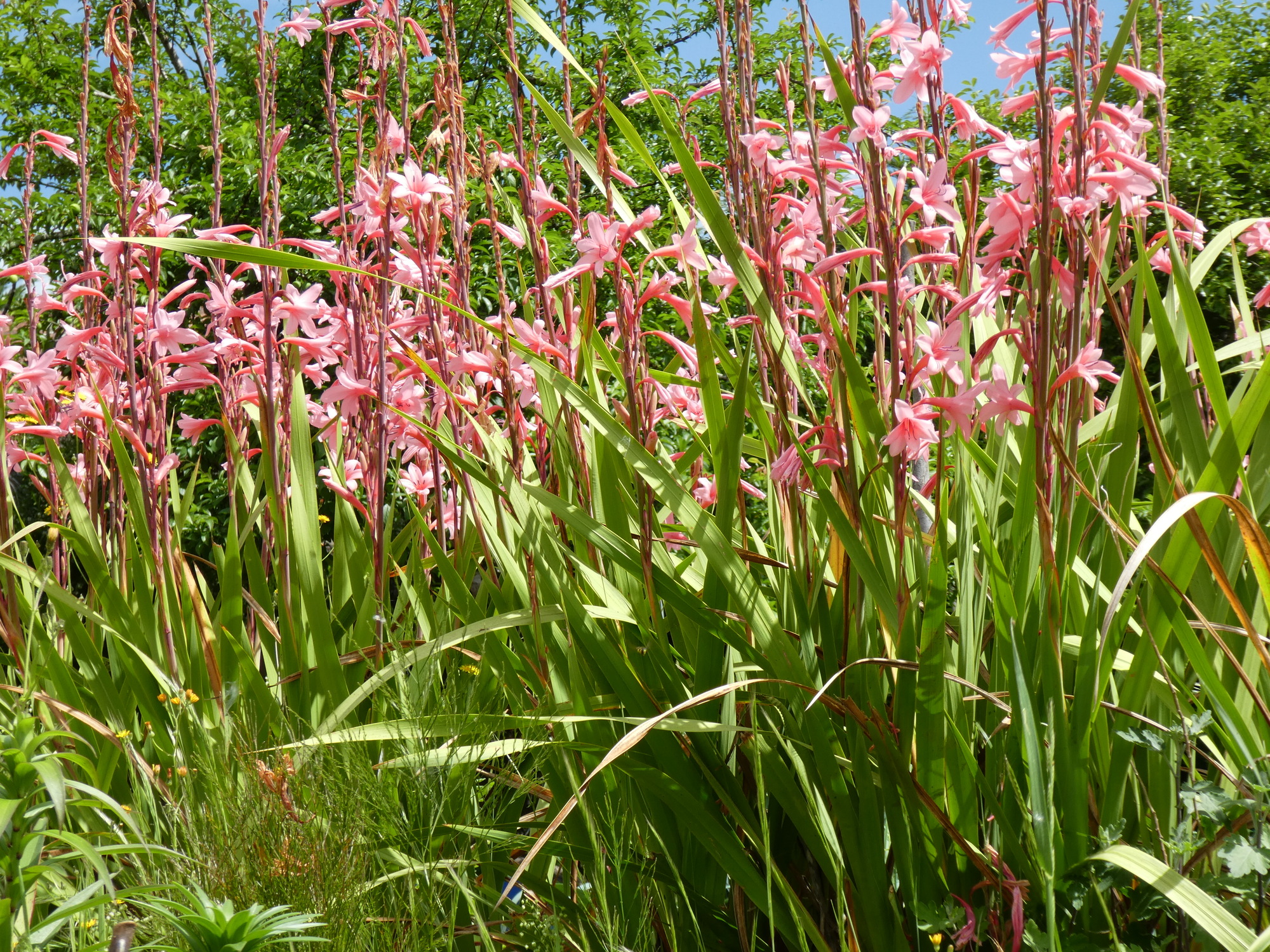 They have multiple flowers on a stalk like gladiolus, but the blooms are radially symmetrical like regular lilies, which are bilaterally symmetrical. Wikipedia lacked anything that fit all those attributes.