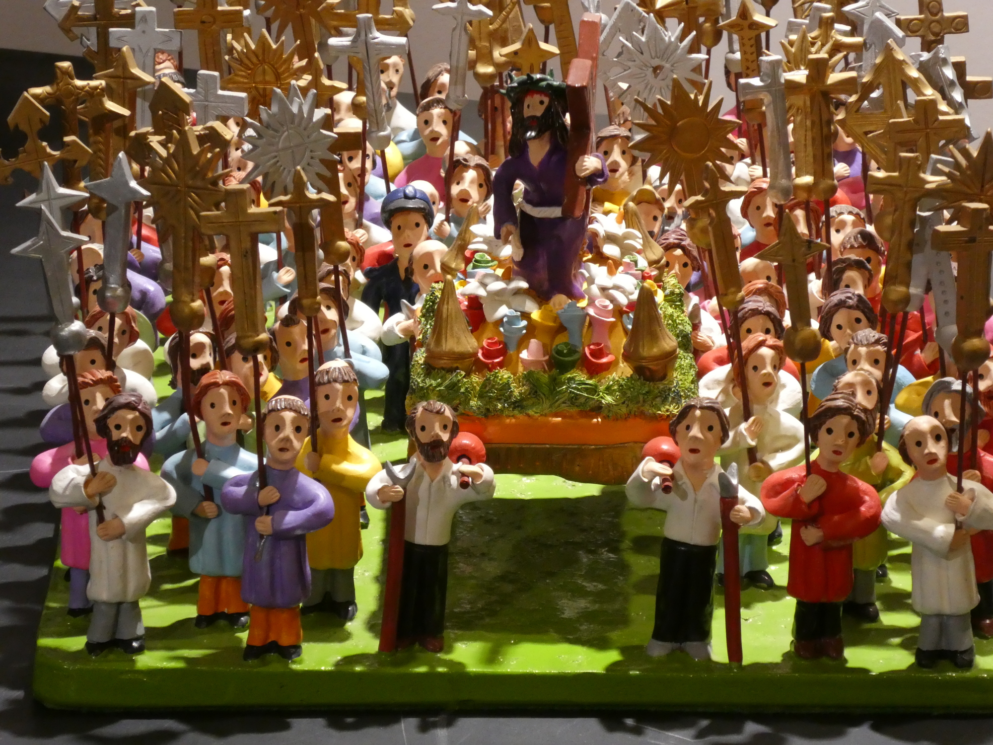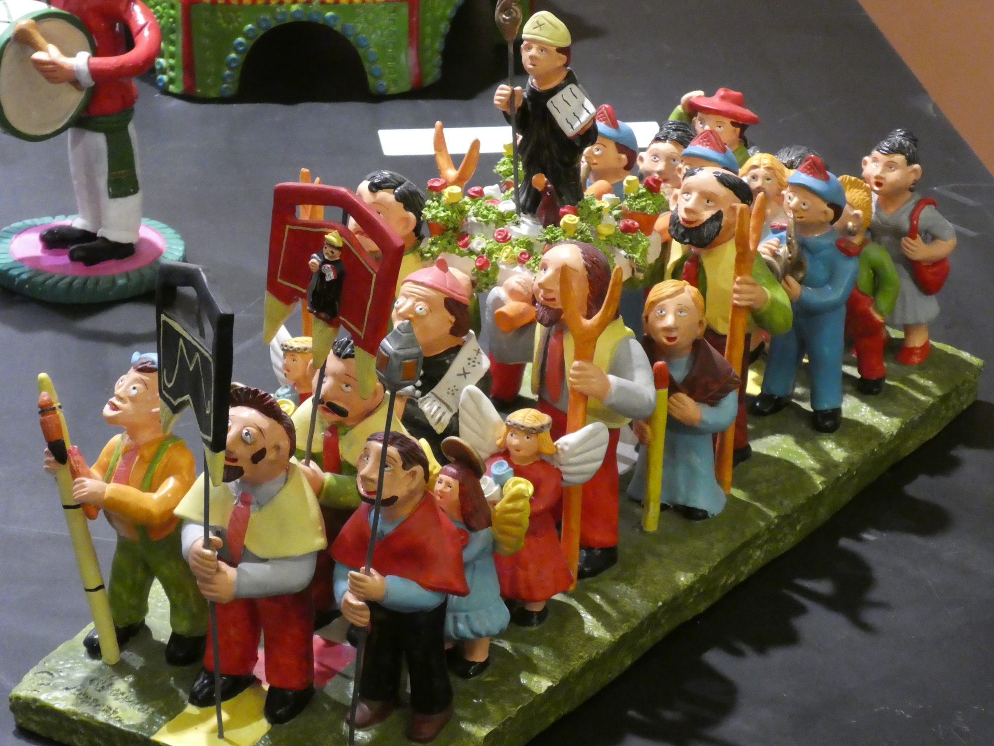 We left the basilica and strolled briefly down the walking street it heads up. But soon we entered the town tower, called the Porta Nova Tower, which had been part of the defensive wall system. Now it was devoted to extensive displays of figurines by Barcelos artists.