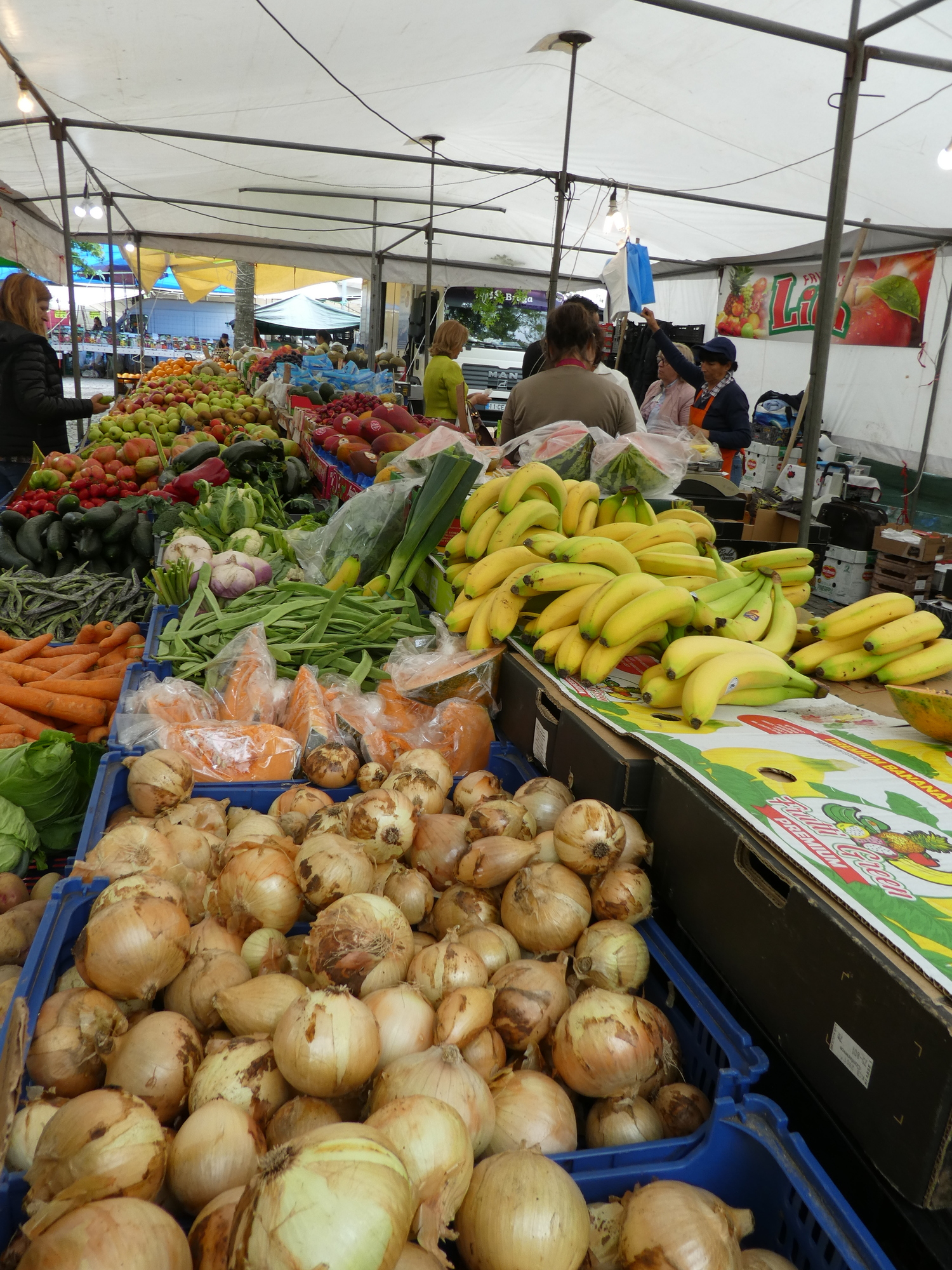 And wow, now we had a pretty big mainly veggie market. Of course this also included disgusting dried cod, but also some cheese and some bacon type stuff.