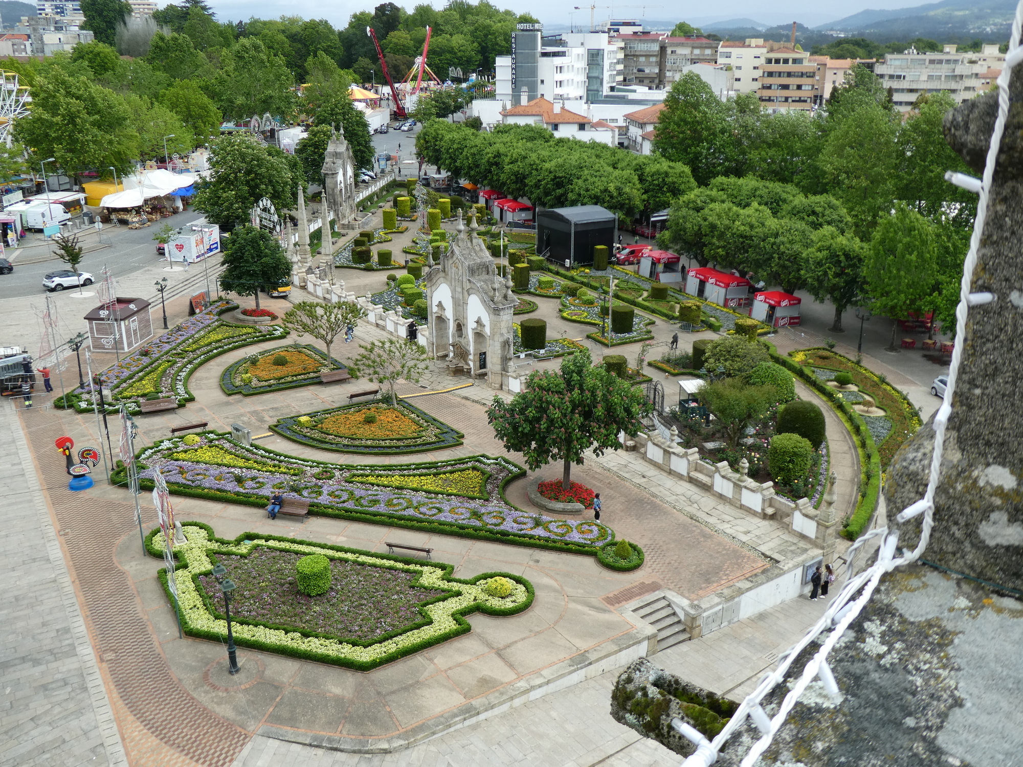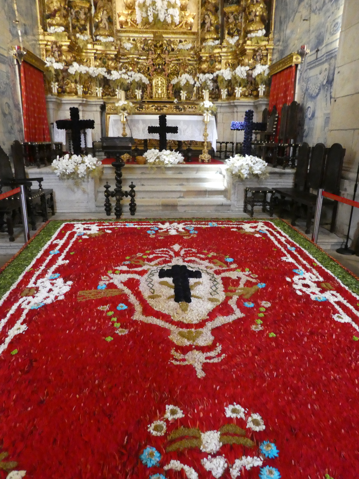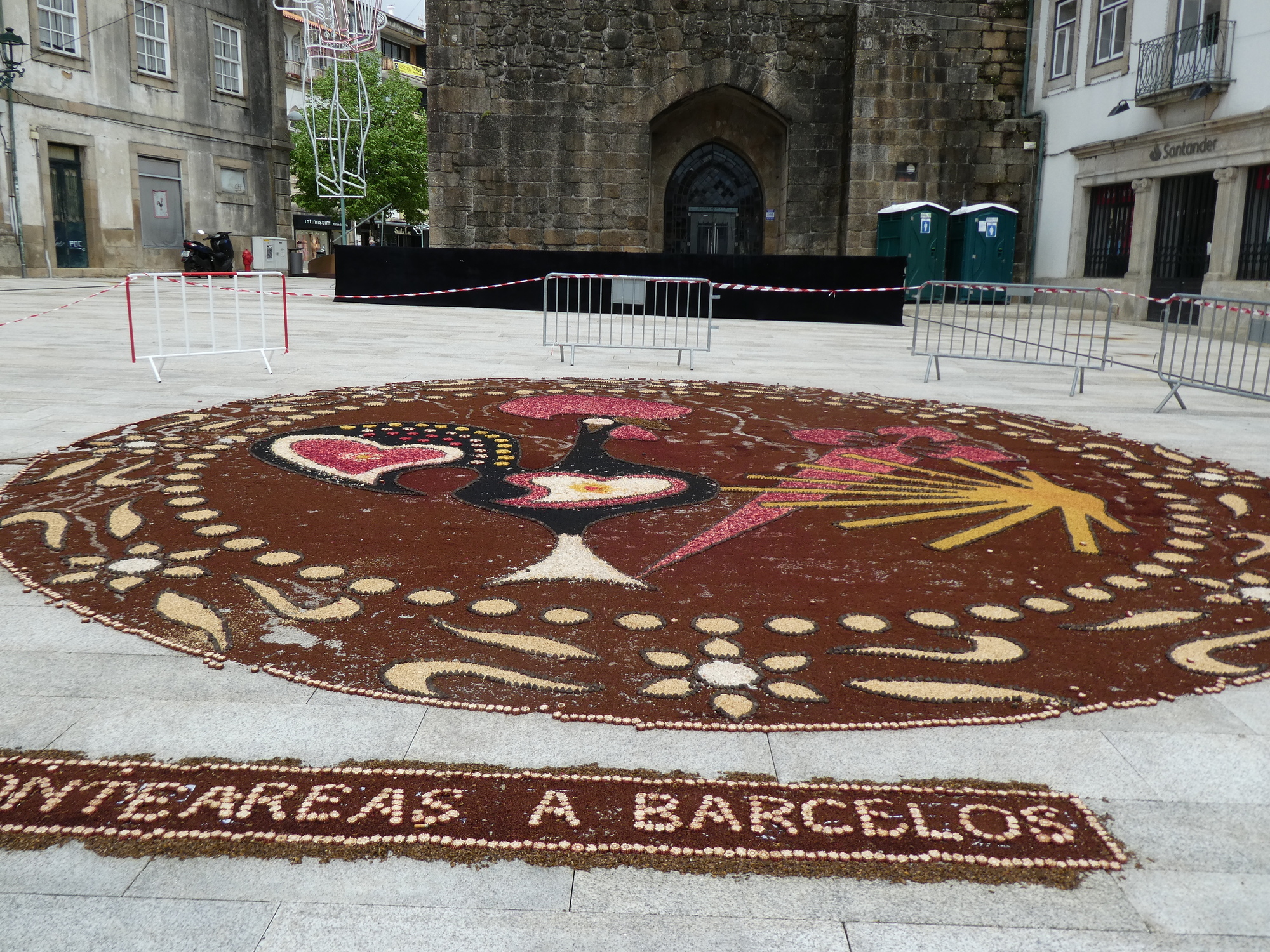 Here is that flower carpet from ground level. Note the rooster theme and the Camino shell theme. The Camino and the Rooster and the Bom Jesus are the town's main things.