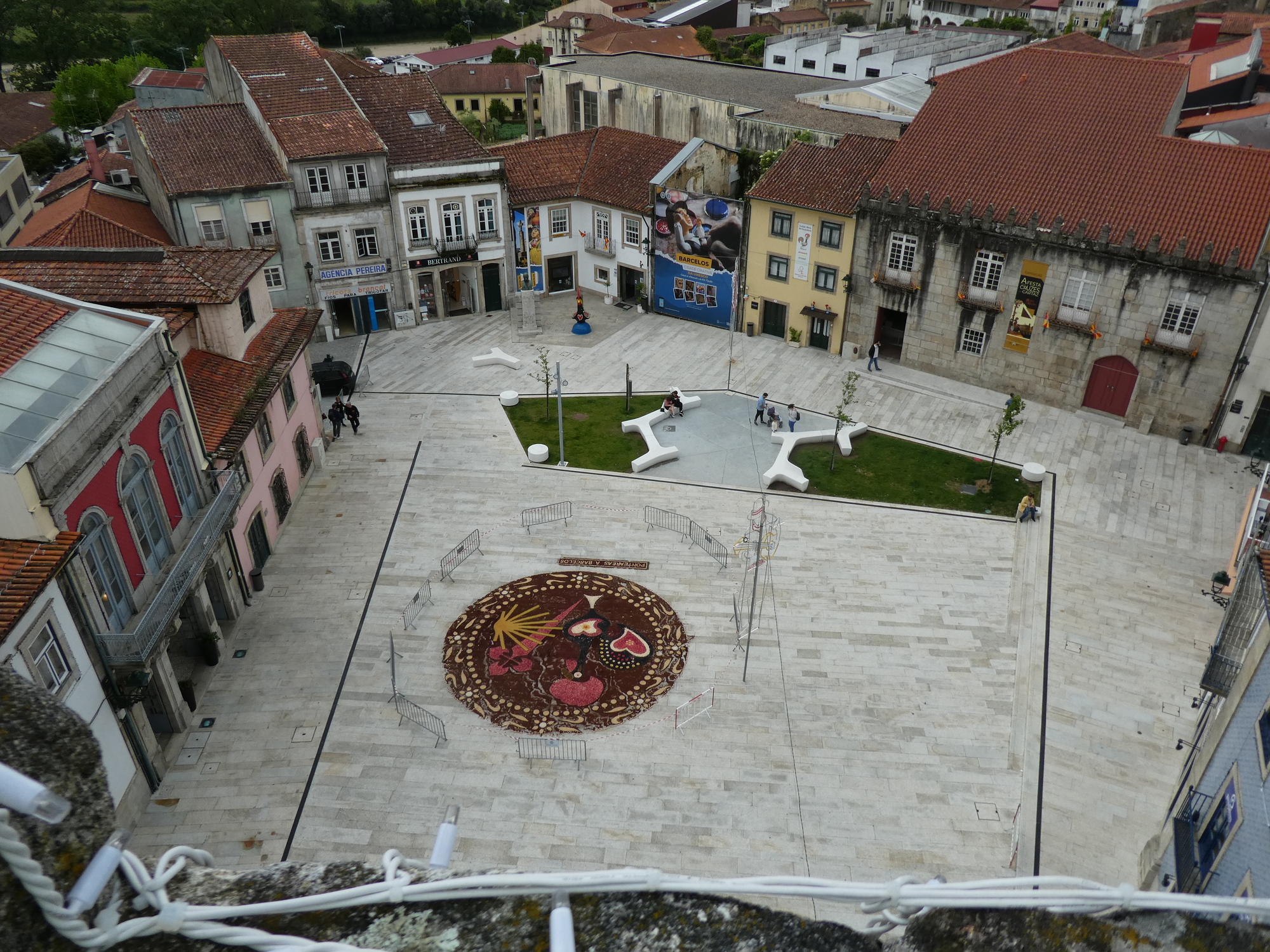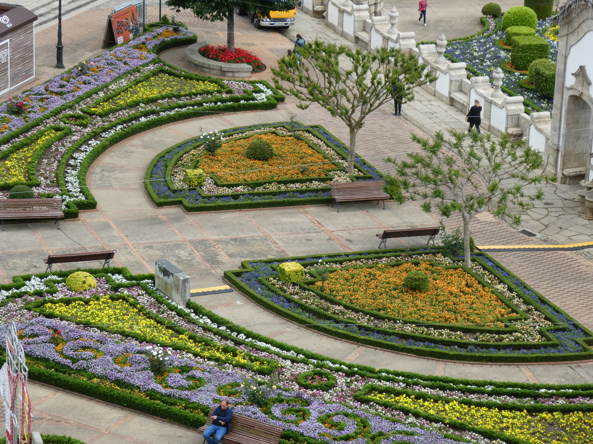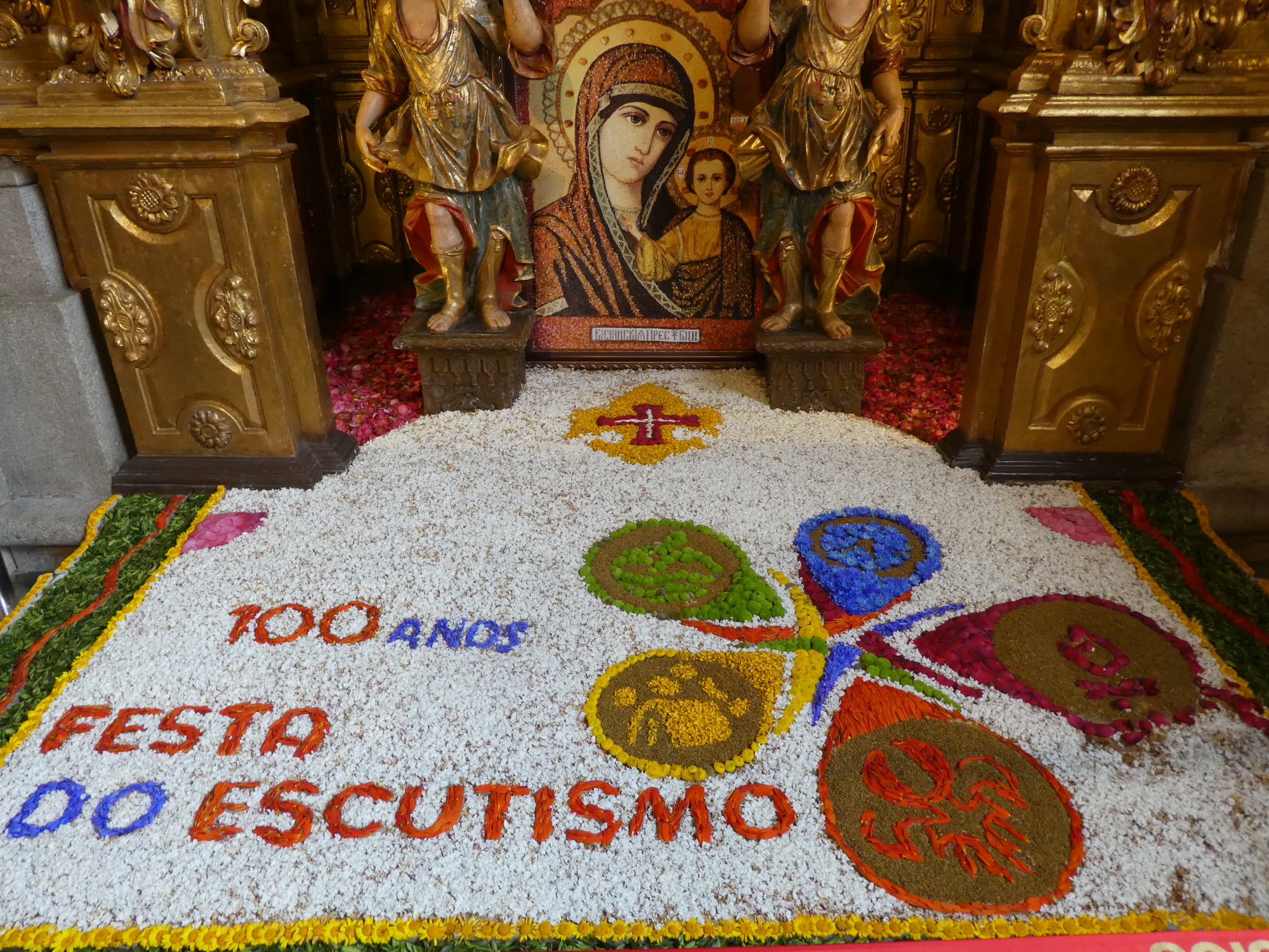 Here is that flower carpet from ground level. Note the rooster theme and the Camino shell theme. The Camino and the Rooster and the Bom Jesus are the town's main things.