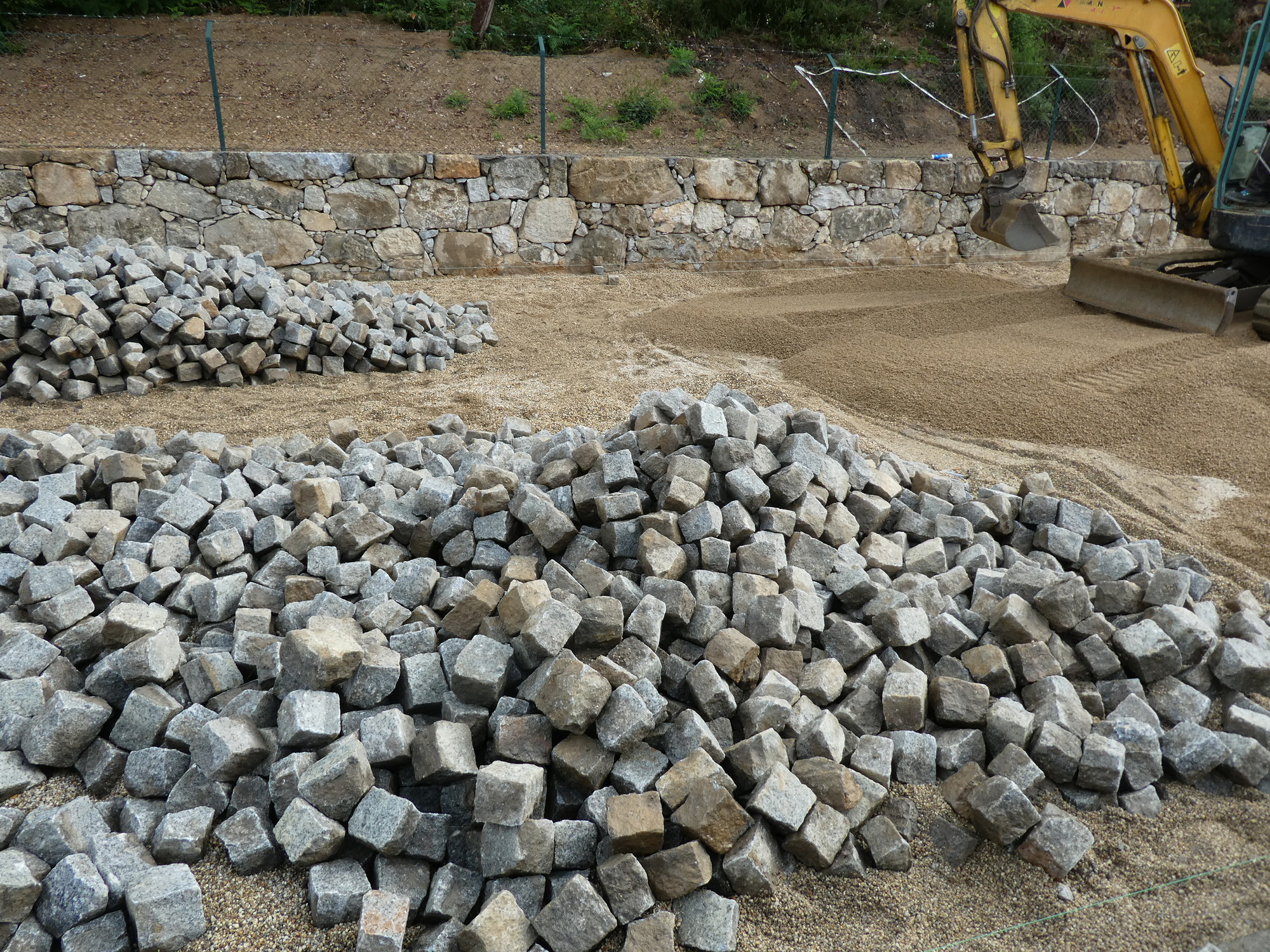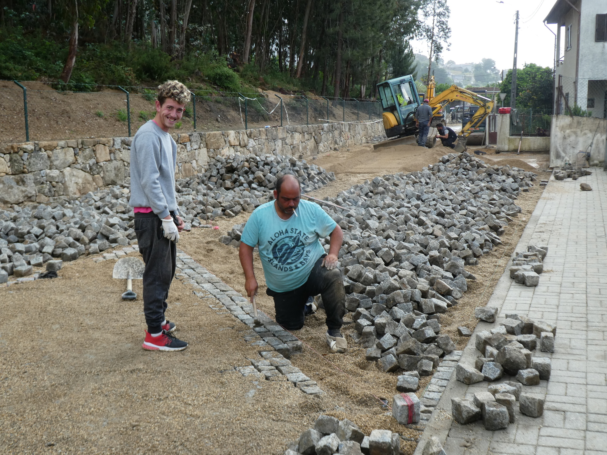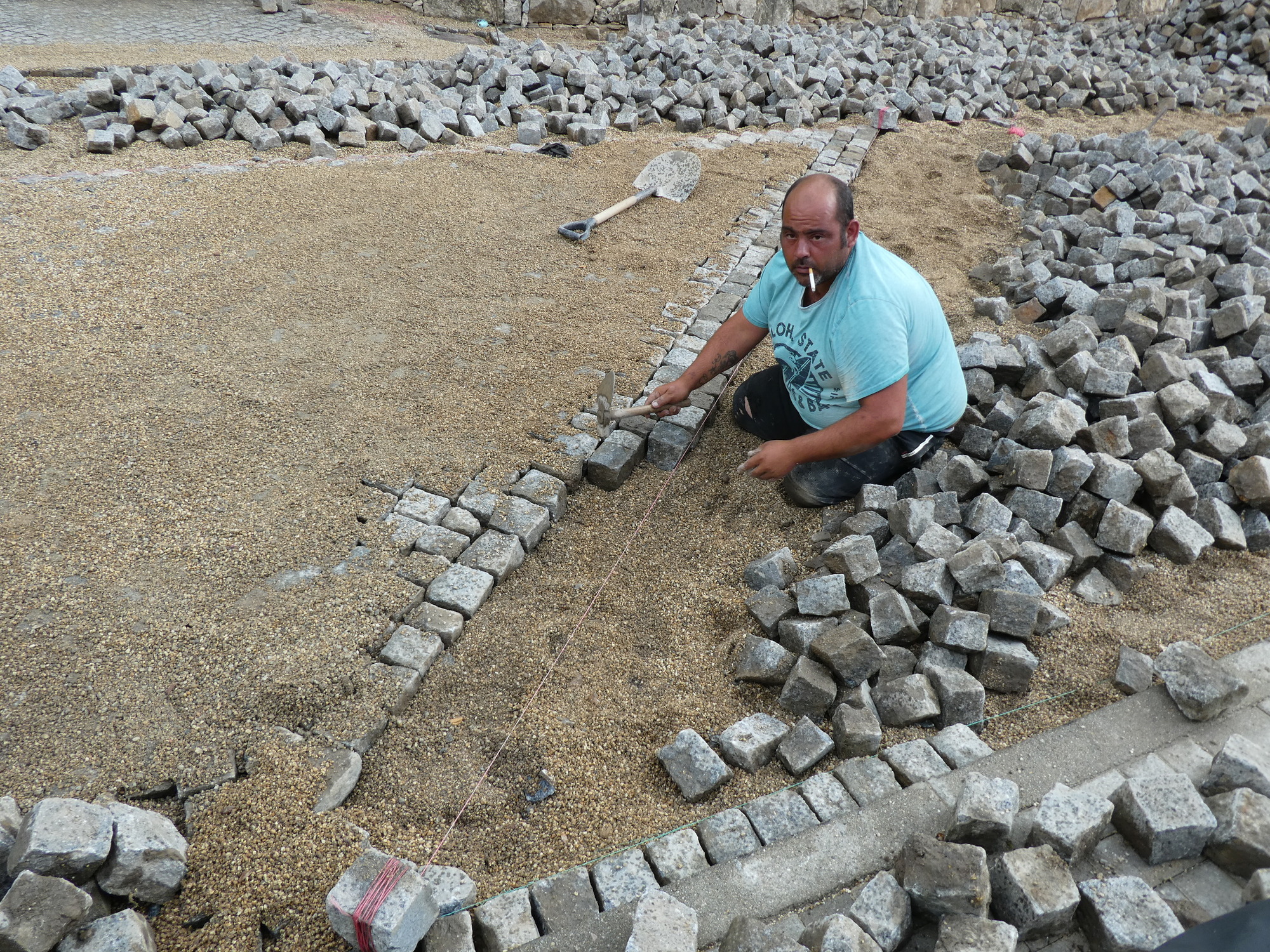 We have read of the frustration of cyclists with the extensive use of cobbles for the roads in northern Portugal towns, and even between towns. We feel that too, particularly with the small wheels and no shock absorbers. But narrow roads with no shoulders and moderate traffic are even more of a consideration. So it was that we looked at three possible routes from Braga to Barcelos, and chose one that we hoped would have less traffic, but where Street View (commonly known to us as Little Yellow Man) revealed a lot of cobbles. Our thinking was affected by the weather forecast too, because if the rain that had been falling in the night continued, the cobbles might be very slippery. In any event, we had to start with the road (N103) and could decide on cobbles when the turnoff came.