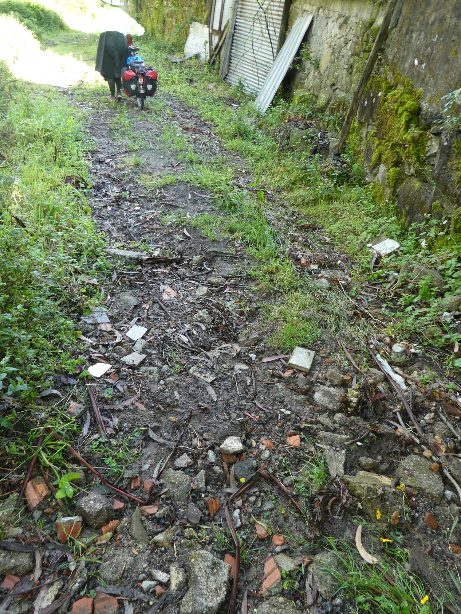 When we were working with the Google Little Yellow Man, there were some spots on the Google recommended route where he had feared to tread. We found out why. The route turned first to dirt, then to the famous crushed or broken tiles, then rocks, then cow patties, and finally basic pasture. We felt like we were back in England, but we lacked any hapless Brits to blame!