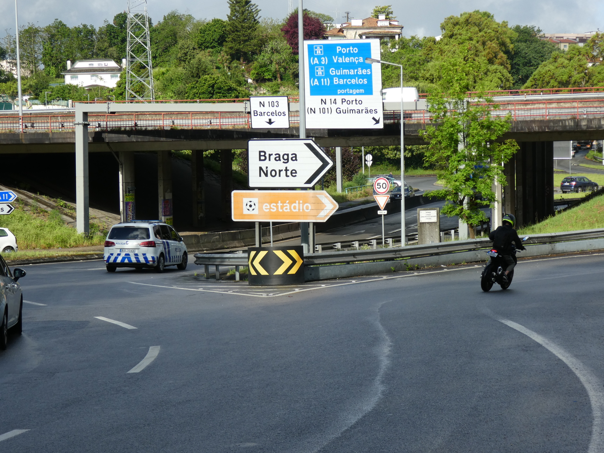 N103 is over there. Needless to say, we have to watch for cars that could aggressively turn for the Porto autovia, cutting us off.
