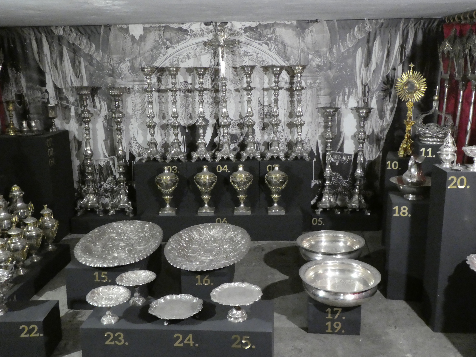 Churches accumulate all sorts of "stuff" like this valuable silverware, a collection of crucifixes, statuary, vestments, and similar "garage sale" items.
