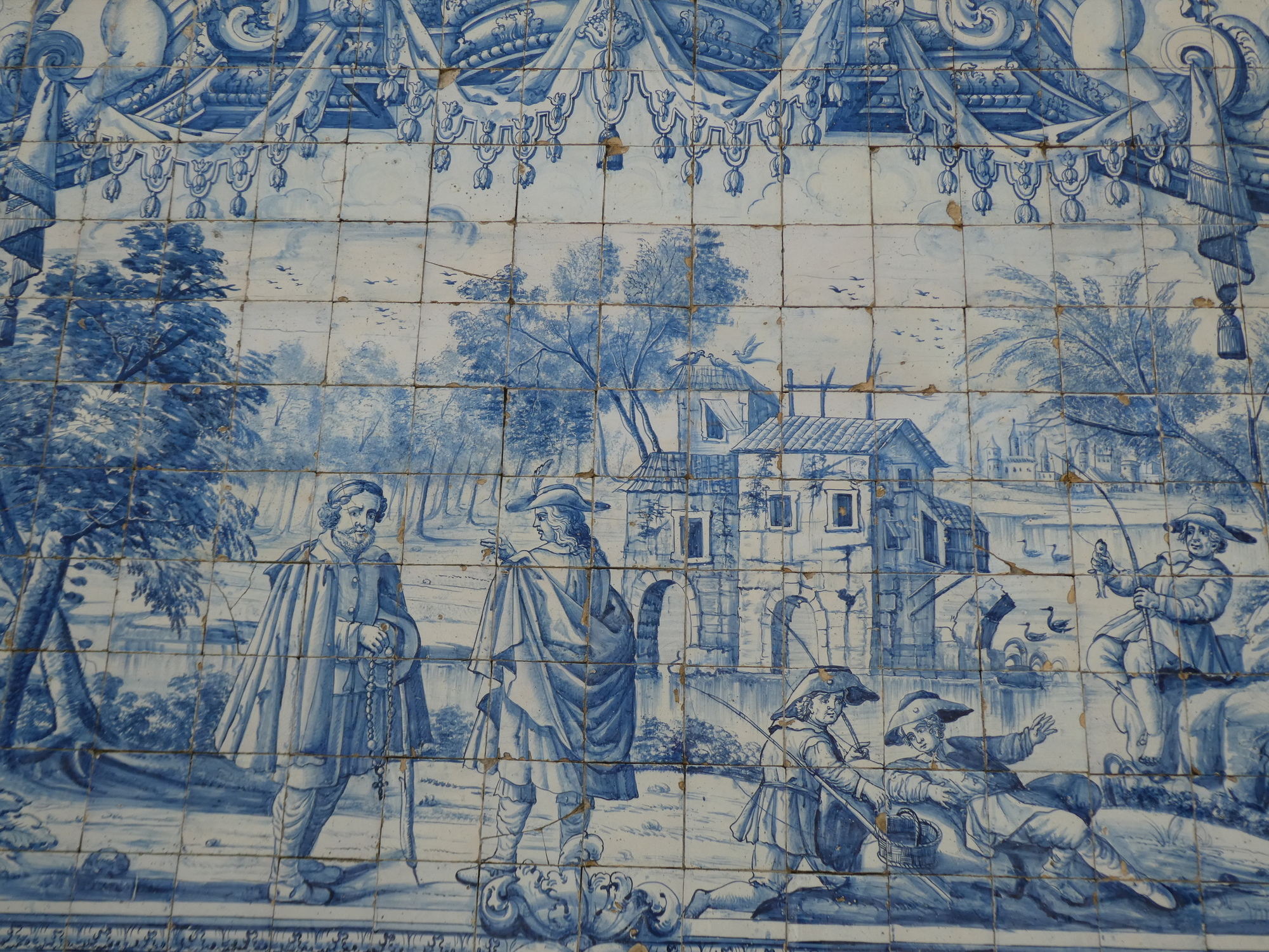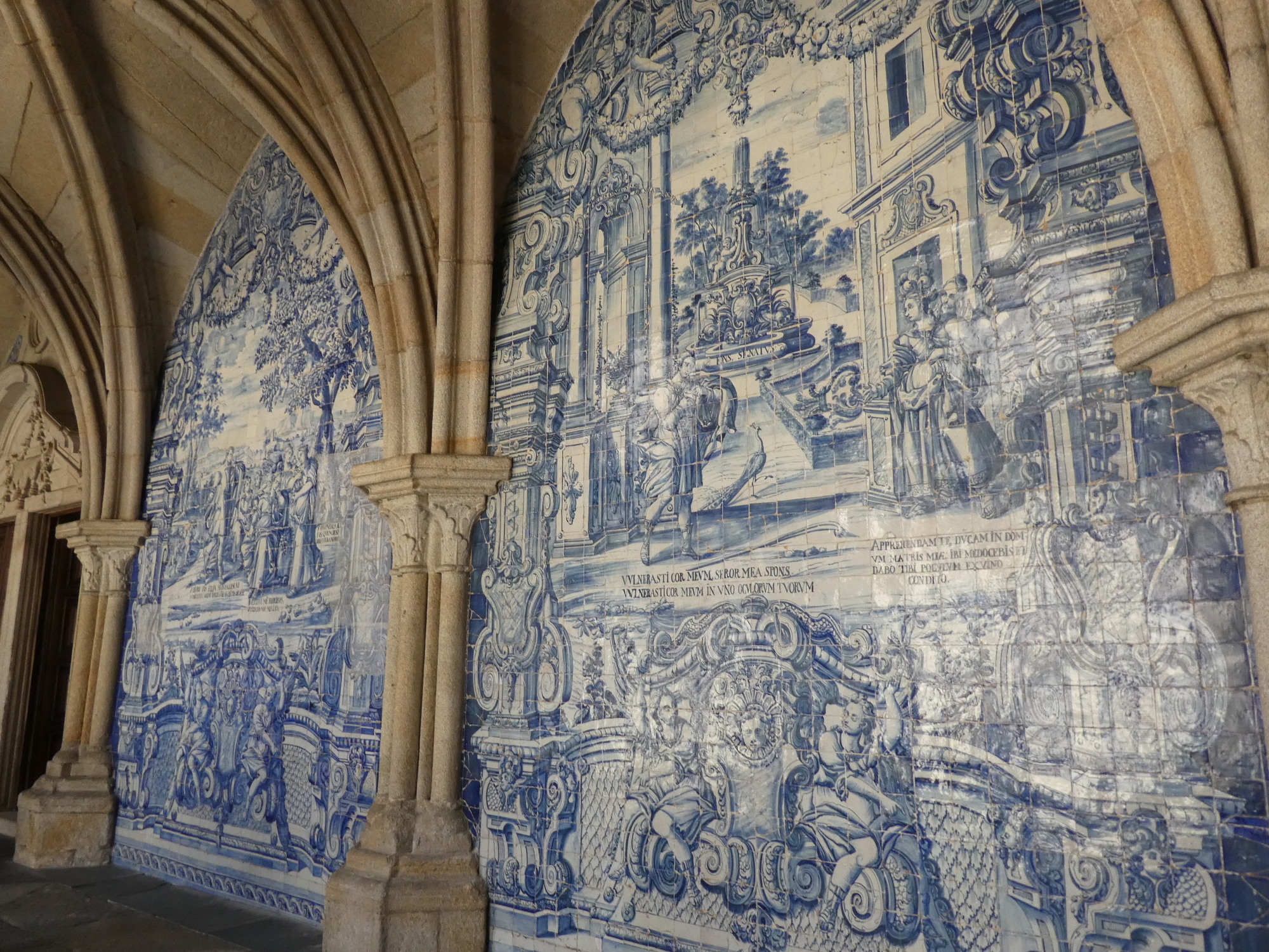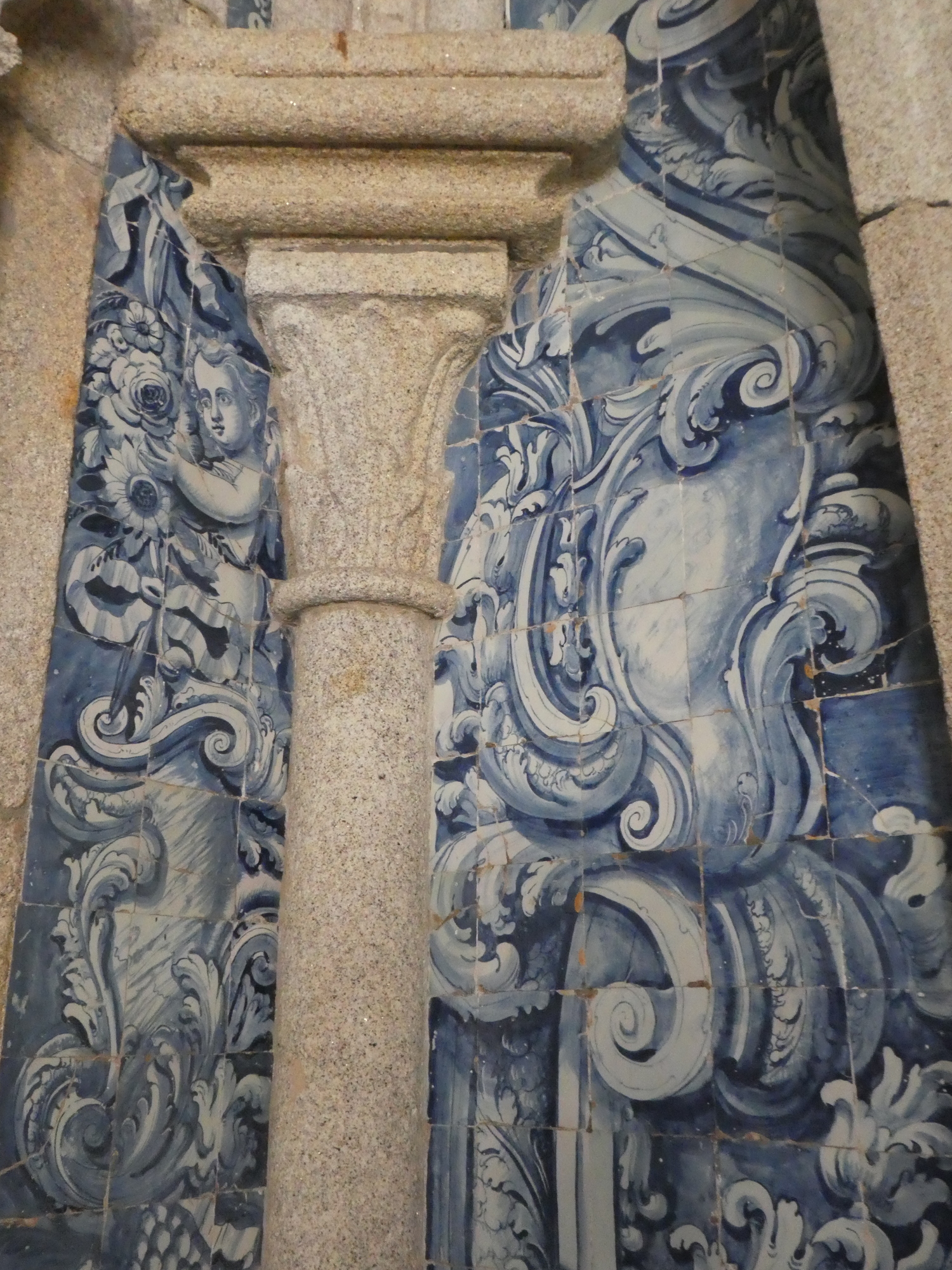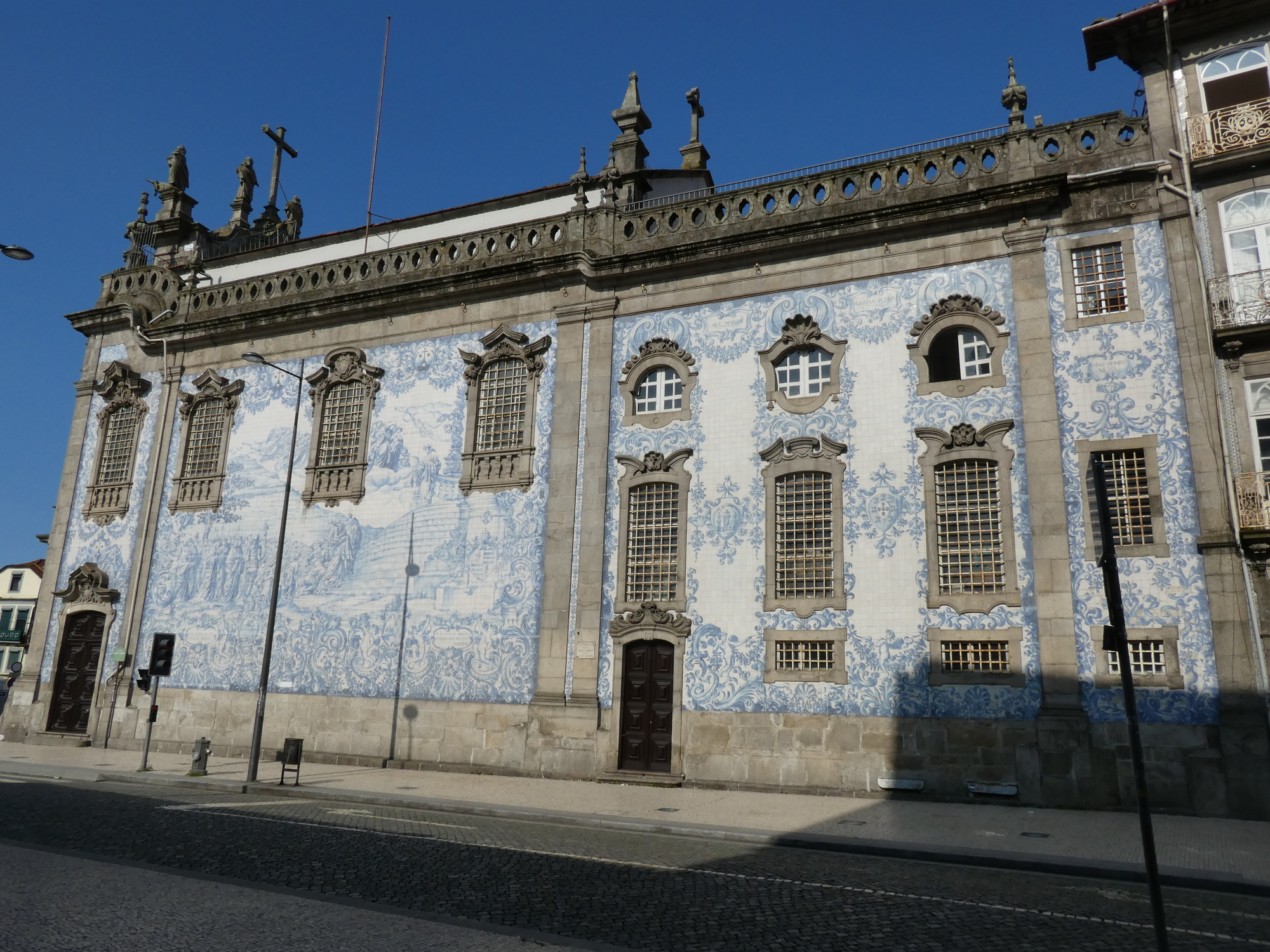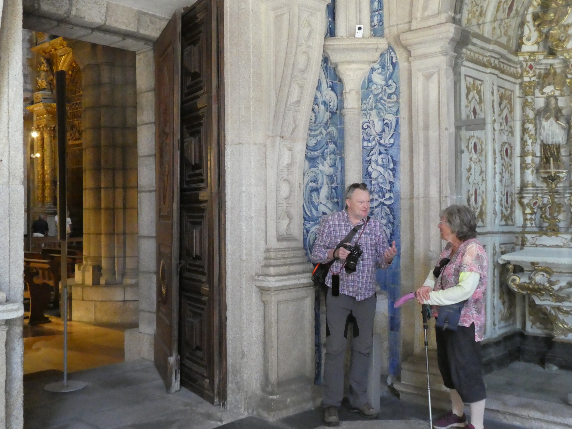 First in line for us was a church that catches your interest with its blue tile exterior and Rococo style. This church is a little confusing because it is two churches side by side, associated with the Carmelite order. They are from the 18th century, so not that old. One church might be called the Church of Carmo, and the other the Carmelite Church. I don't pretend to understand much about this, but there must have been some contention between whoever was behind these churches. The "Carmelite Priests" were opposed to the "other church", which would block their light. The churches were separated by a narrow space, which paradoxically was filled with a "hidden house", which is the width of one narrow room, but many stories high. This was later used for secret meetings. If this story sounds garbled, don't blame me, I got it from a .pdf accessed from a QR code on the wall of one of these churches or the other!