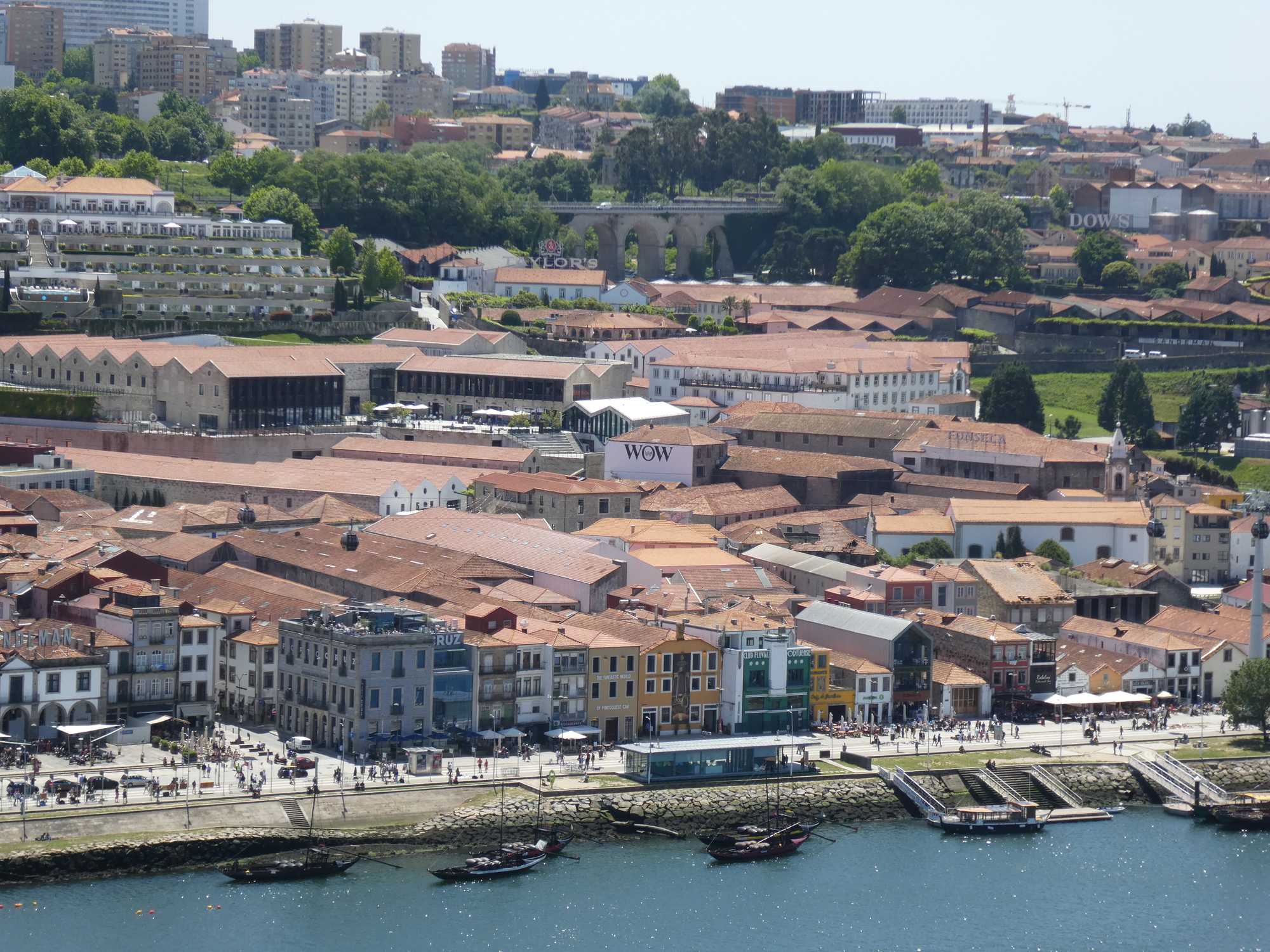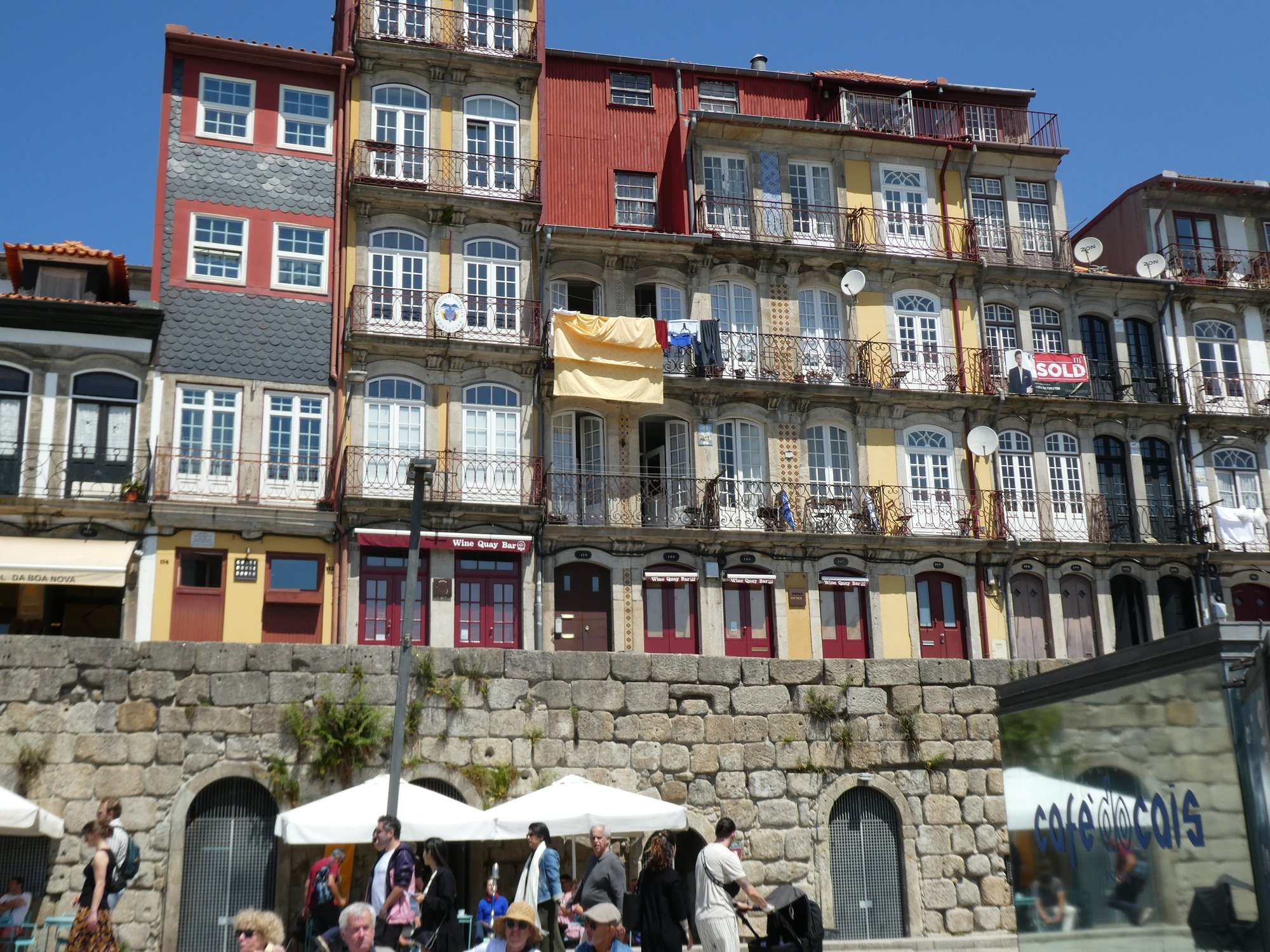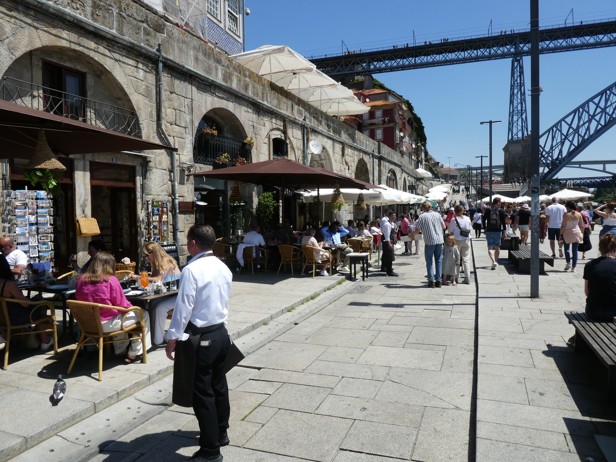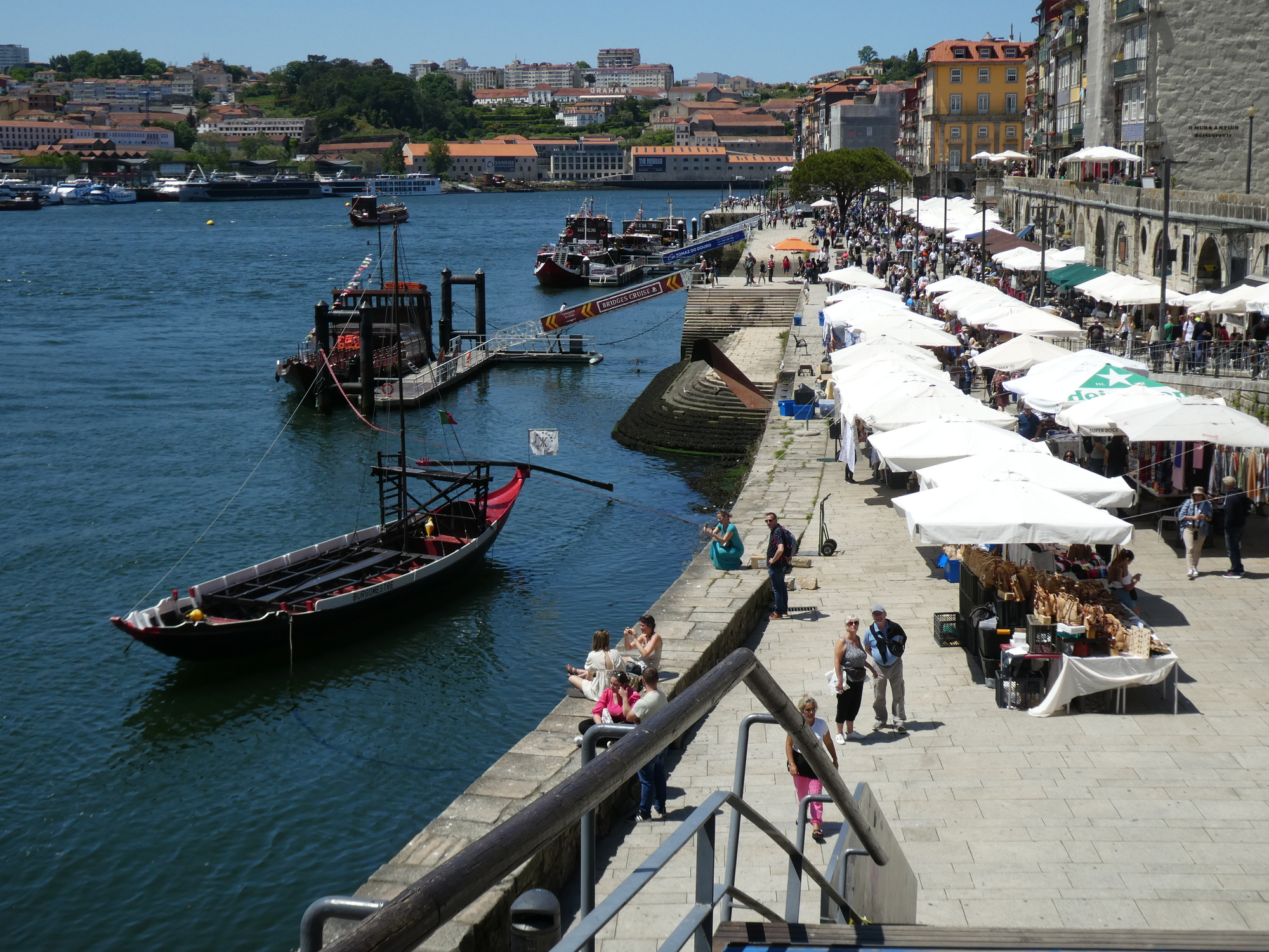 All along the riverside there are restaurants. I think when we were here when starting the tour it was cold and raining, but now people are really enjoying being here.