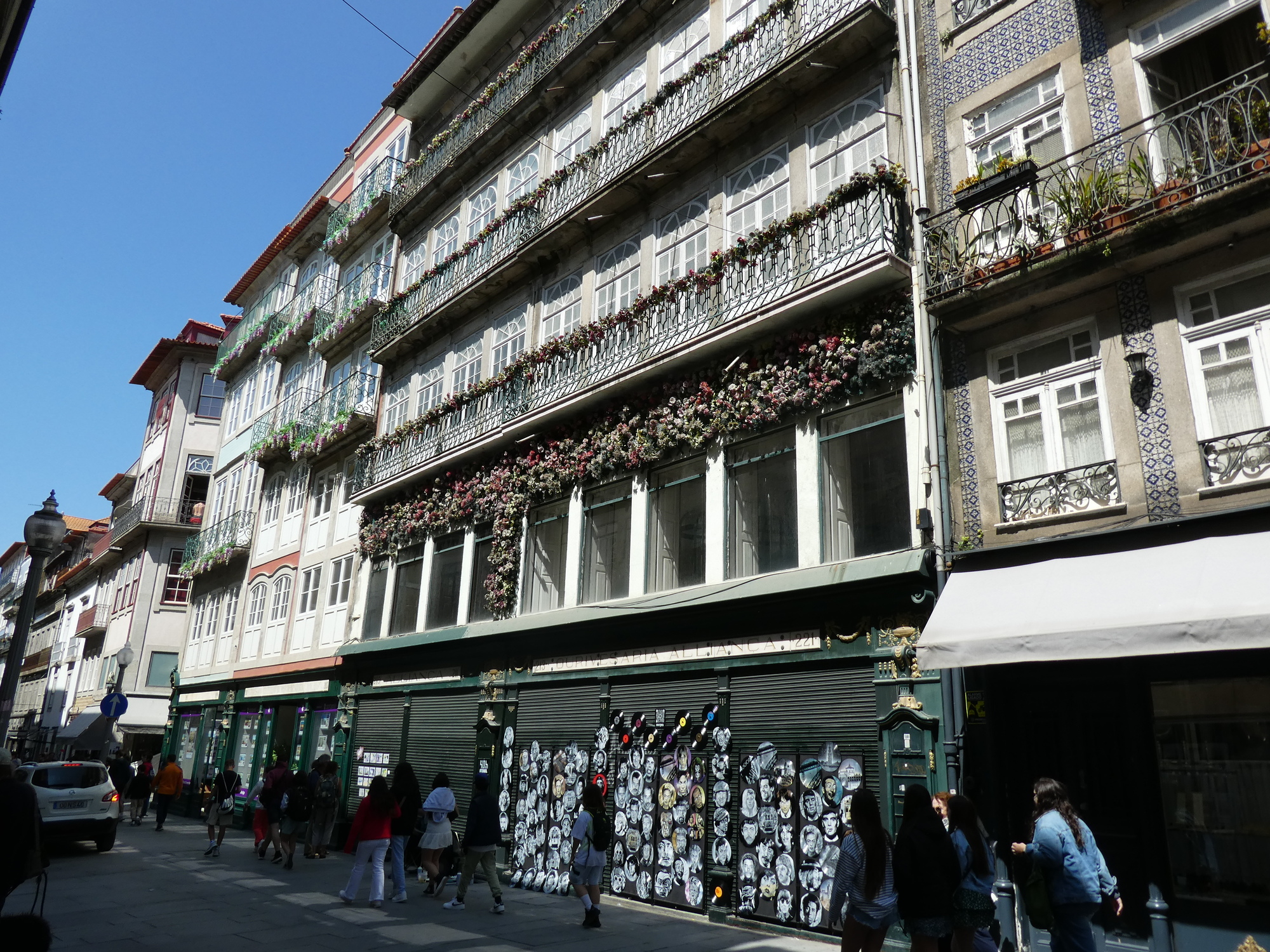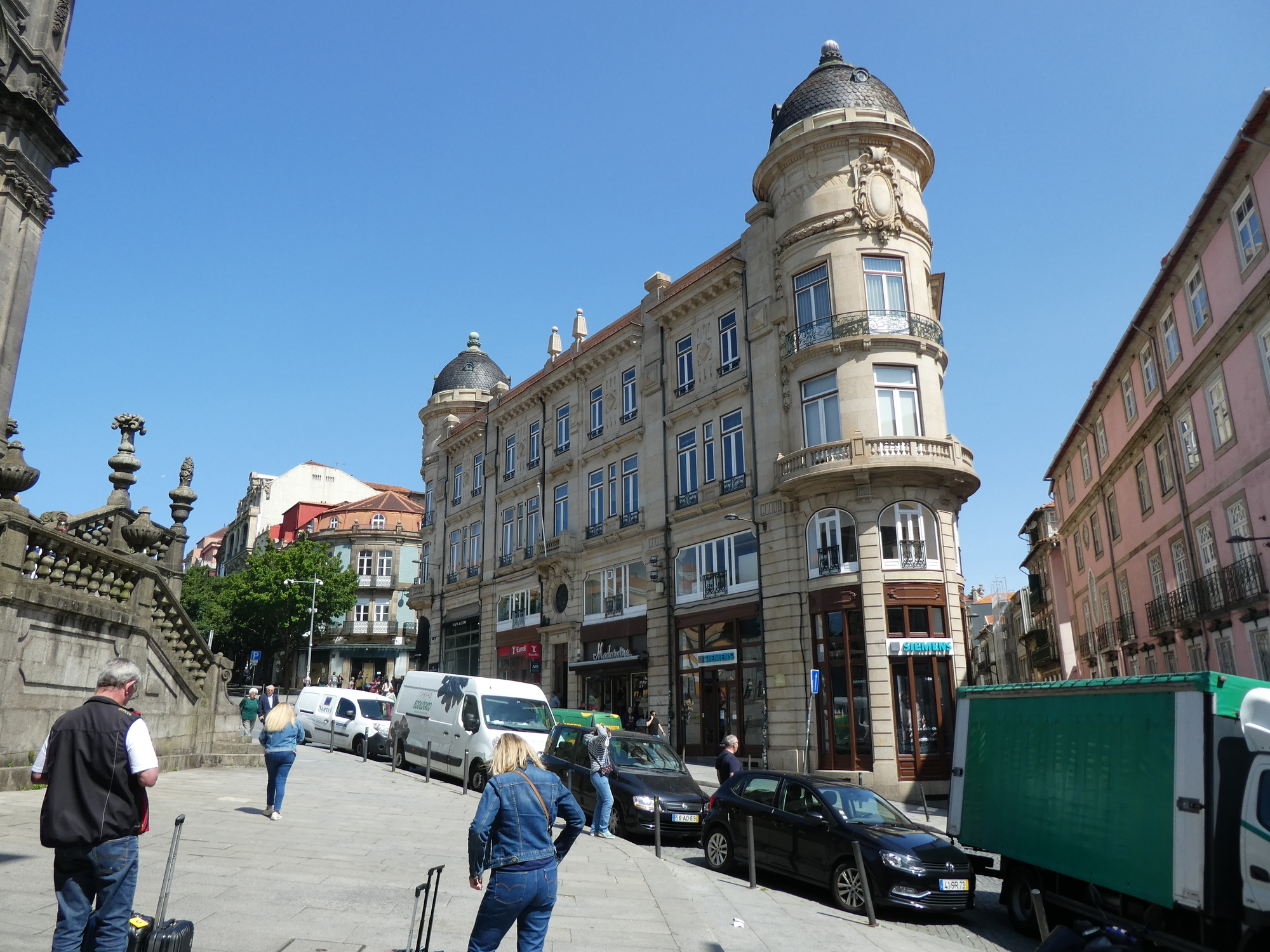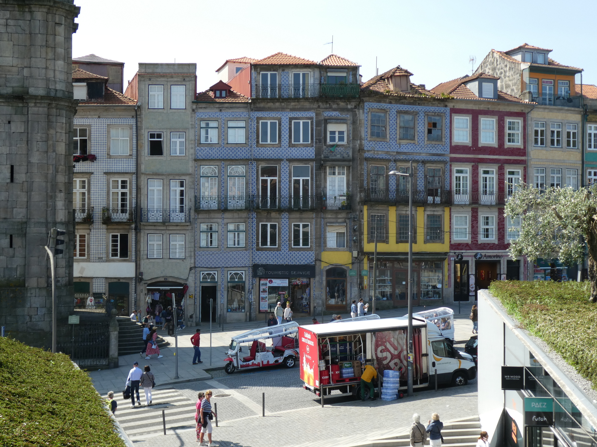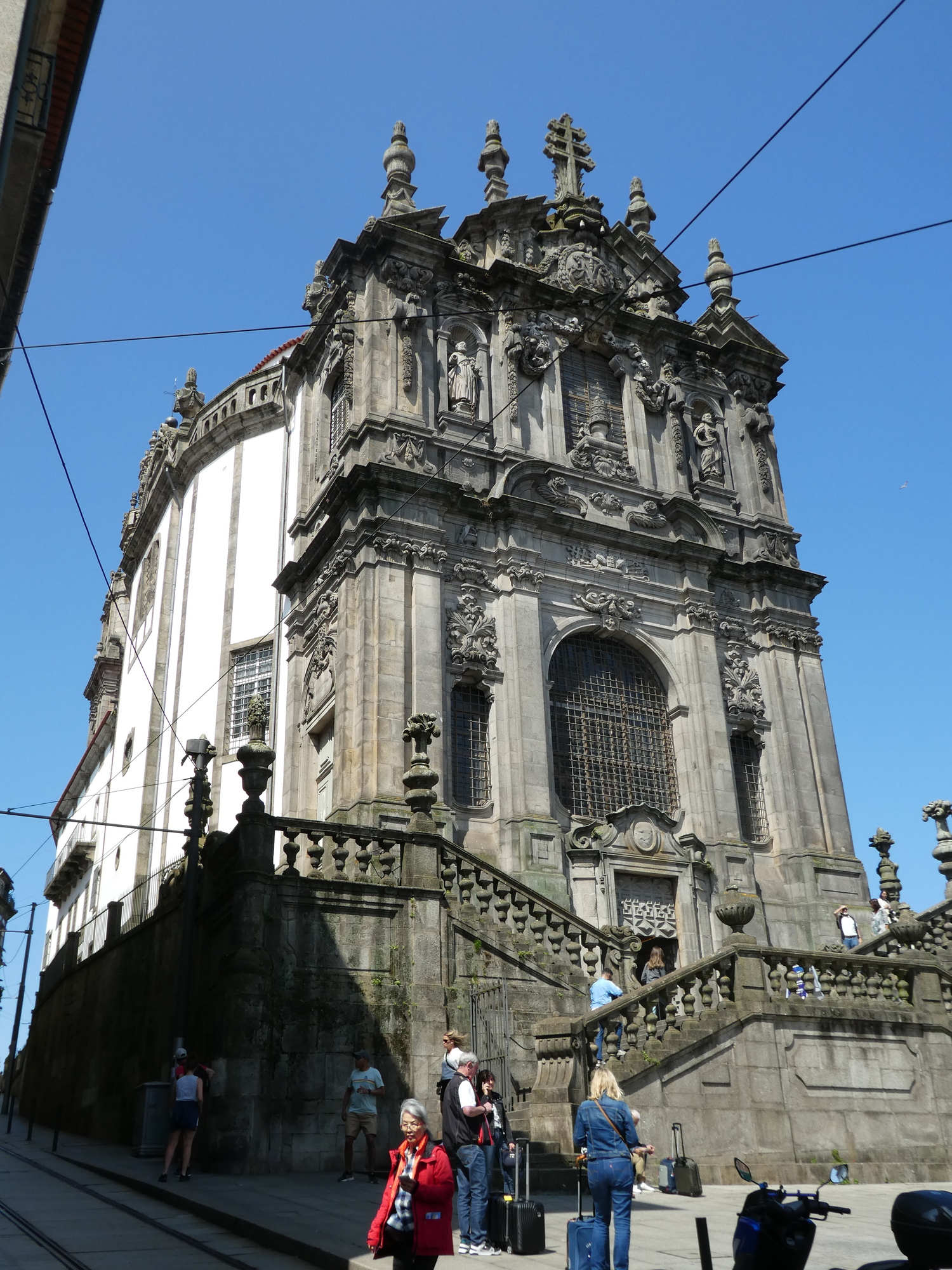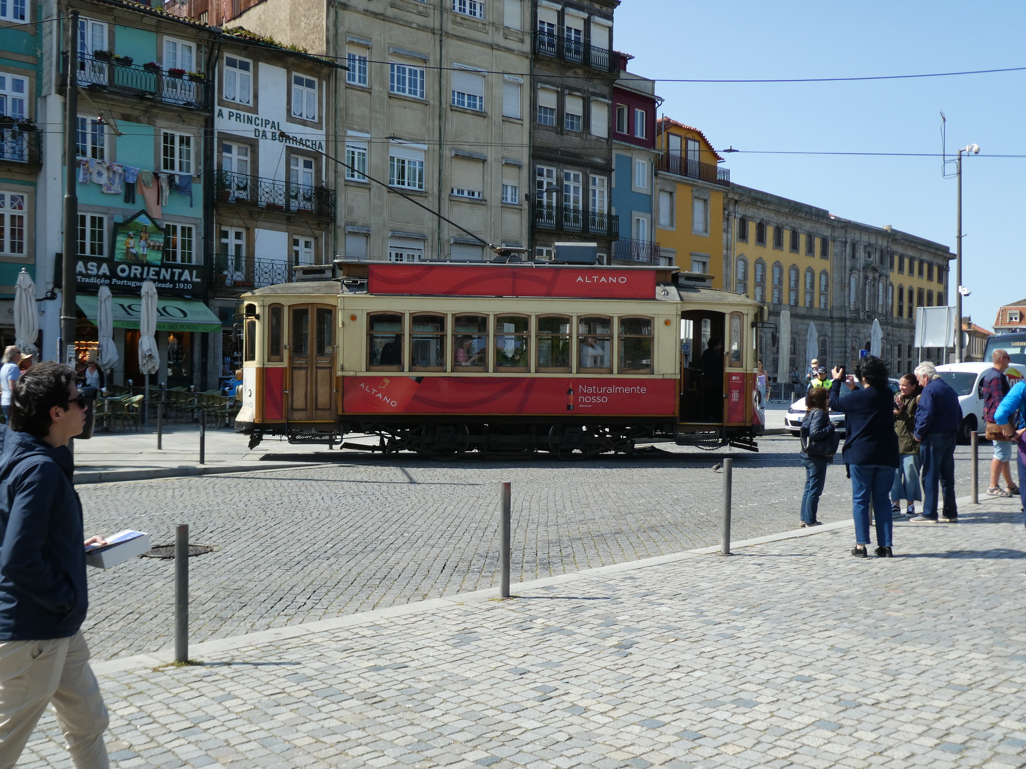 Outside the Carmelite churches, we see some of the typical Porto buildings, narrow, with the tall windows. The trolley is not just a display, but it travels off periodically to ...somewhere.