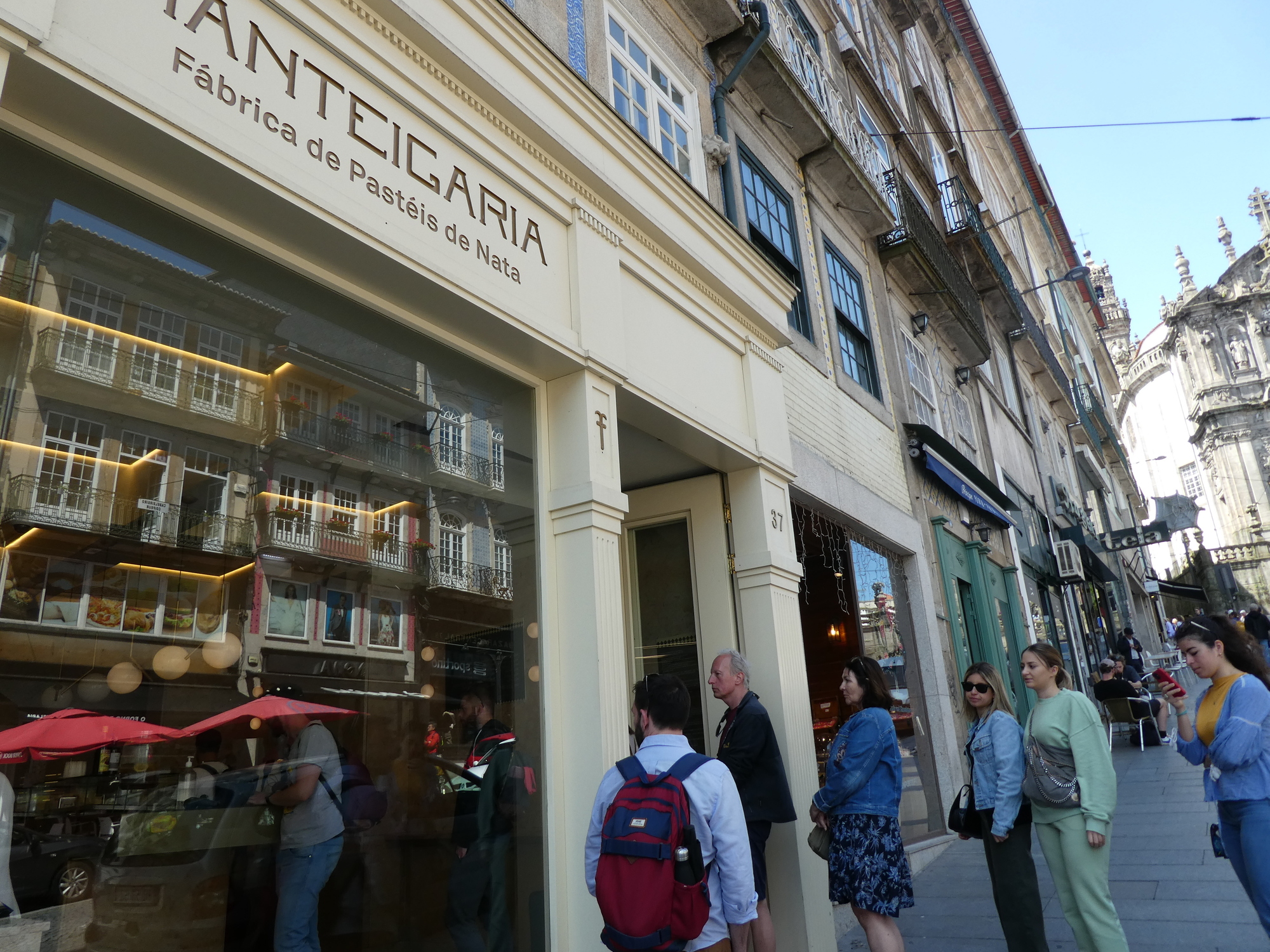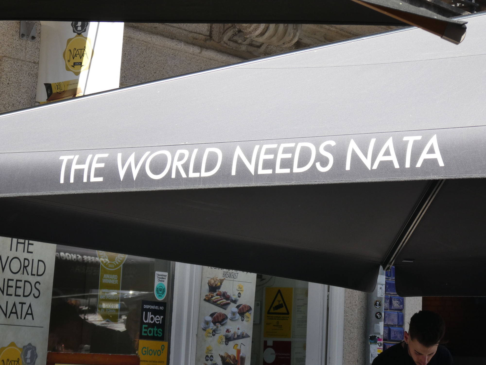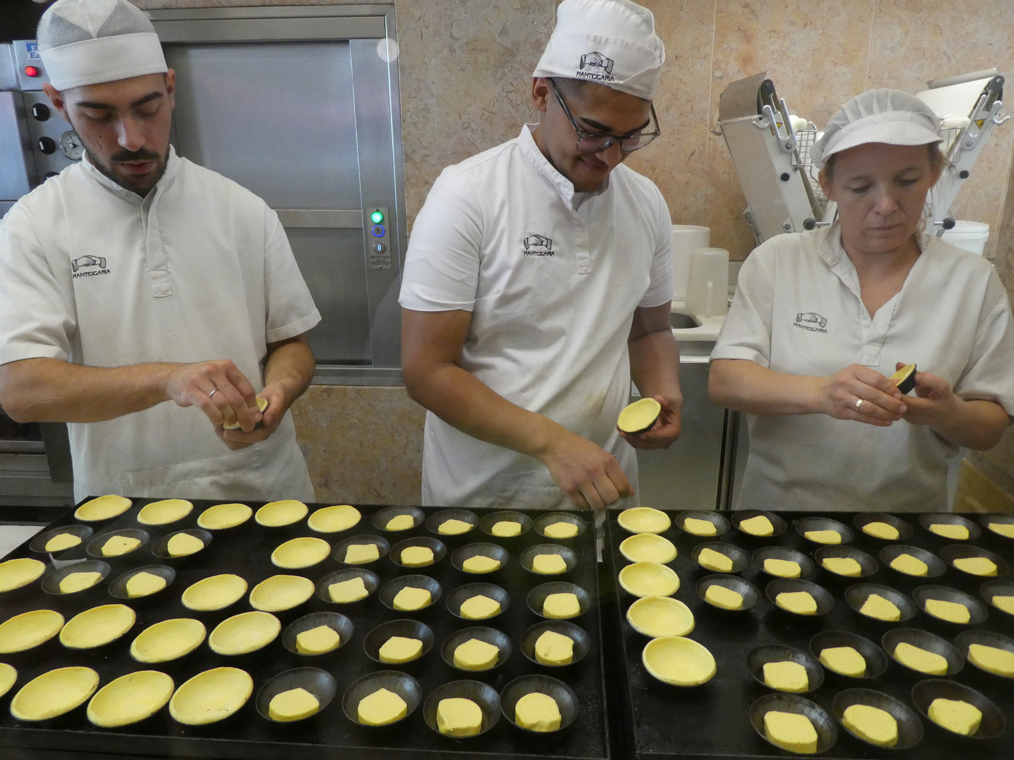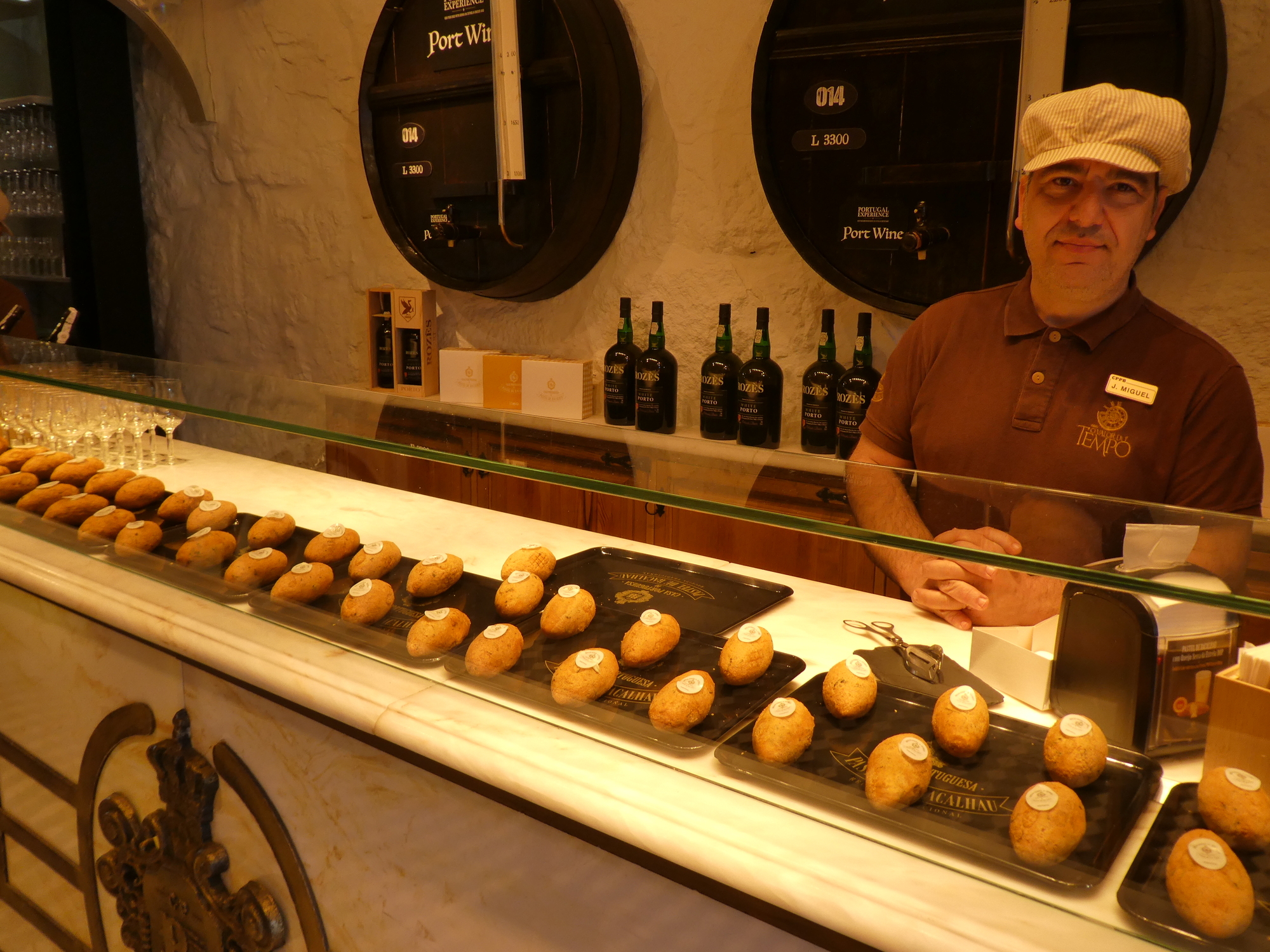 All through the trip we have been enjoying the pasteis de nata, and quality for them is generally good. But here is a shop (with other branches here and in Lisbon) that specializes in them makes it so you can see the production. As we watched, it became quickly clear to former baker Dodie that the fellow on the left was much better and faster than his two colleagues. You can even see his greater production in front of the three workers. We commented on this to the cashier, and she confirmed that the two on the right were relative beginners and the one on the left was the superstar. He heard our conversation and smiled.