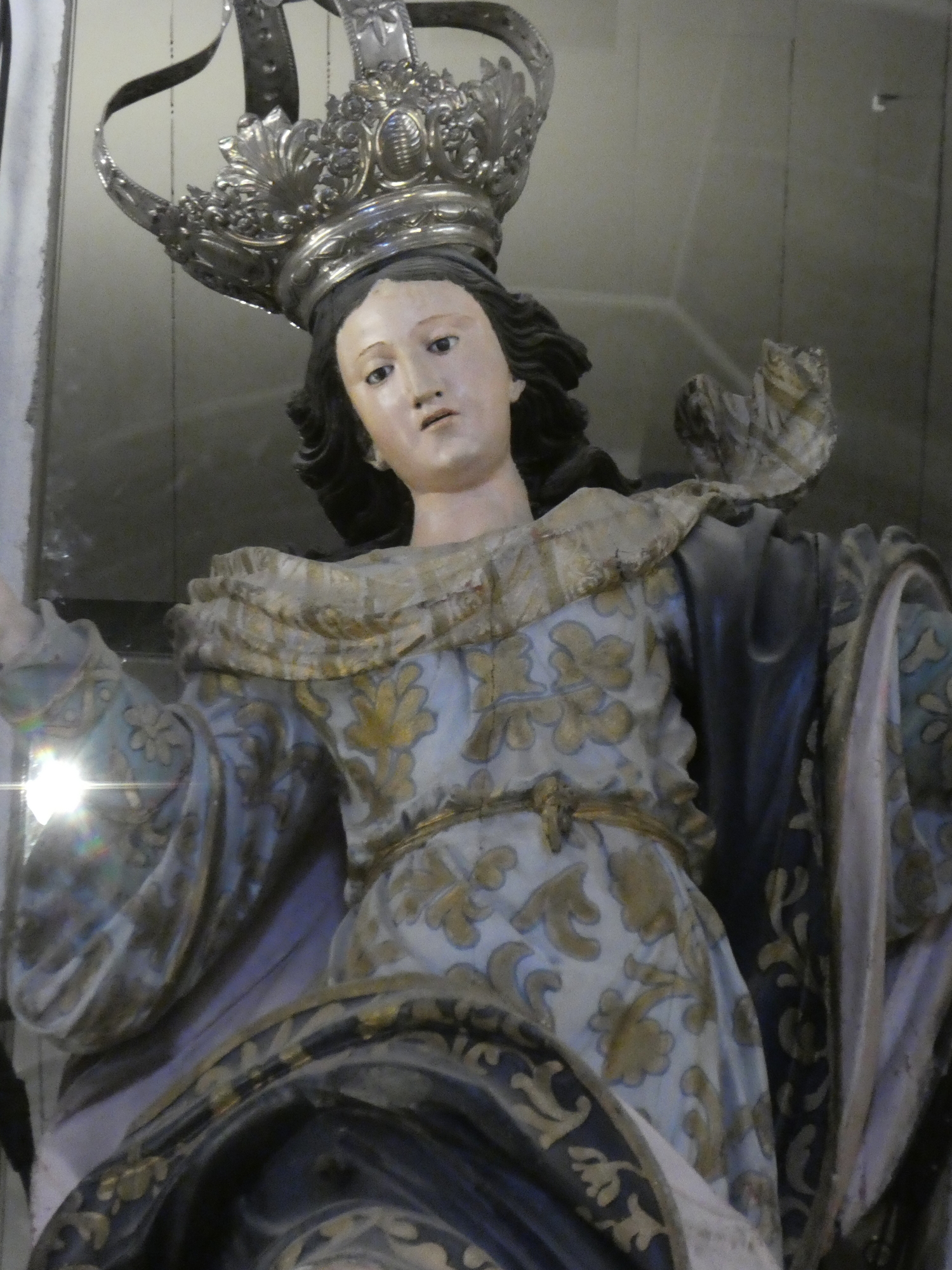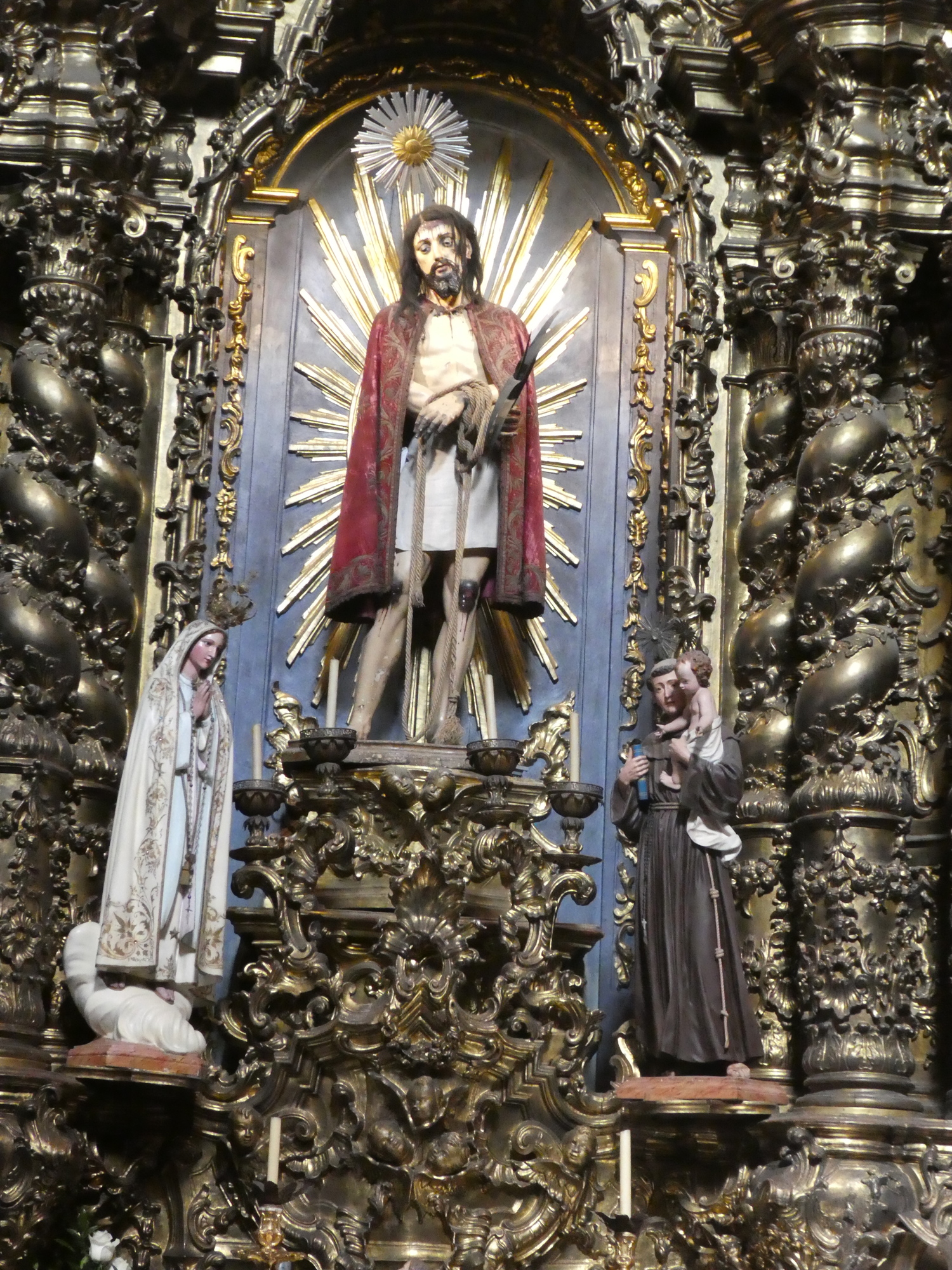 Side chapels have imagery that depicts parts of the Jesus story. This one seems familiar, from some other church visited recently. That is in fact a mark of consistency. For example, the guy holding the child is characterized as the Franciscan St Anthony, associated with matchmaking and not babysitting, but holding the child as a symbol of humbleness, humility, and docility. And the lady is not generic Mary but rather Mary as she appeared in Fatima in 1917.
