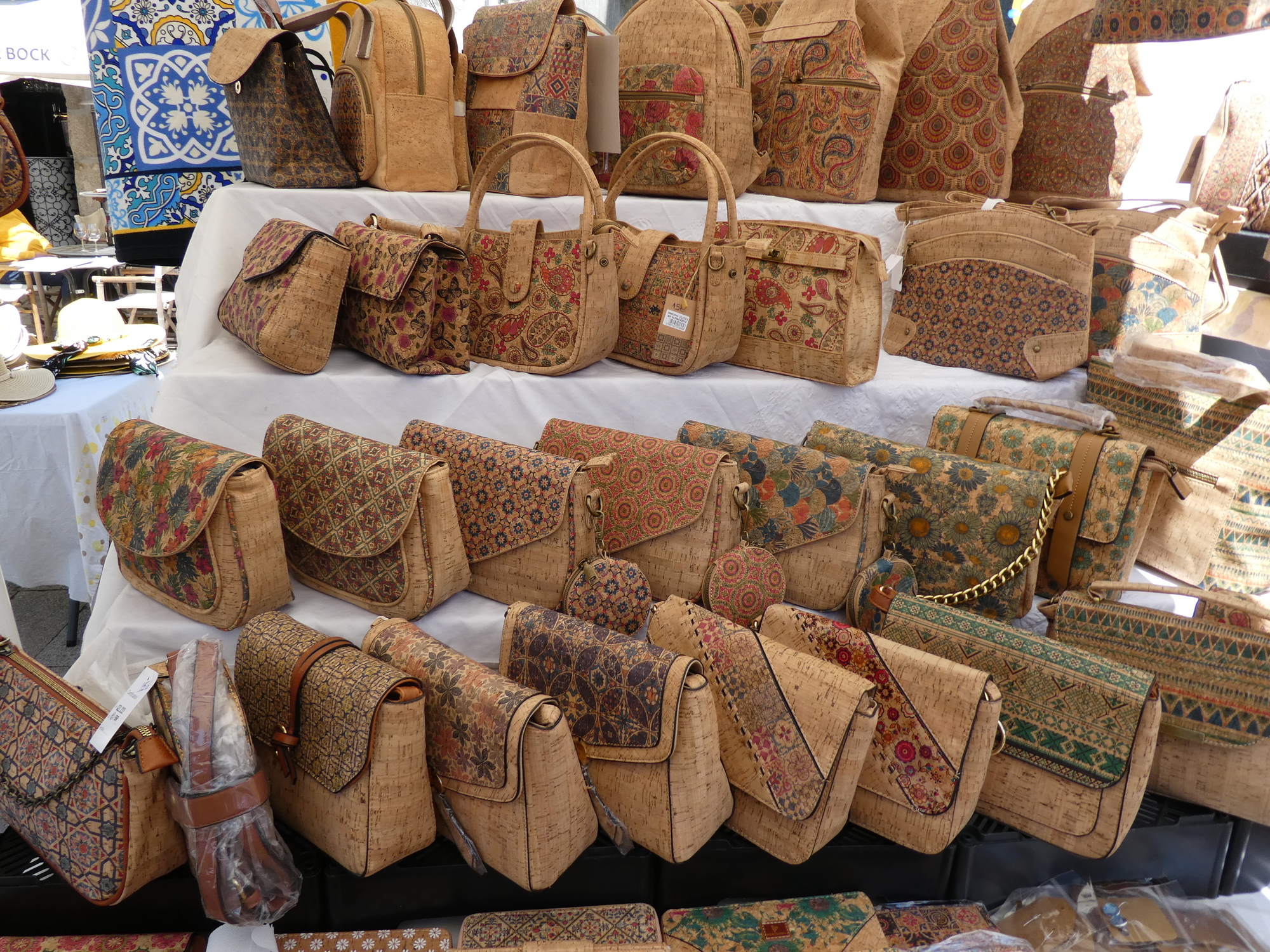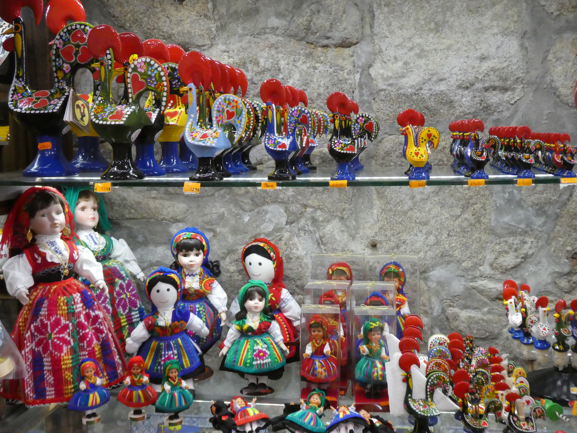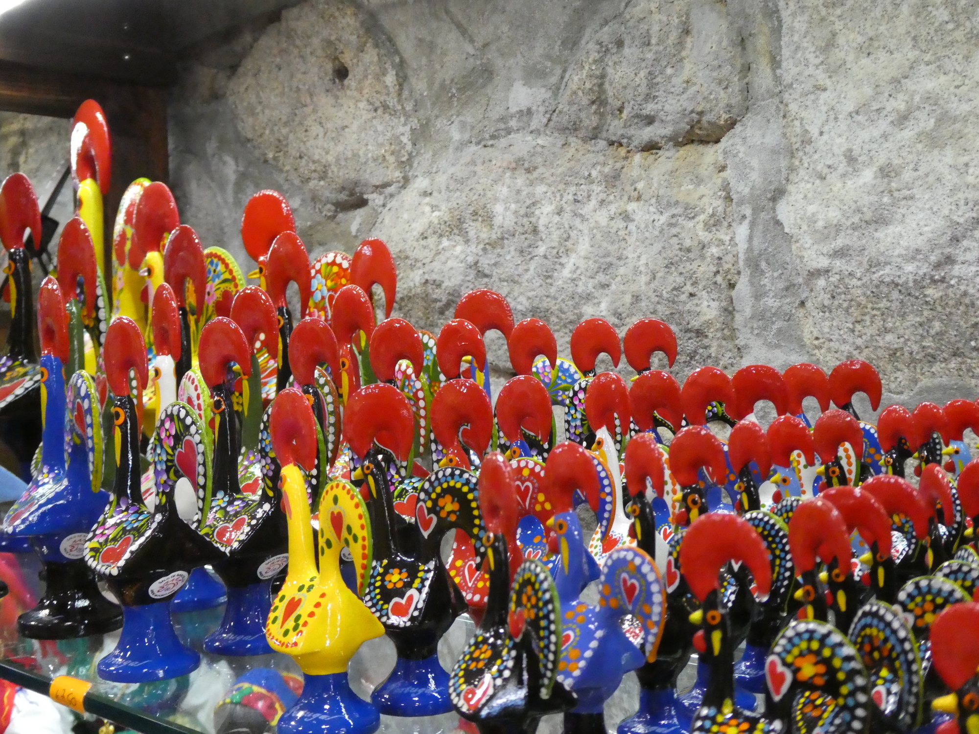 Tourist goods are also widely available here. There are the cork fabric purses, and of course the Barcelos chickens. good point is that it all seems to be made in Portugal. The same can not be said of souvenirs in, for example, the Canadian Rockies.