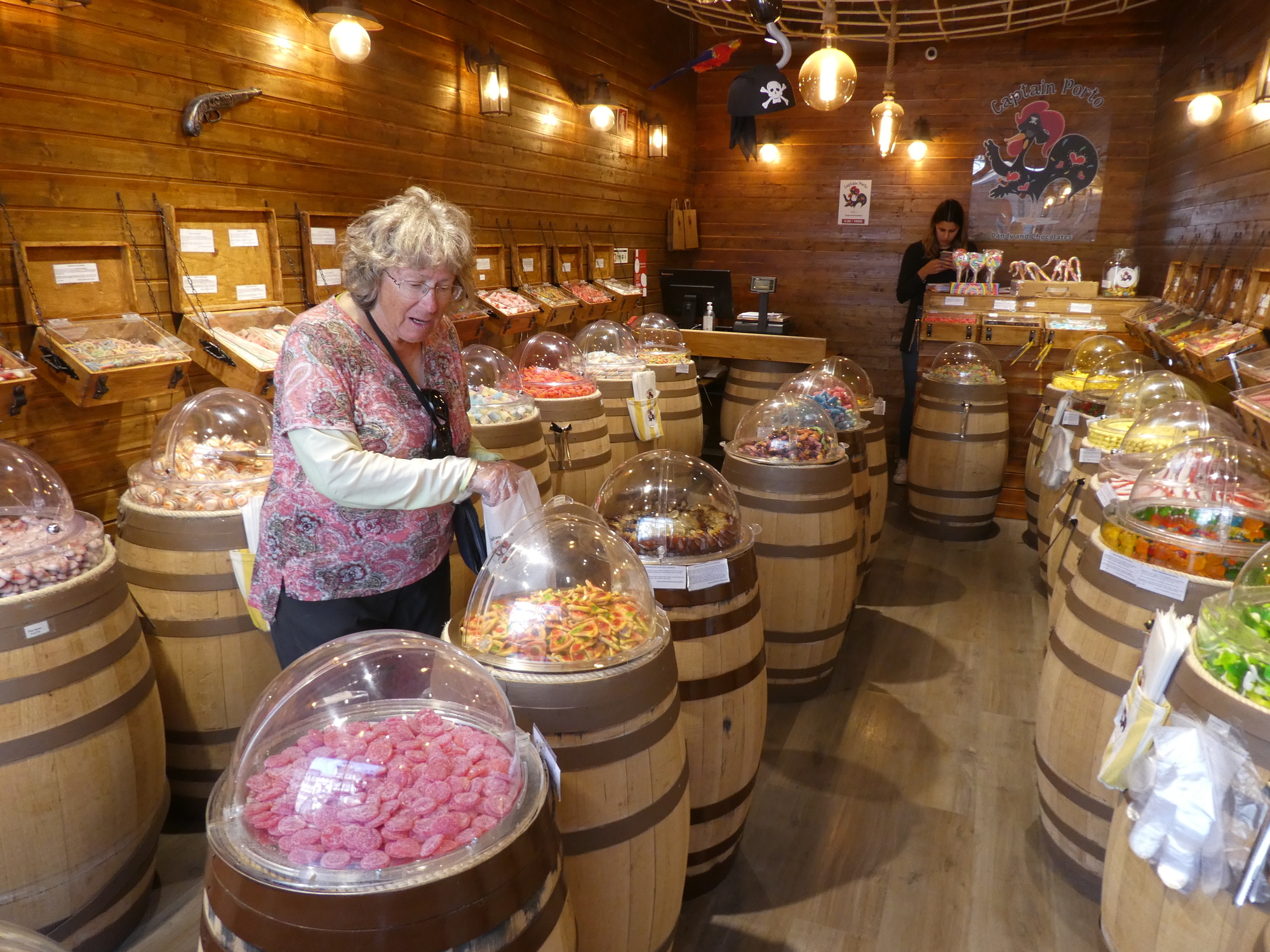 Candy shops are often found in tourist districts. In France these will feature preserved fruits. But this one just has unique ones of the sort of sours variety. Dodie is snapping them up for son Joshua, who really likes these.