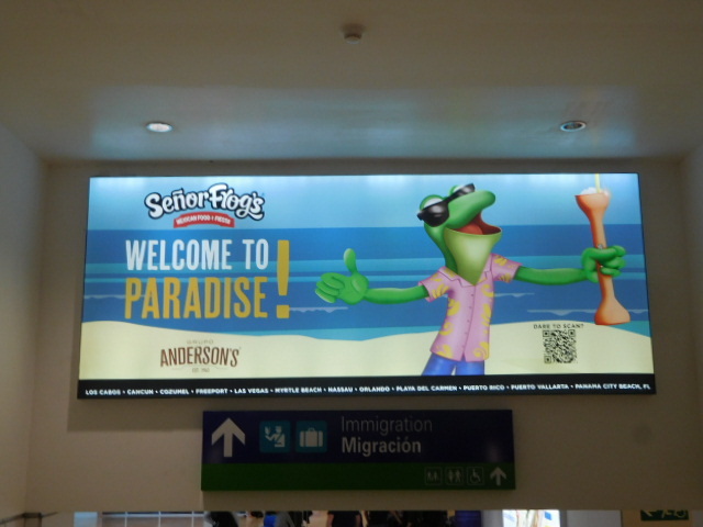 The direct flight on the little plane put us in Cancun in 5 1/2 hours - an amazing short hop. There we some immediate cues that we had landed in paradise. First off Senor Frogs told us so.